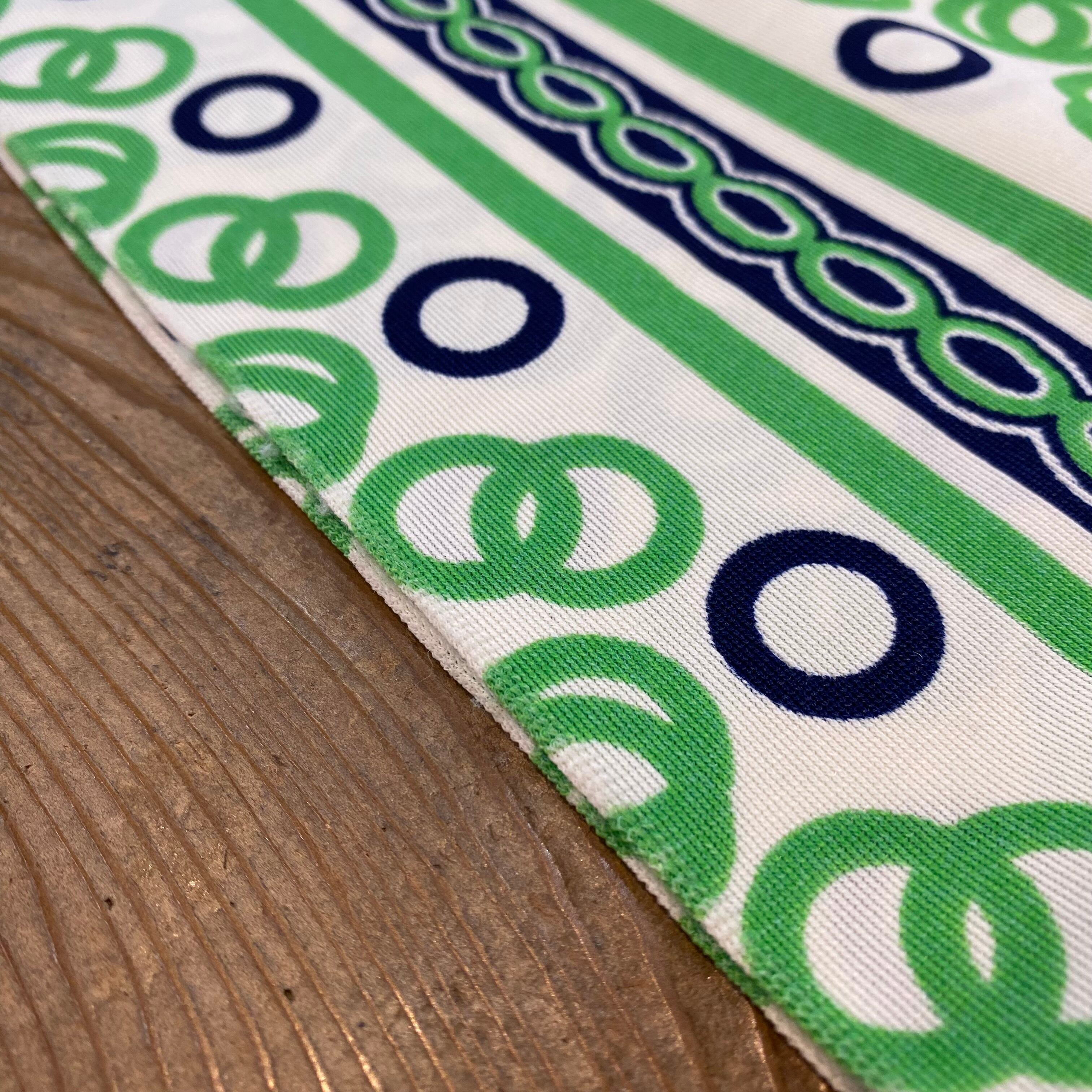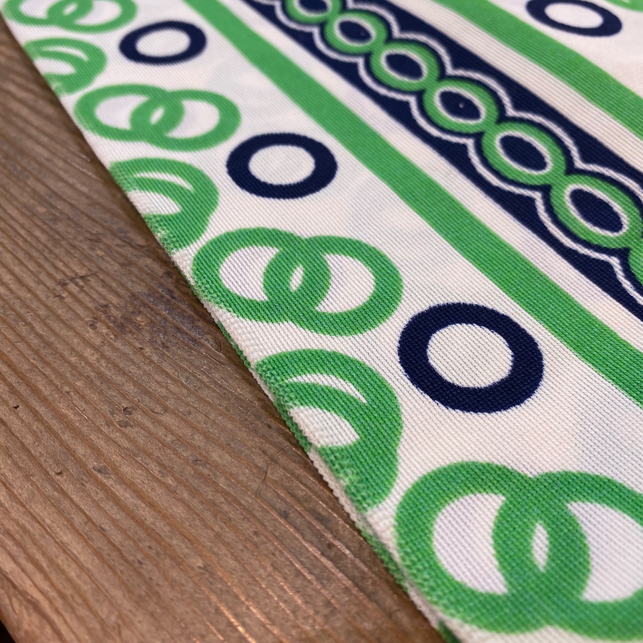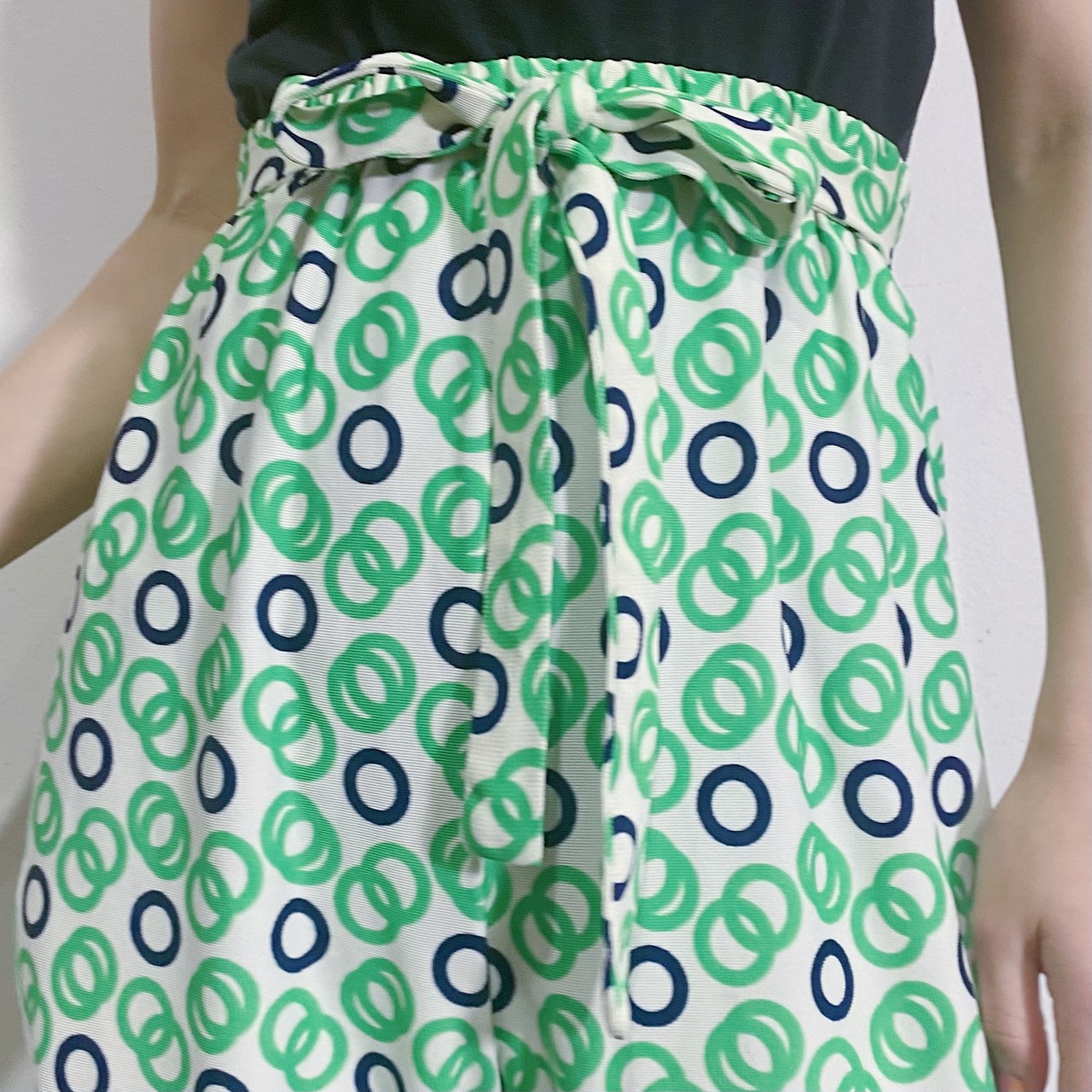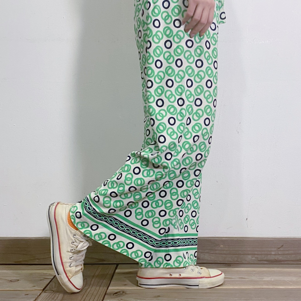 グリーン×ネイビーのドットのような総柄が可愛い、70年代のパンツです。