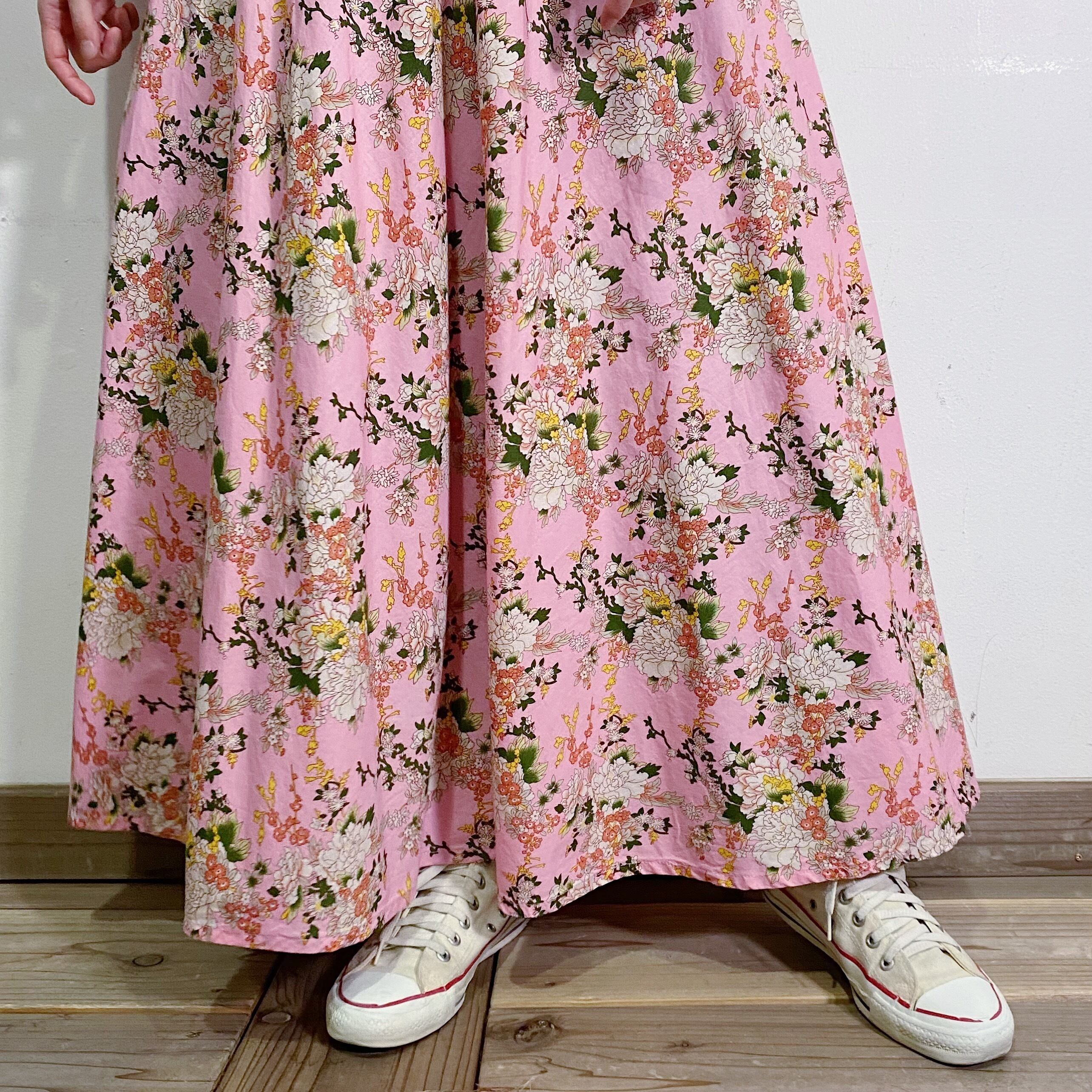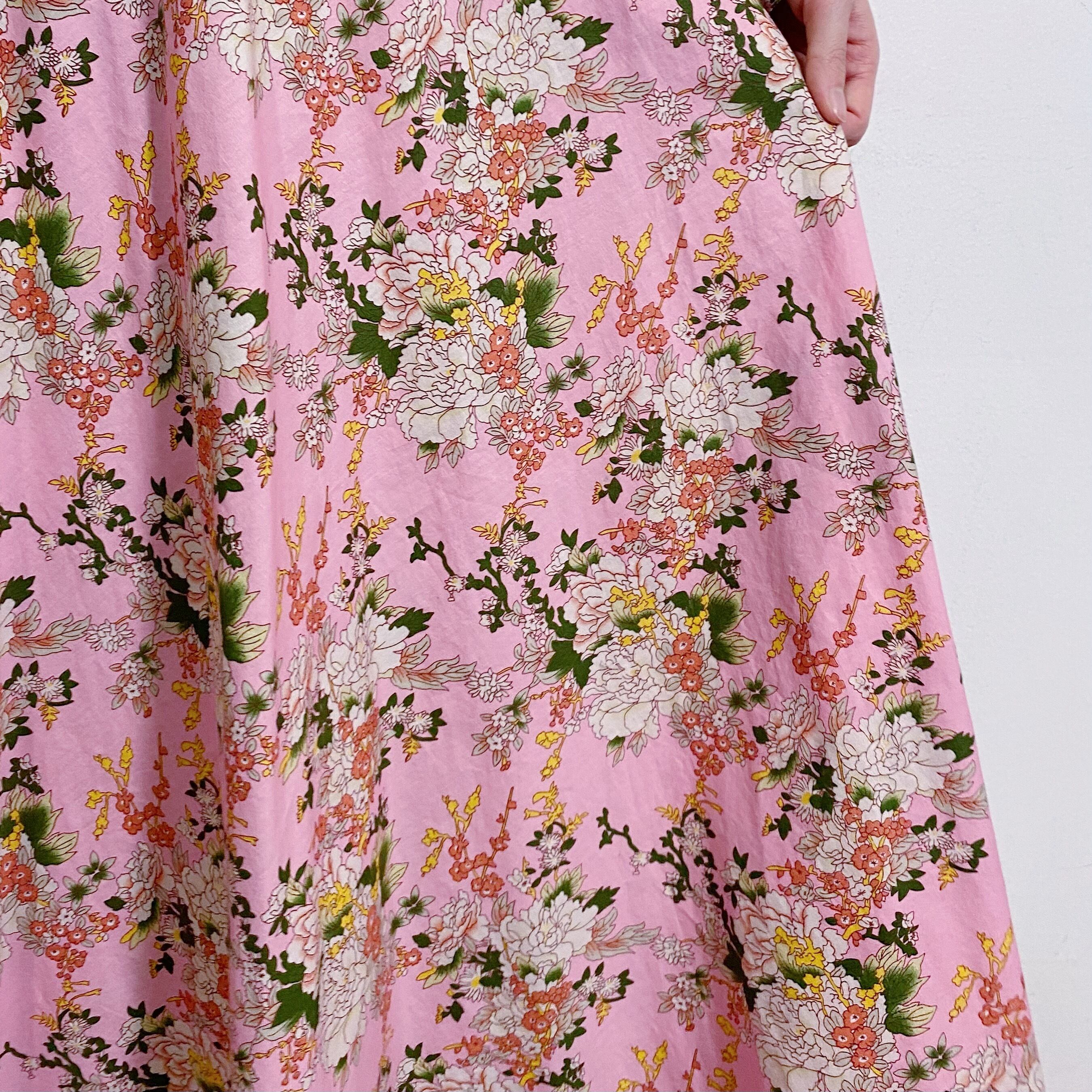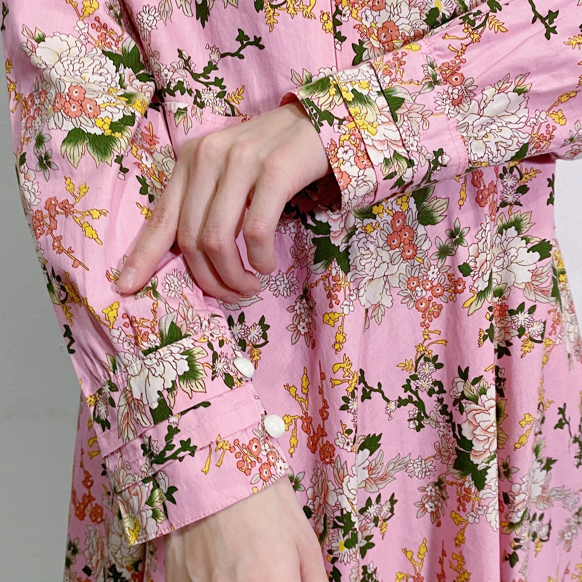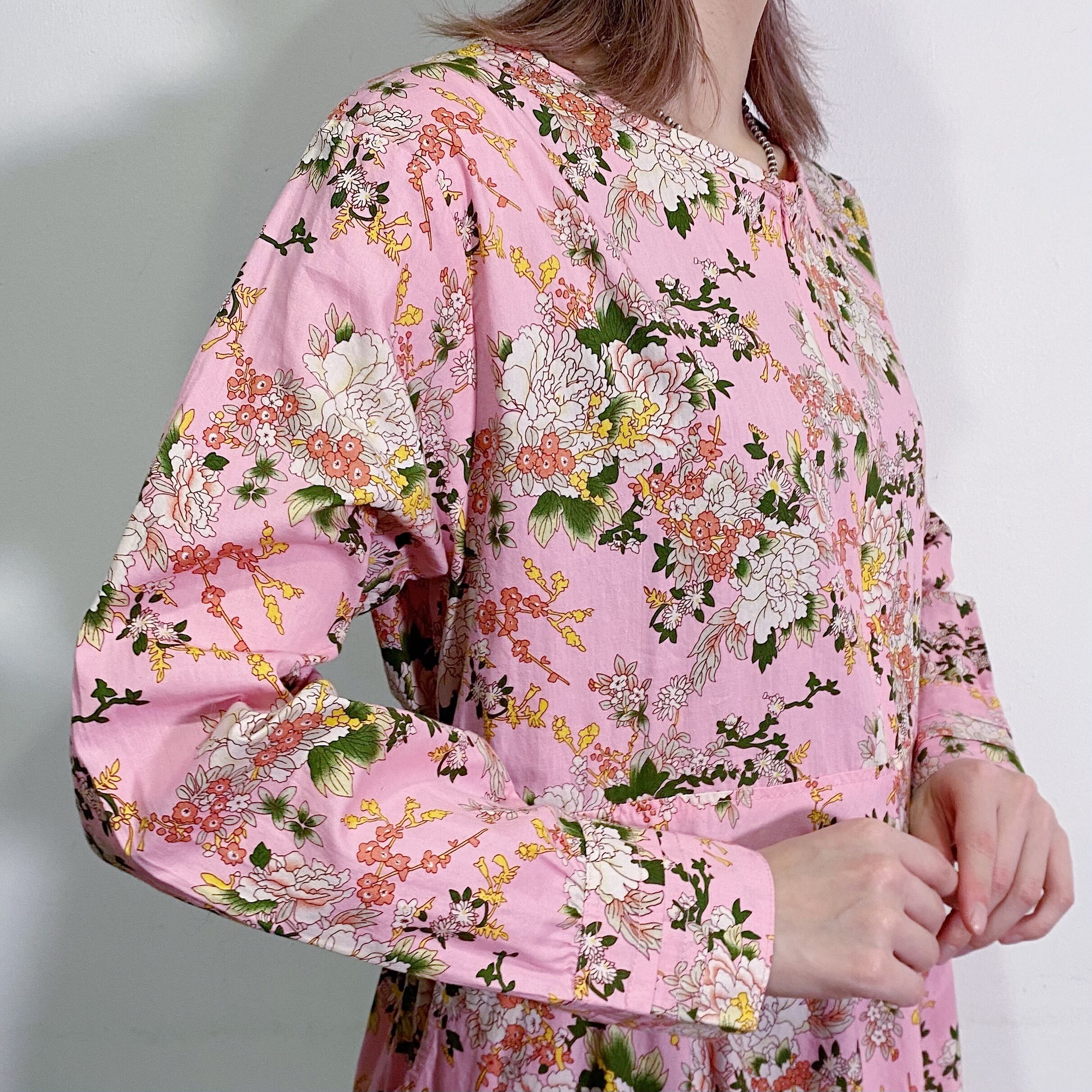 ピンクベースの花柄が可愛い、70年代のワンピースです。