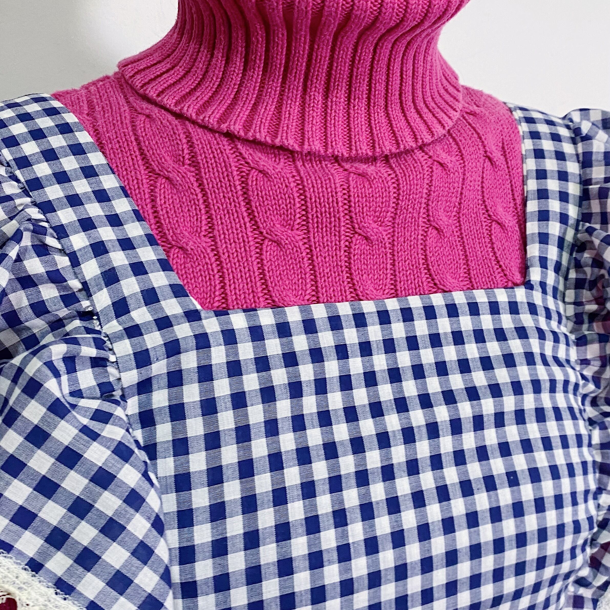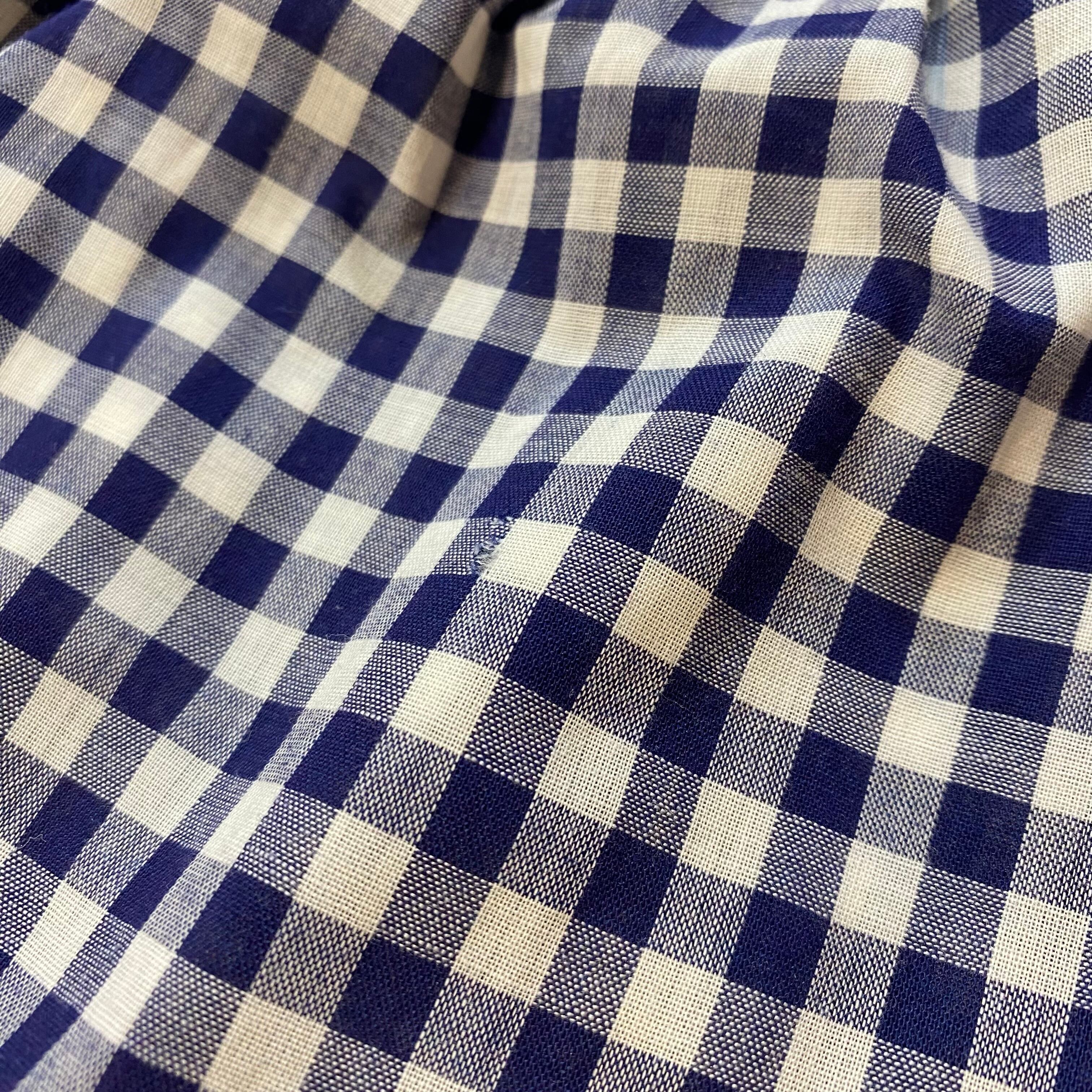ネイビーのギンガムチェックが可愛い、70年代のワンピースです。
