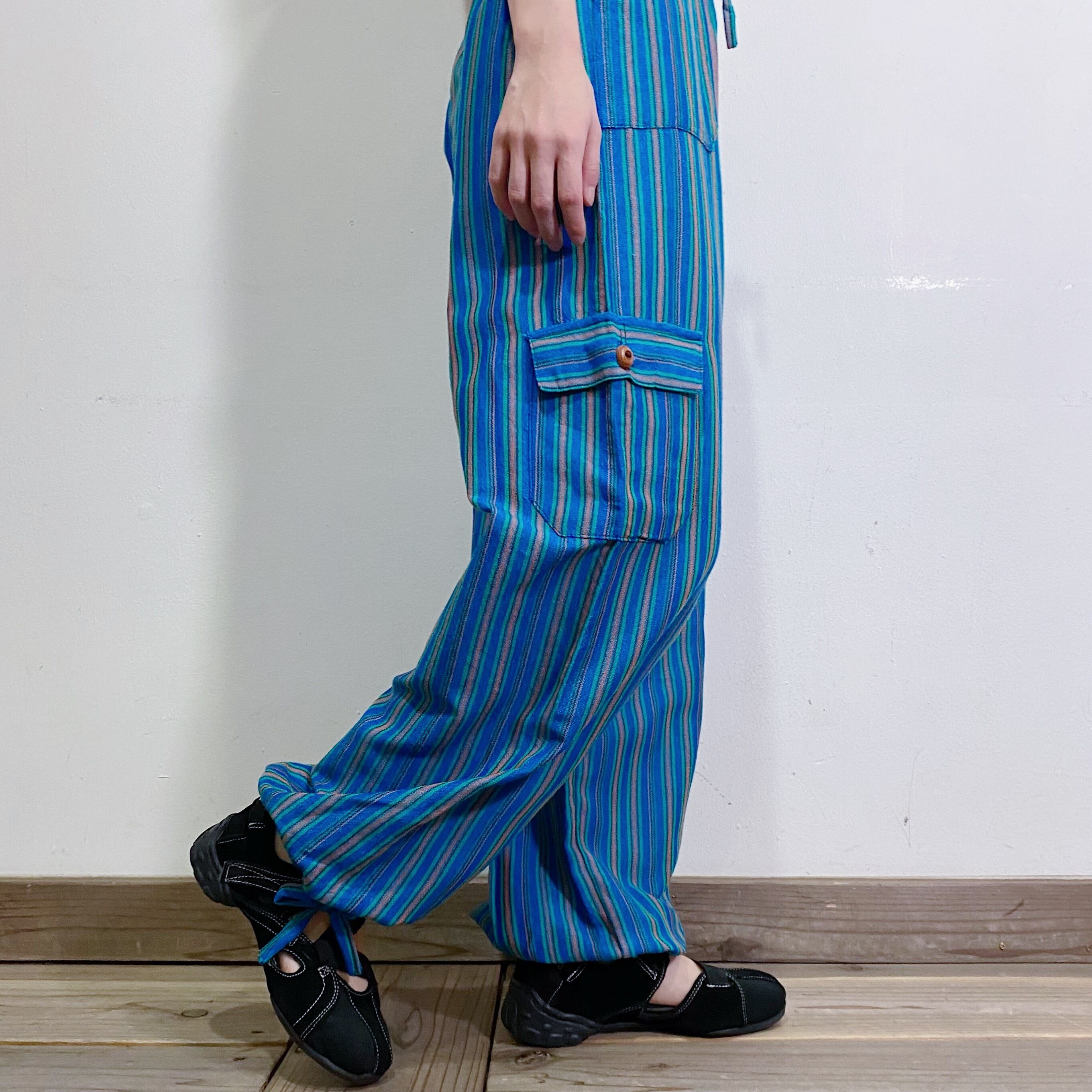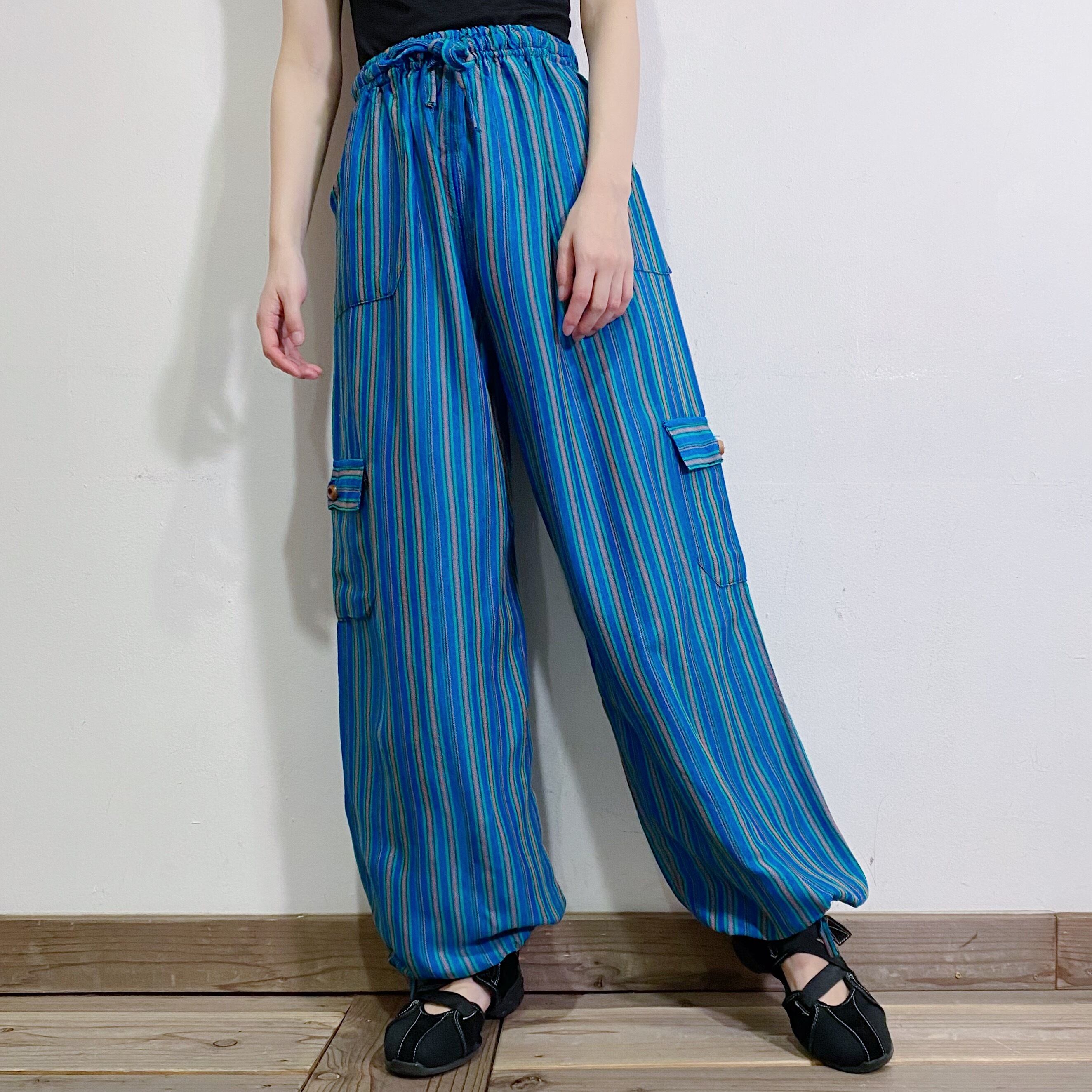 グリーンとピンクのストライプが可愛いイージーパンツです。