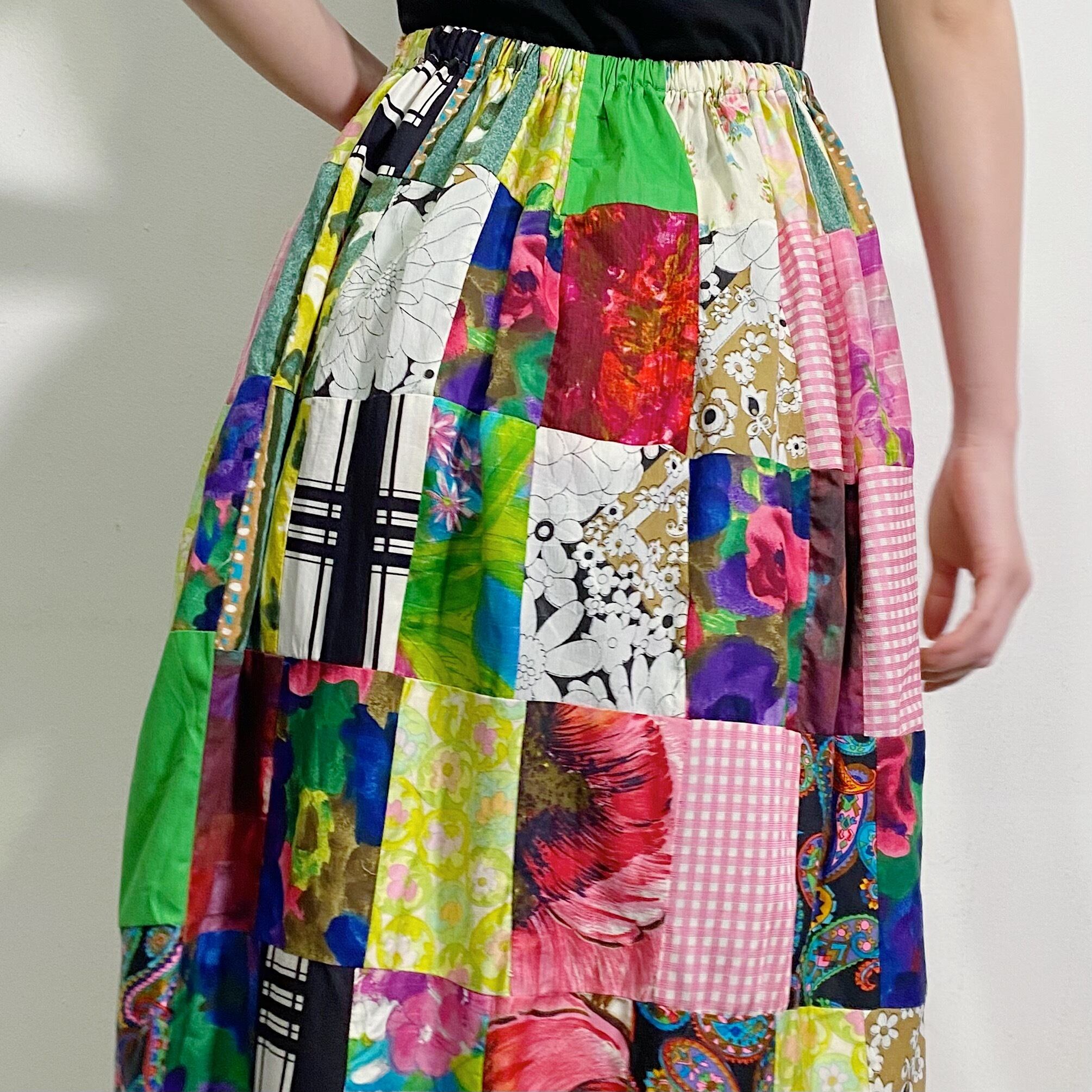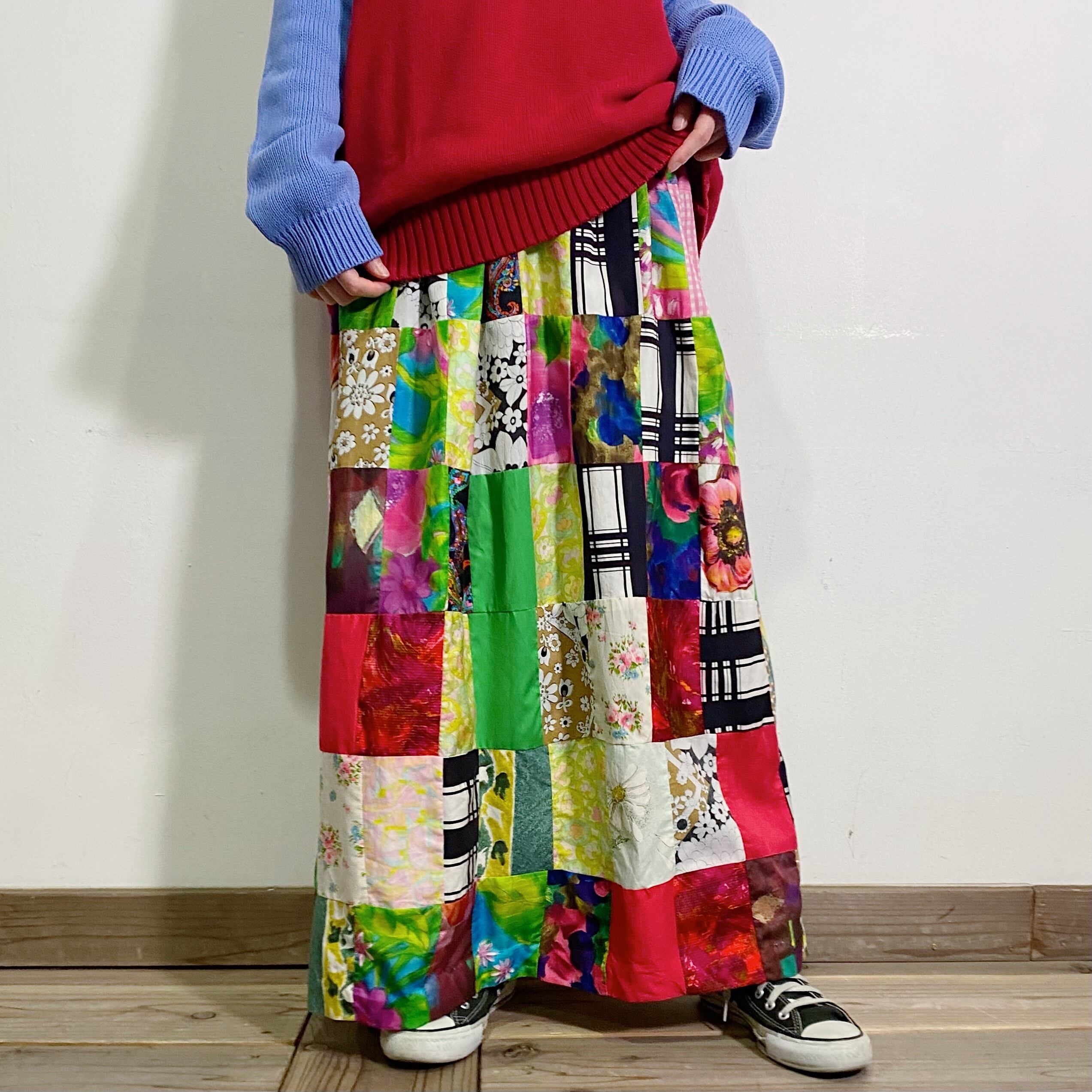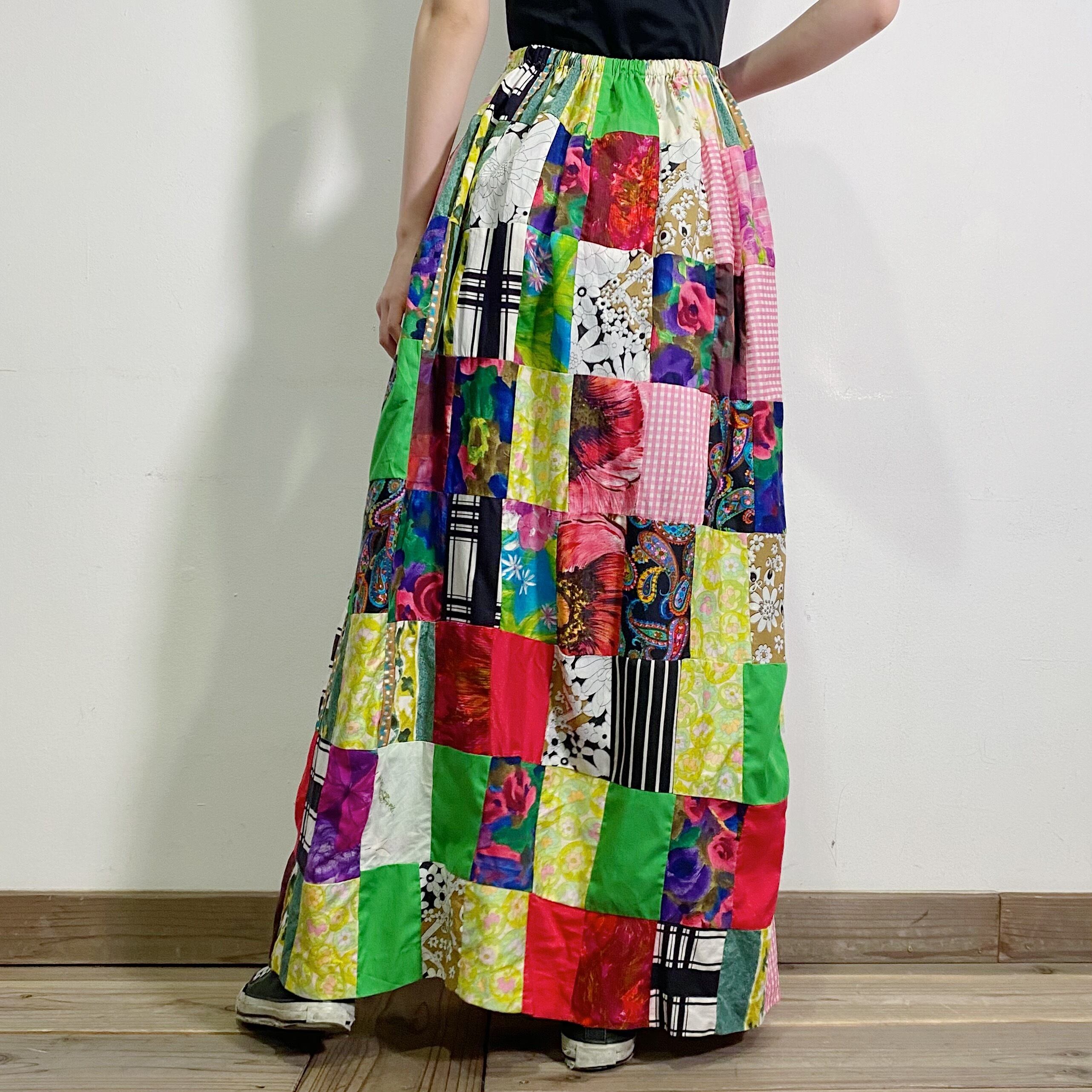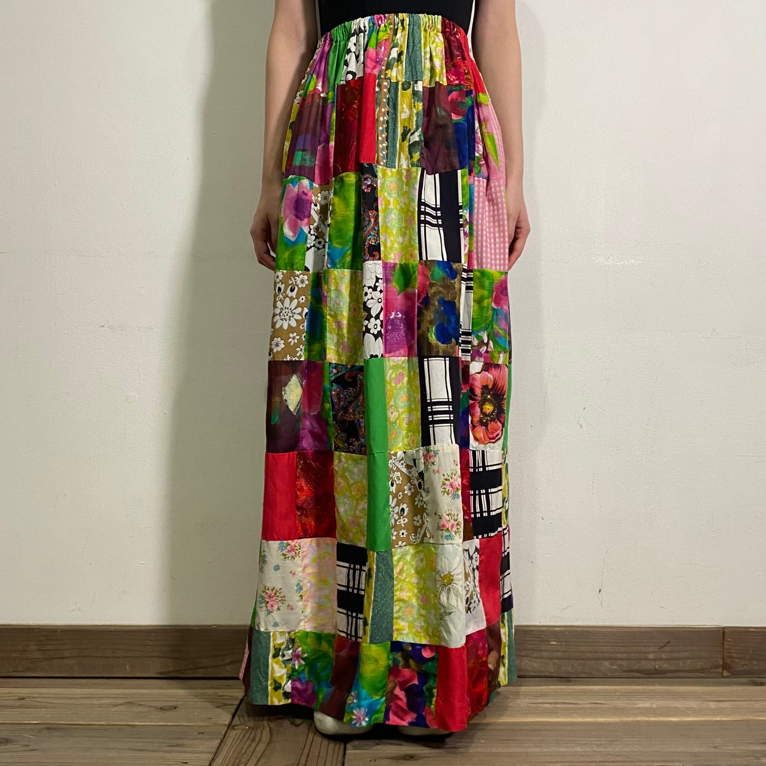 60-70s patchwork long skirt