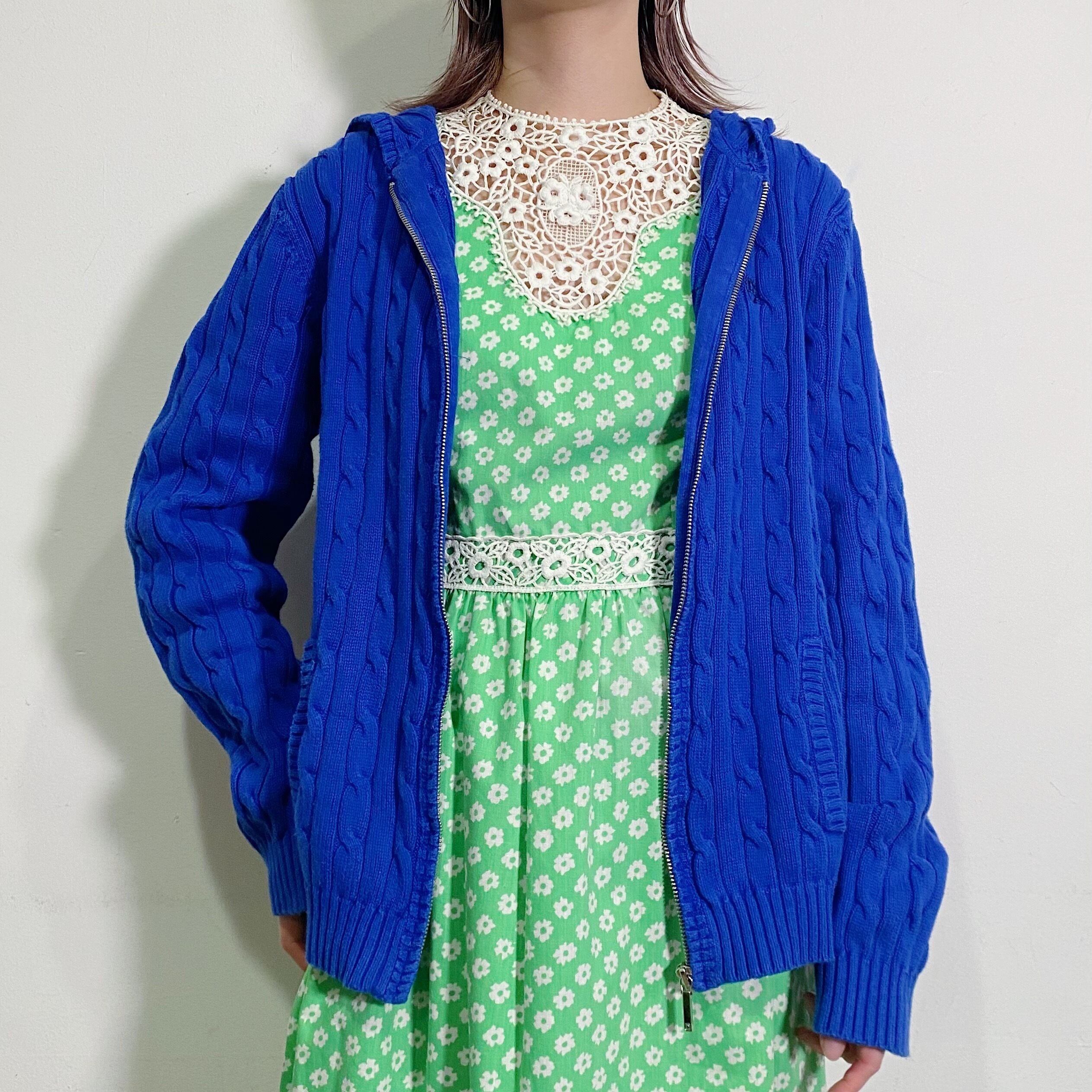 綺麗なブルーカラーが可愛い、コットンニットフーディーです。