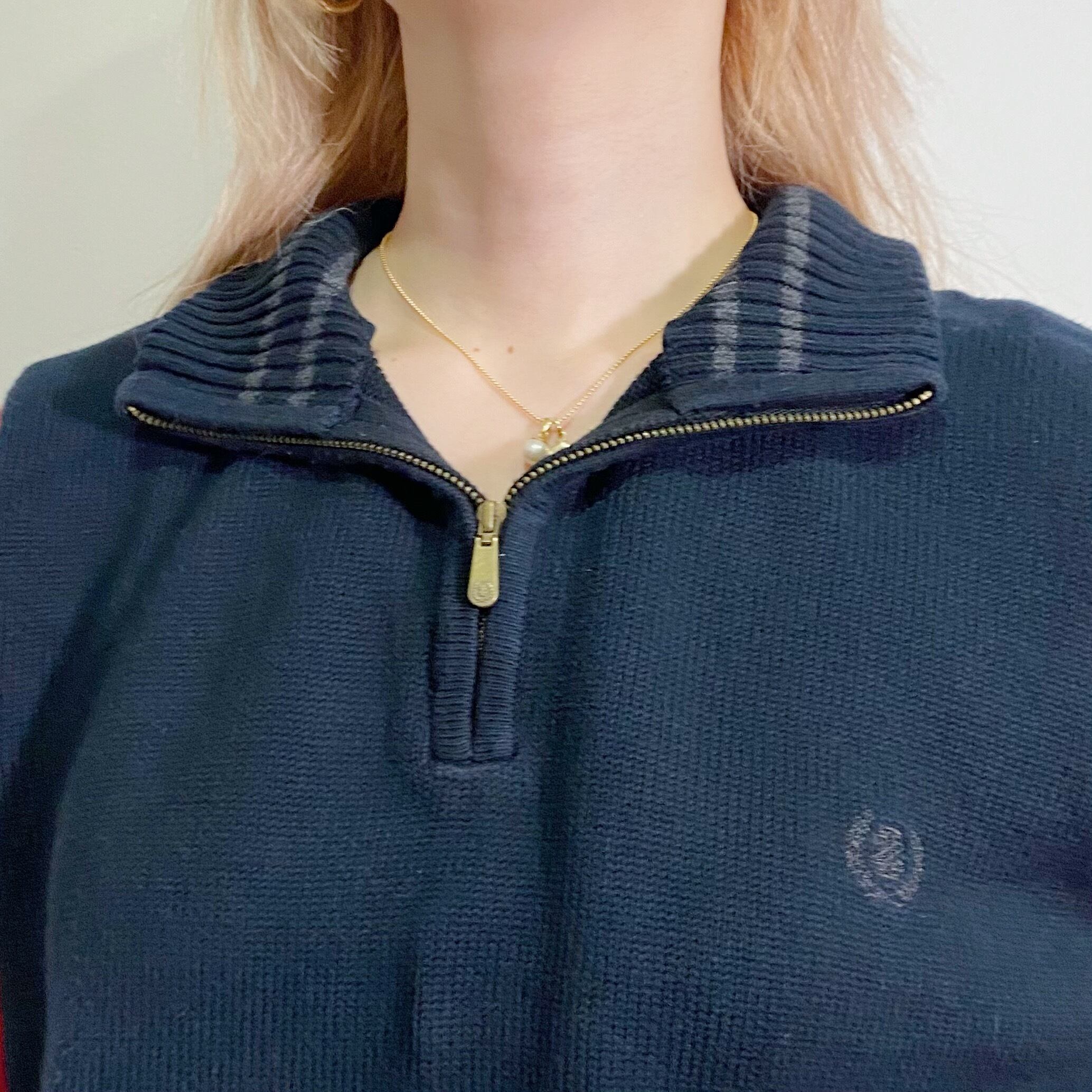 こちらはハーフジップになっており、首元の開き具合によって印象を変えて楽しめますよ。