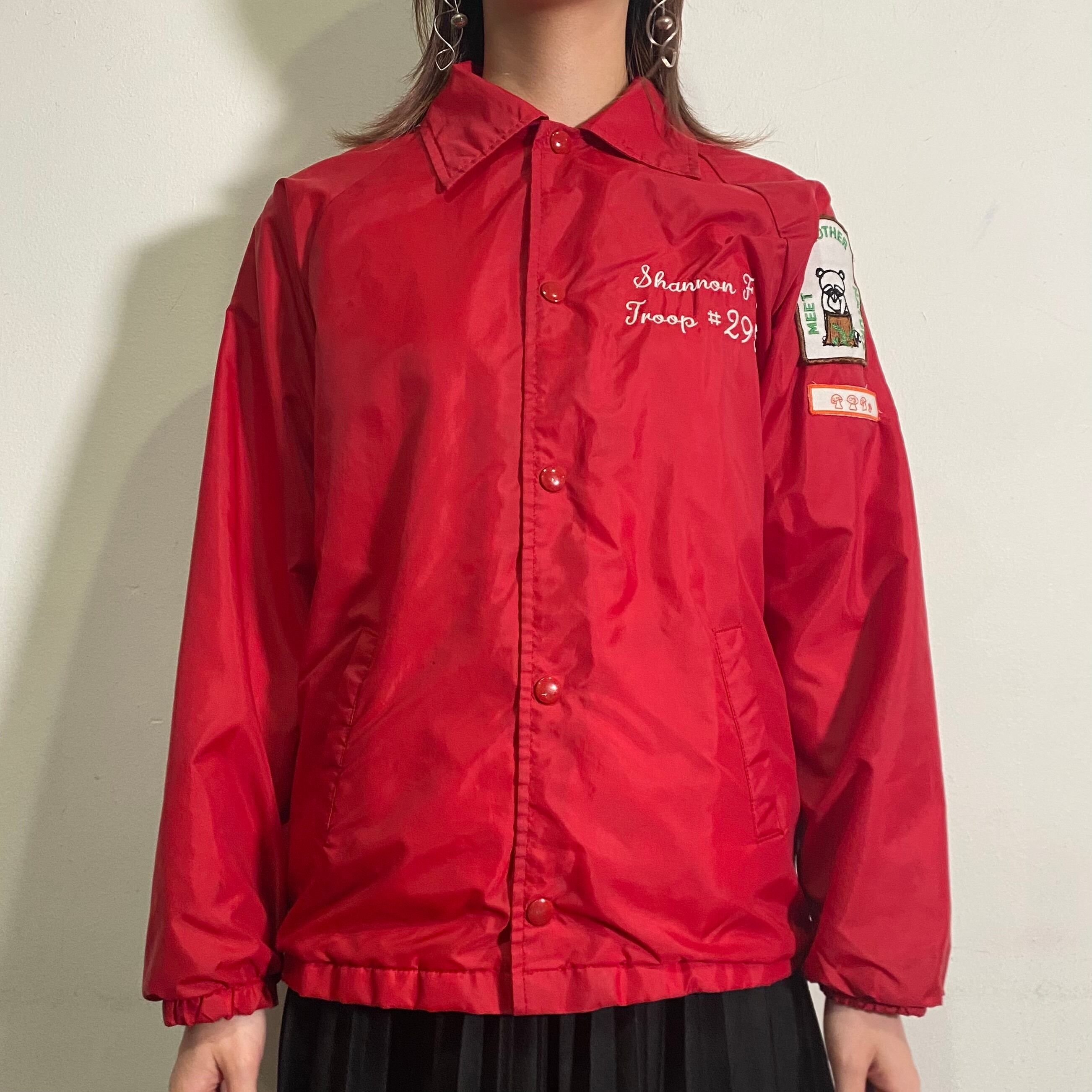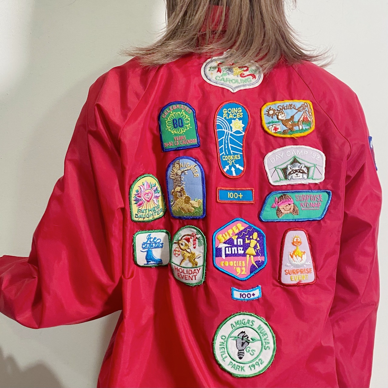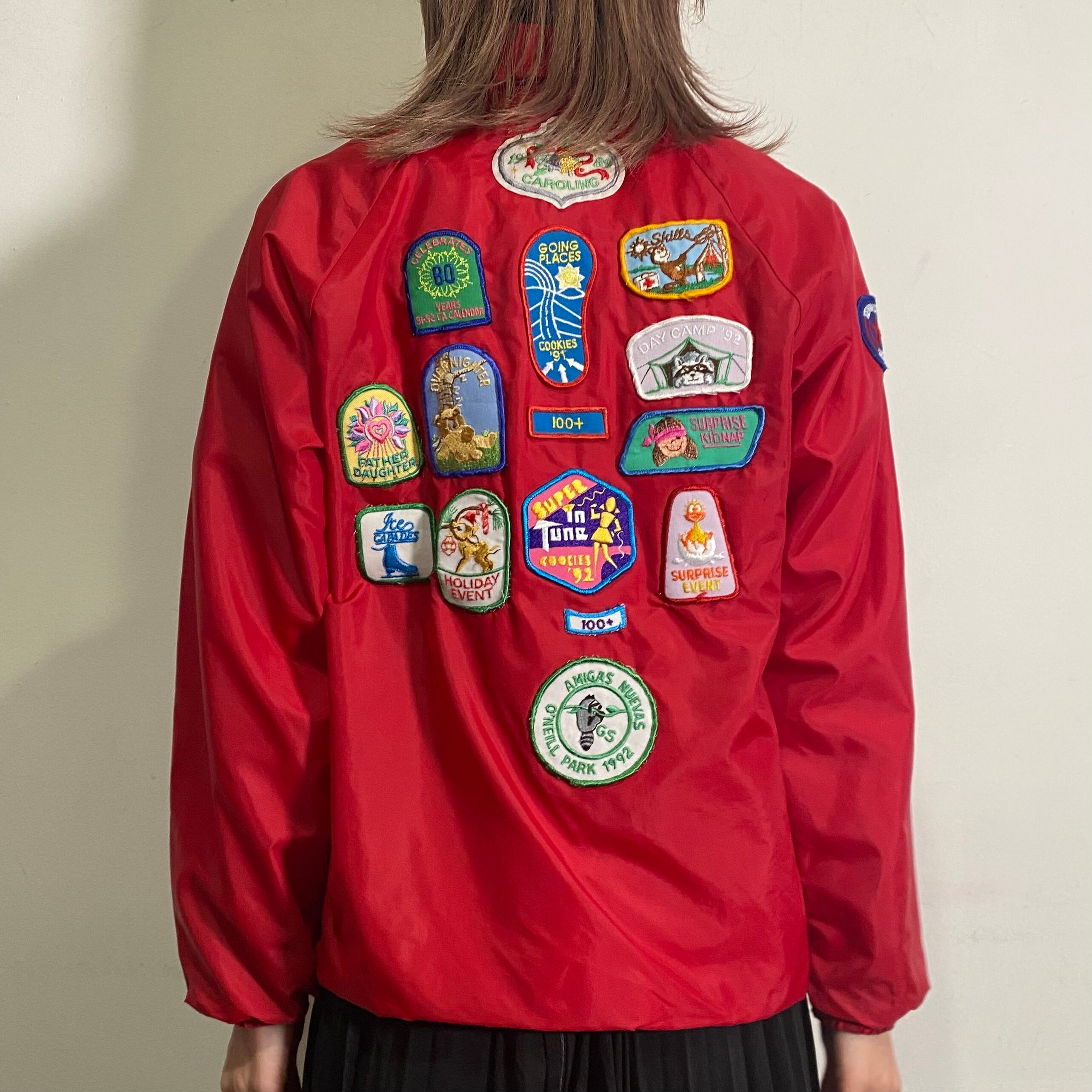 90年代の可愛くユニークなワッペンがバックやお袖に縫い付けられた、ナイロンジャケットです。