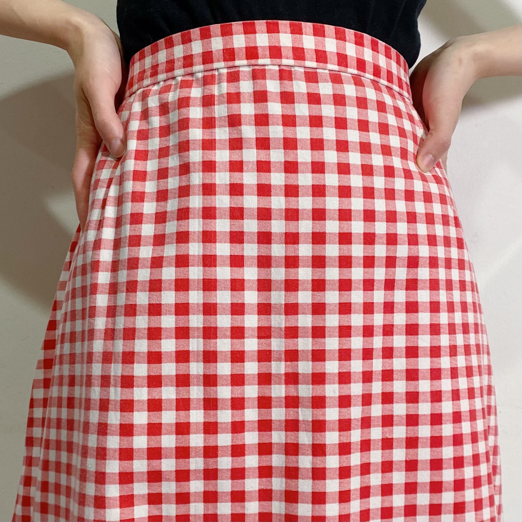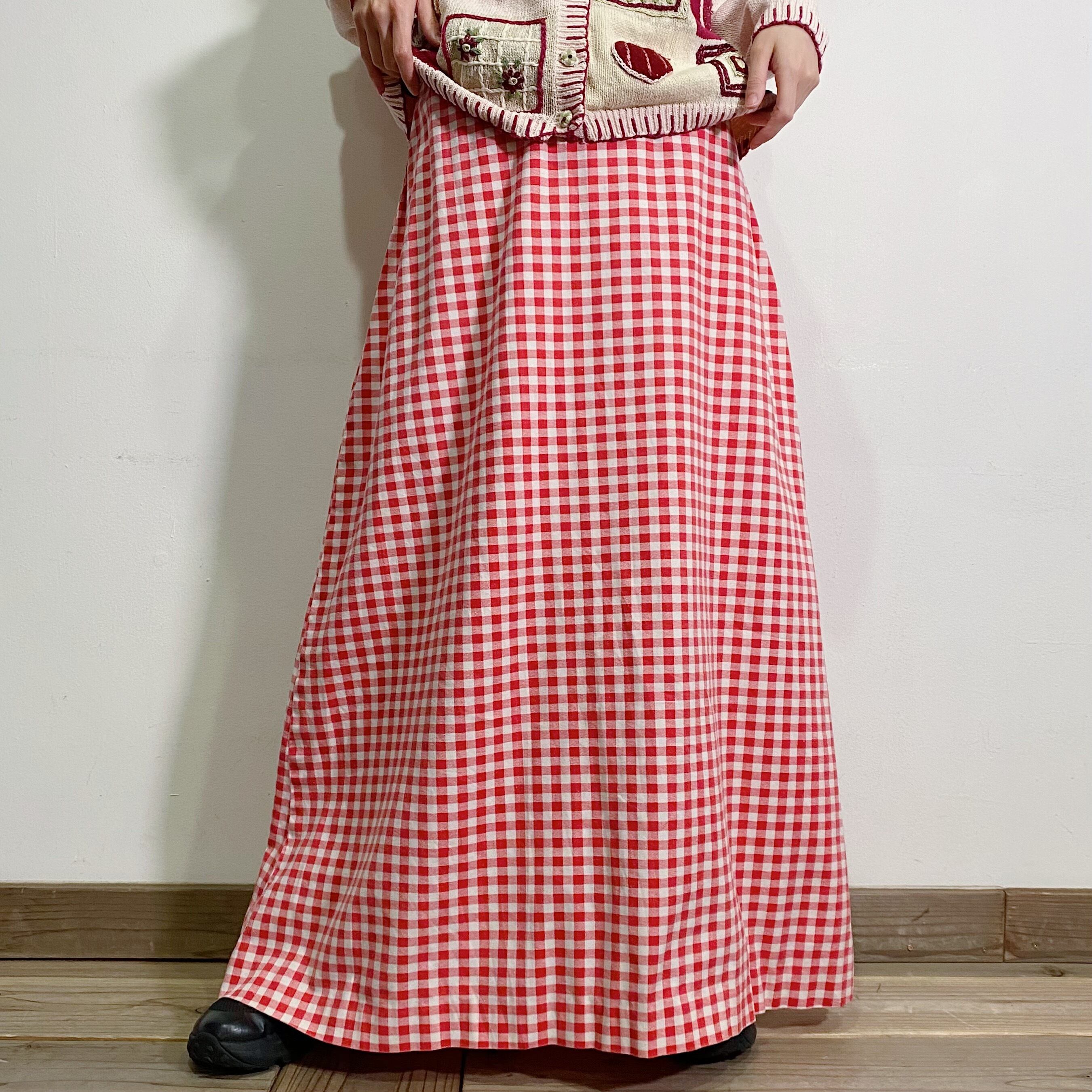 赤×白ギンガムチェックが可愛い70年代のロングスカートです。