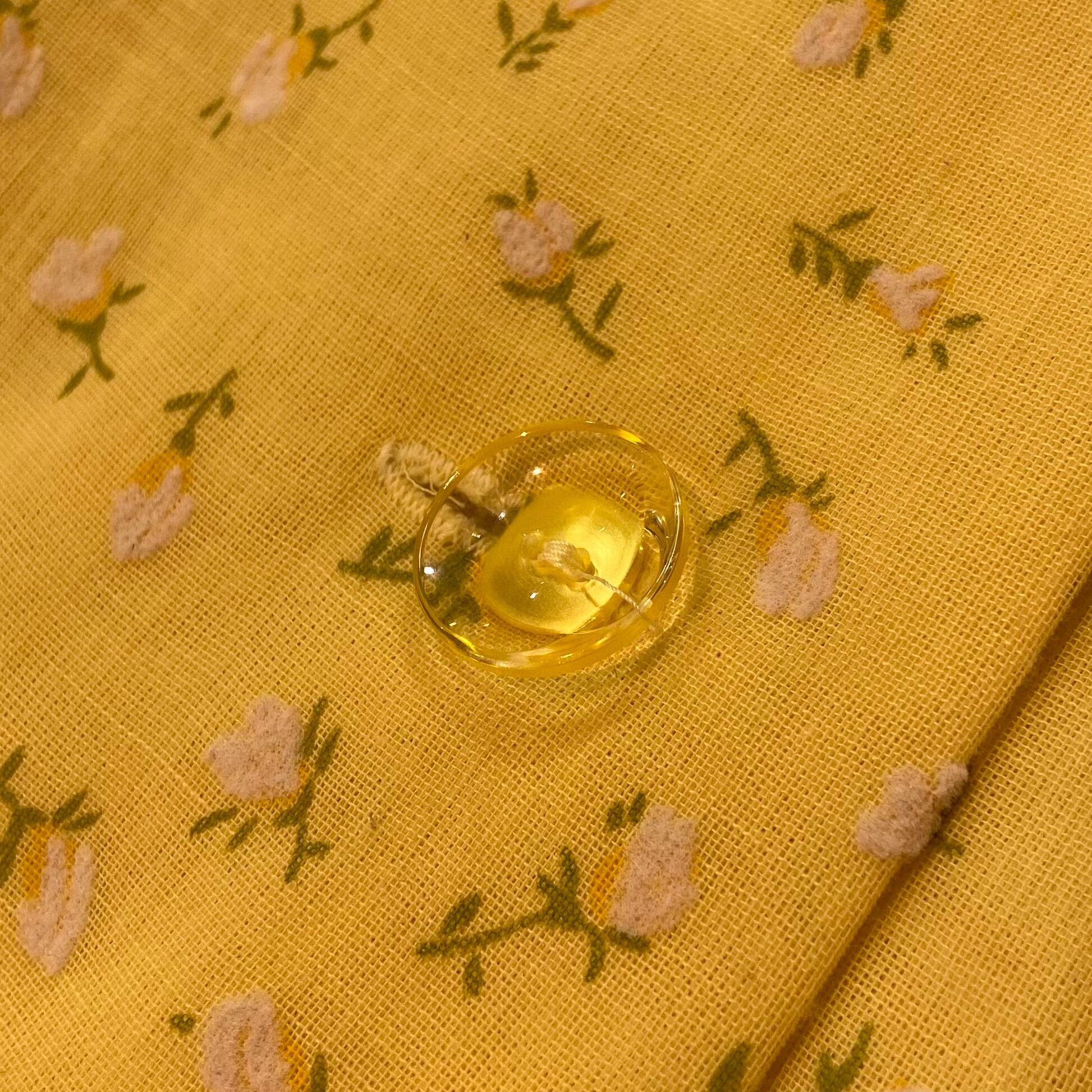 小花の部分はフロッキープリントになっていて、キャンディのようなクリアなボタンもキュート。