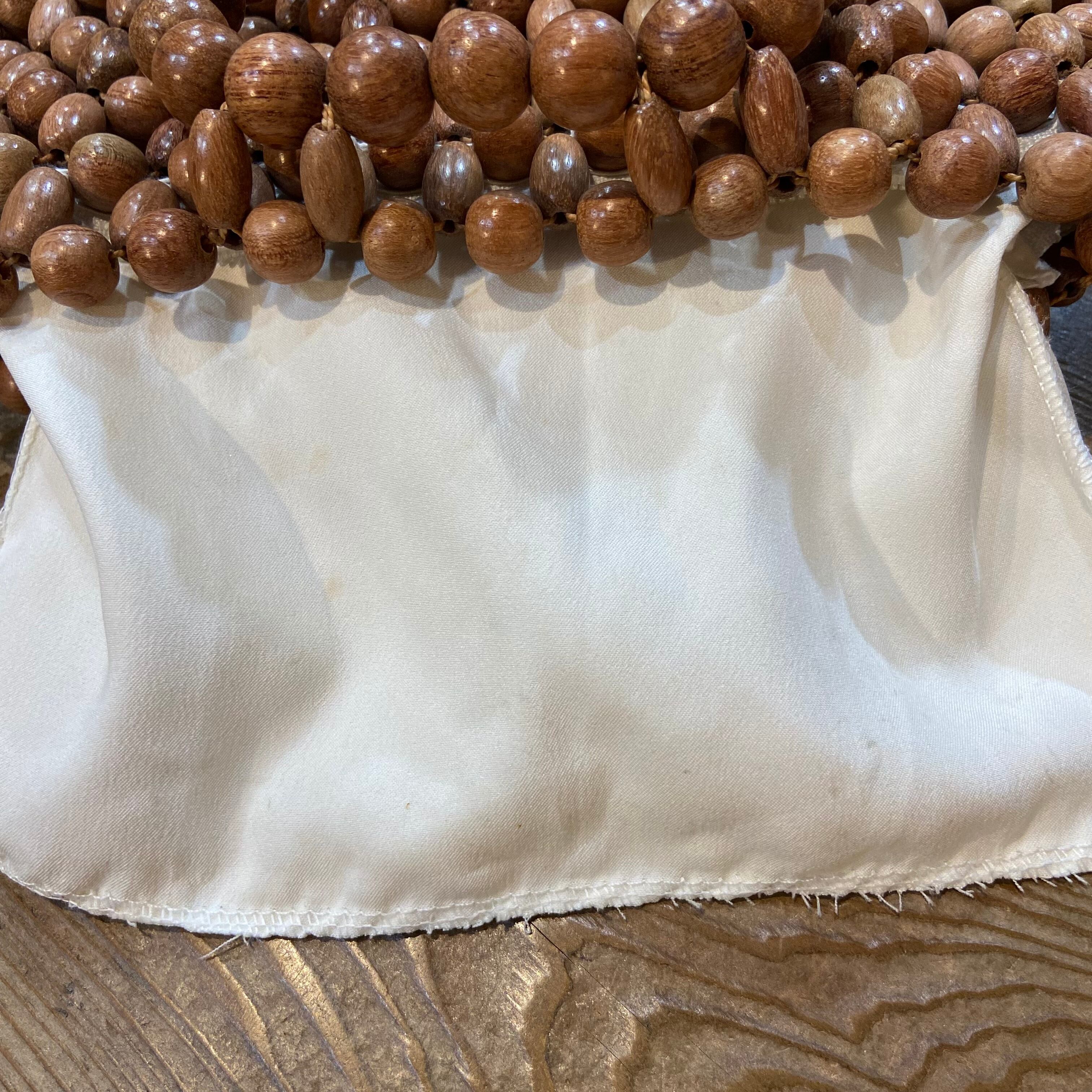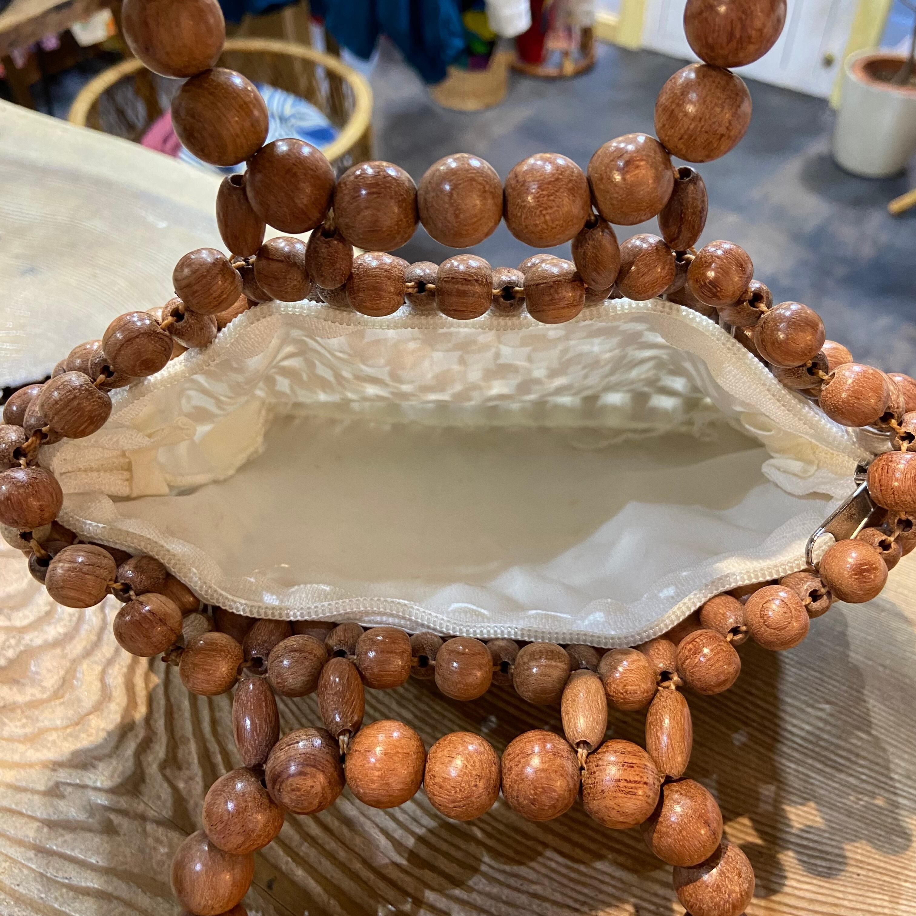 ウッドビーズを繋げて作られたデザインが可愛いハンドバッグです。
