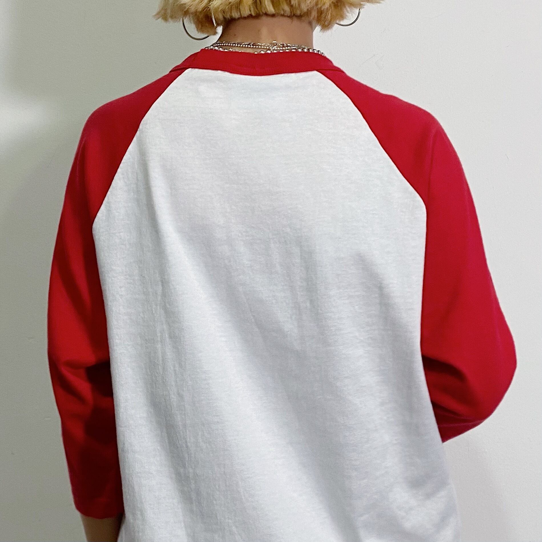 レッド×ホワイトの組み合わせが可愛い、90年代のベースボールTシャツです。