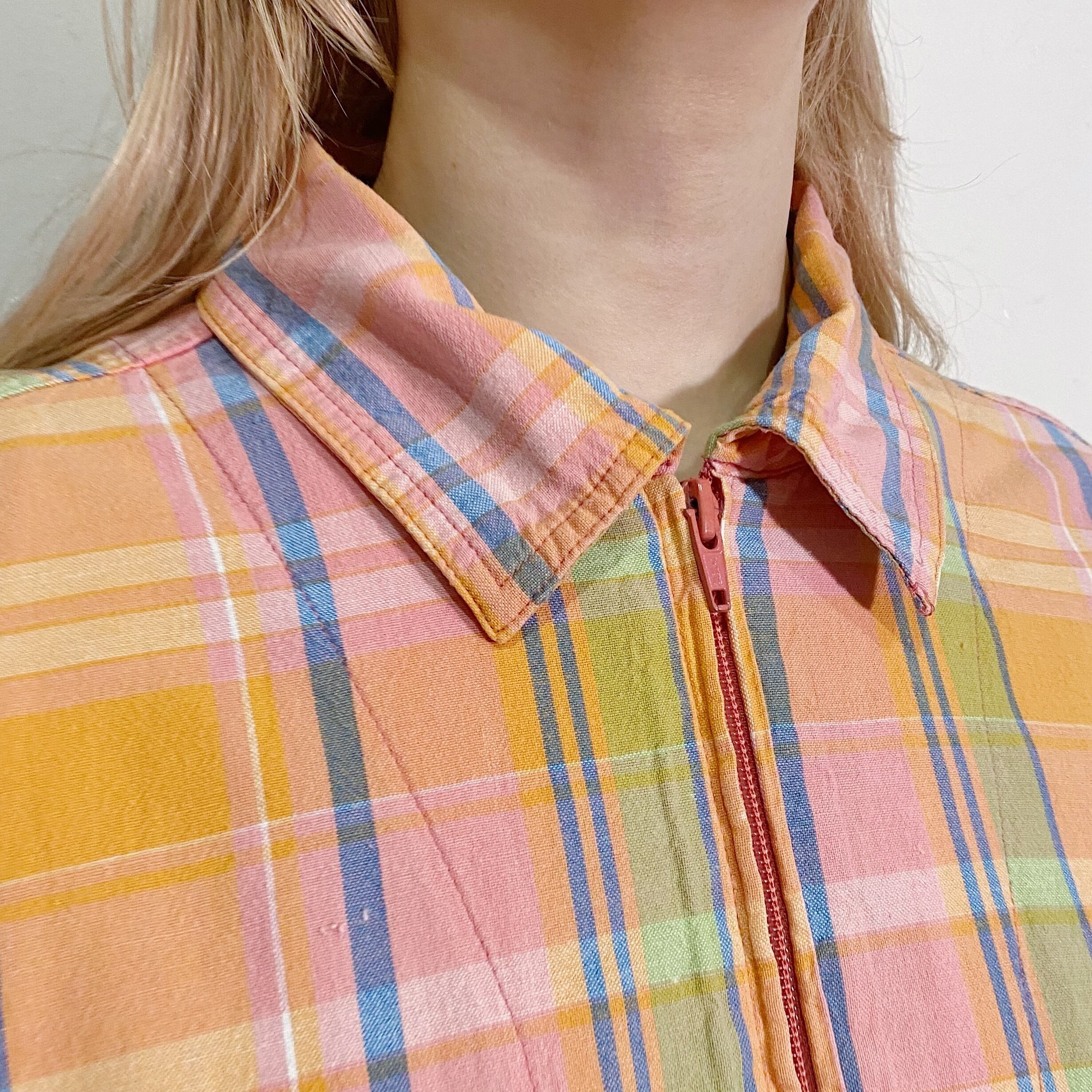 オレンジやピンクのマドラスチェックが可愛い、ジャケットです。