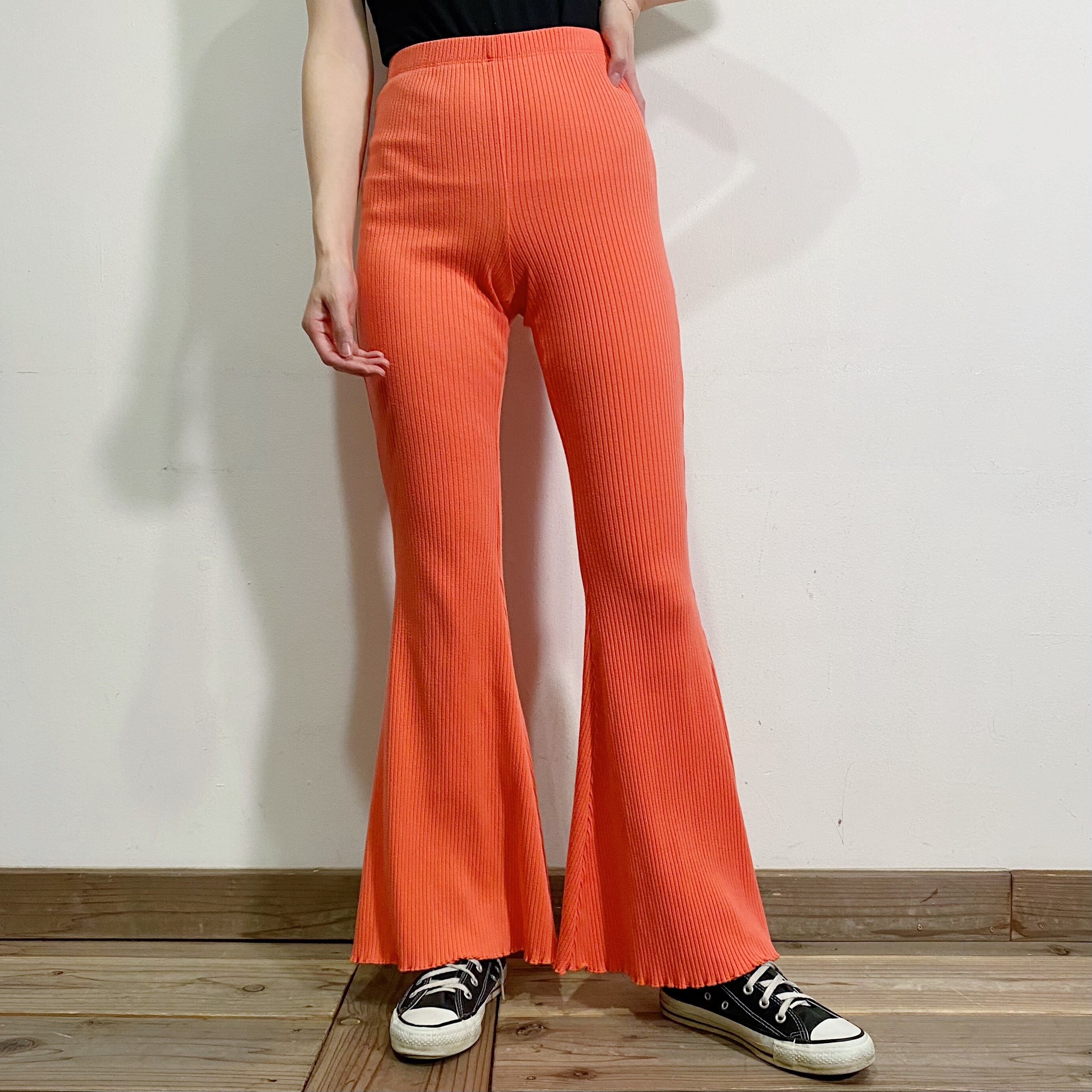 鮮やかなオレンジと綺麗なフレアシルエットが魅力のパンツです。