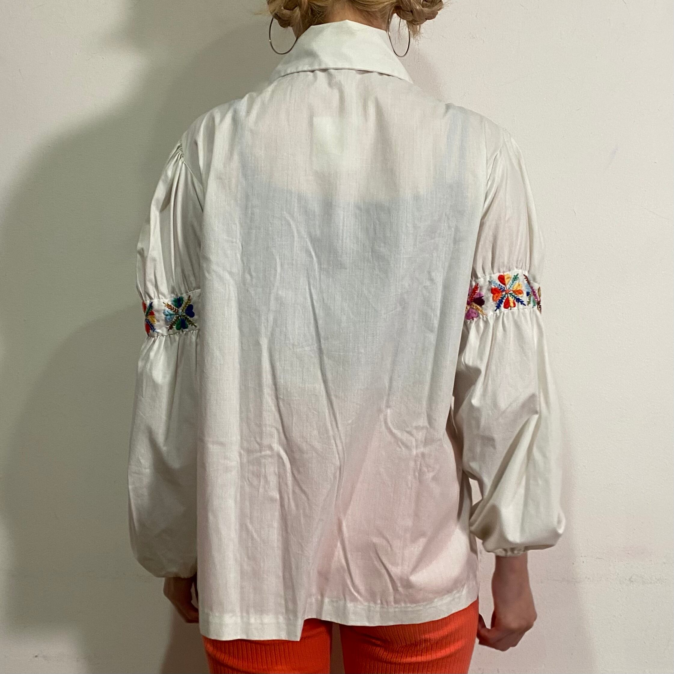 70s white flower embroidery shirt