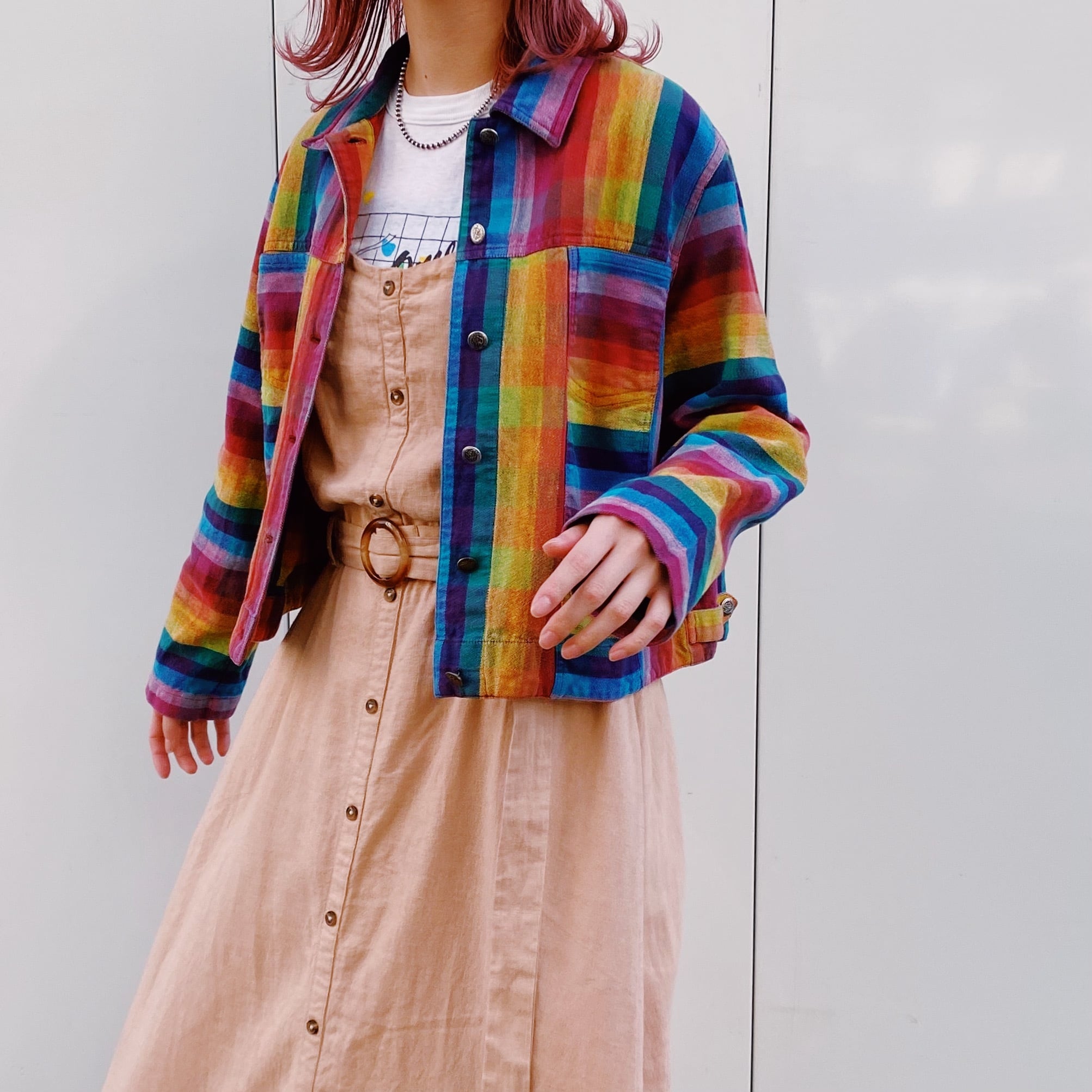 レインボーチェックが可愛い、90年代のジャケットです。