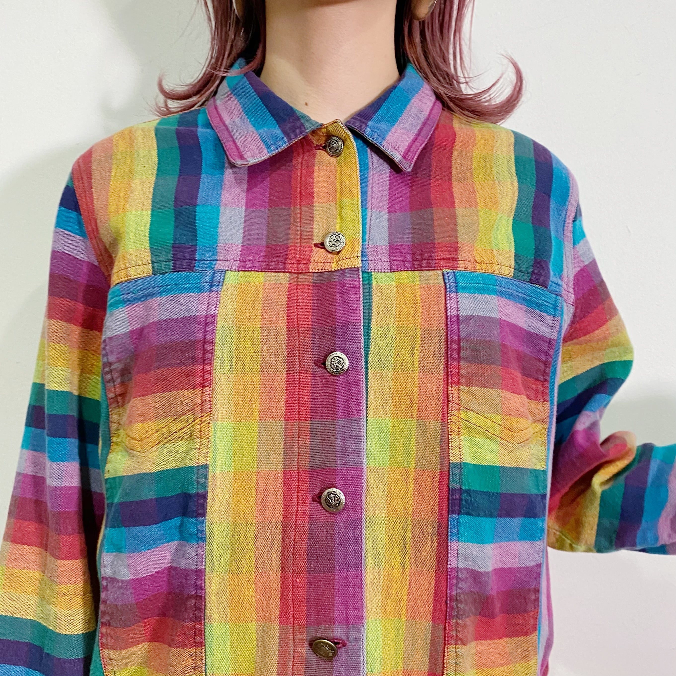 Rainbow plaid cotton jacket