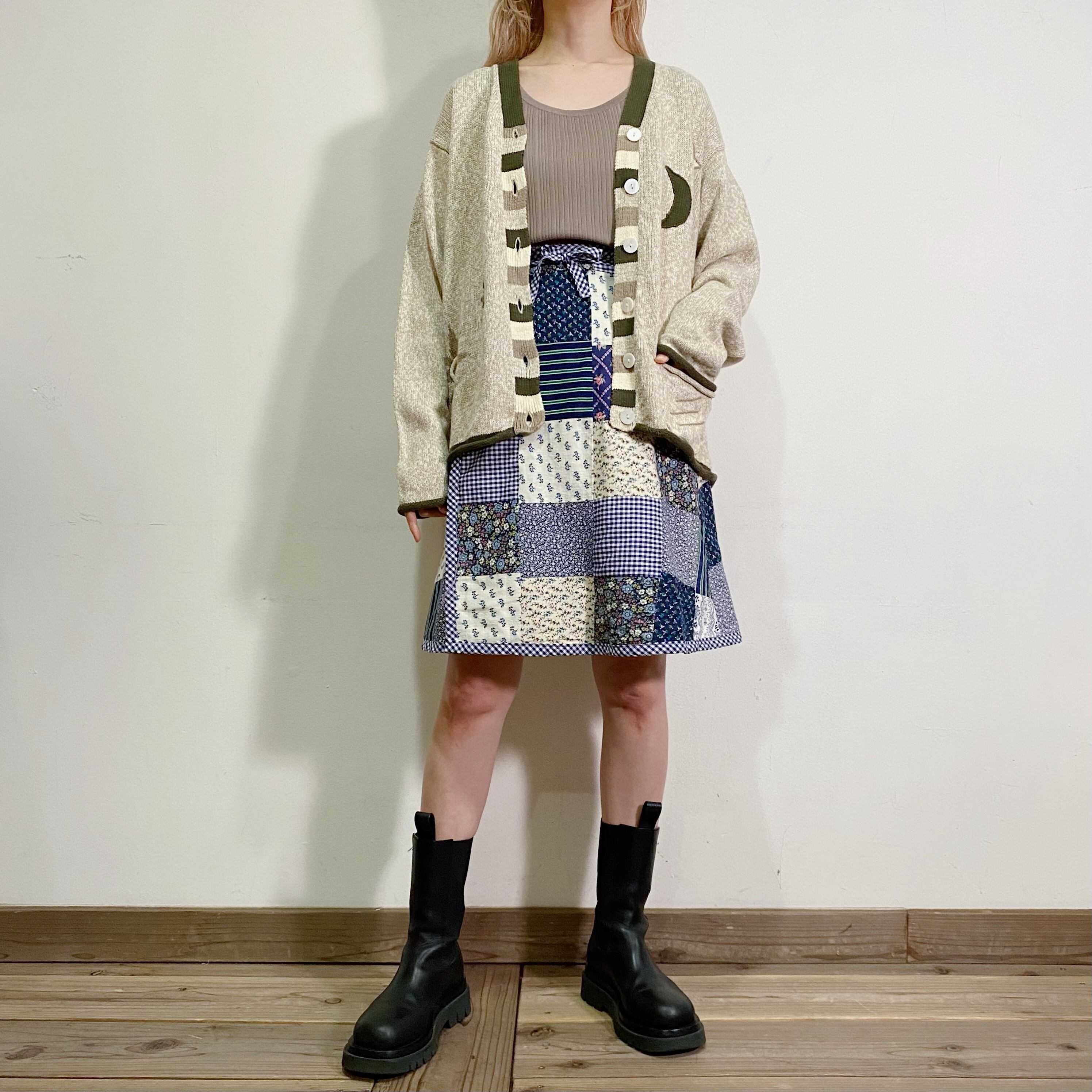 シンプルにデニムパンツや無地ボトムスと合わせても良いですし、着用写真のような柄スカートなどとも相性良く着ていただけます。