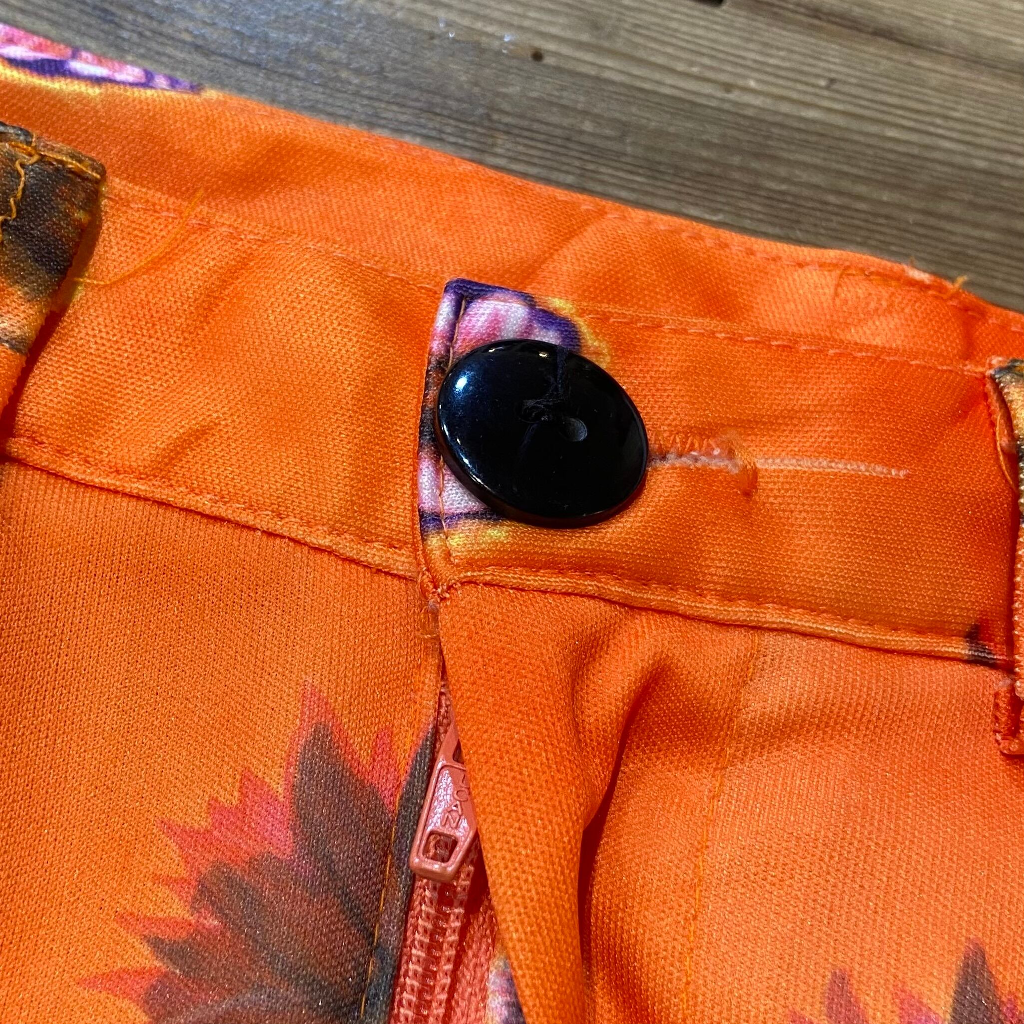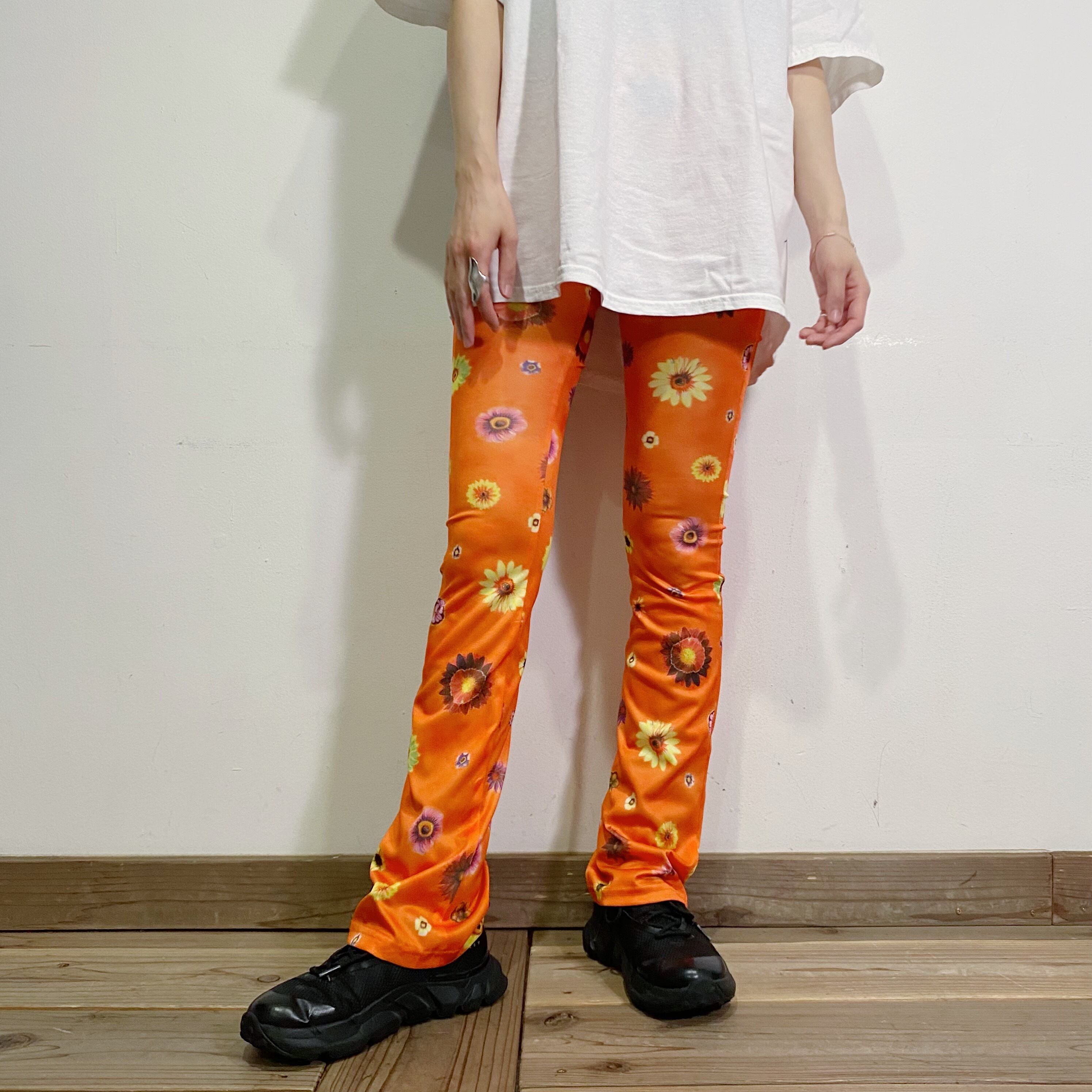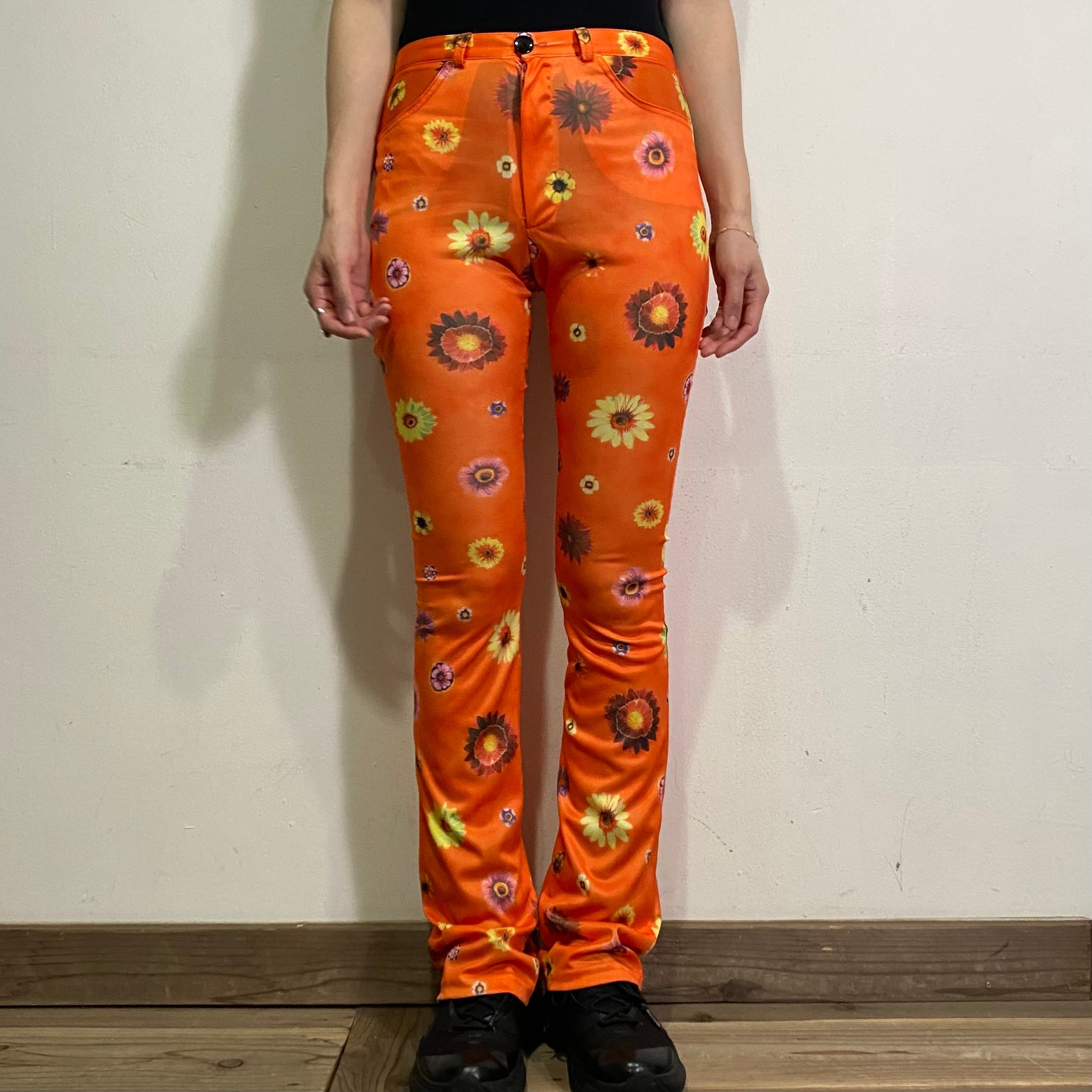 転写プリントでリアルフラワーがプリントされた、イケてる80年代のパンツです。