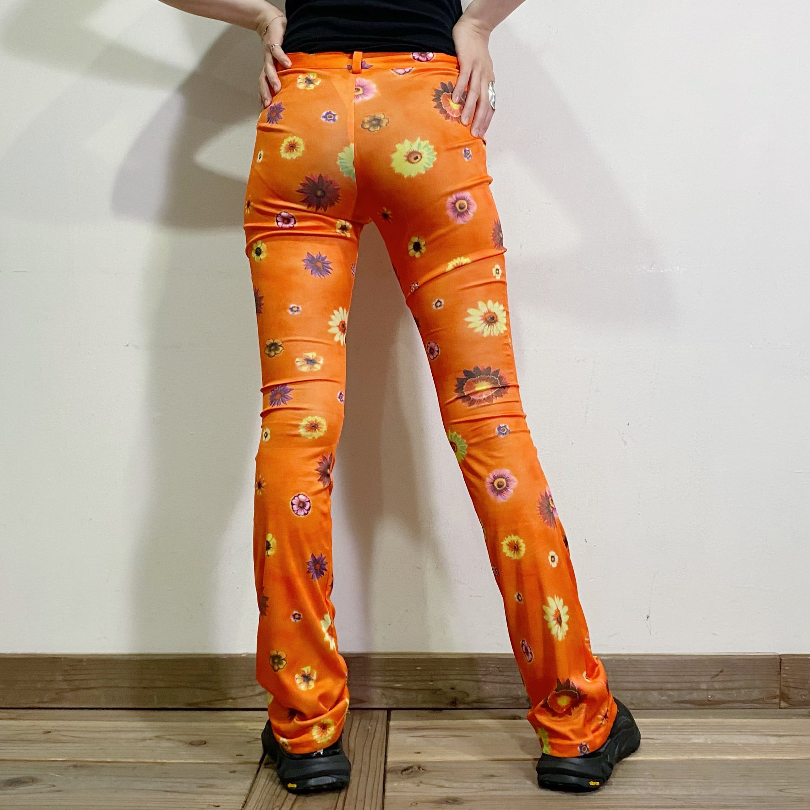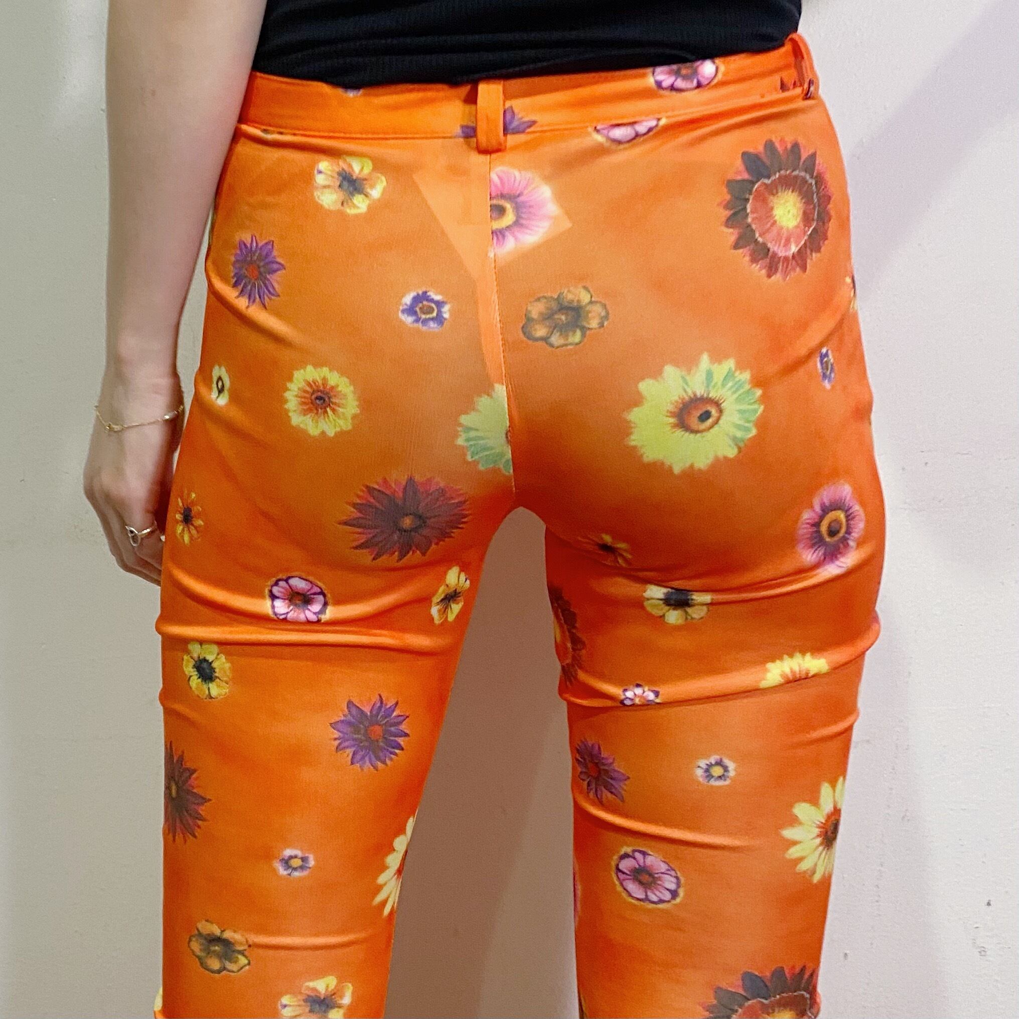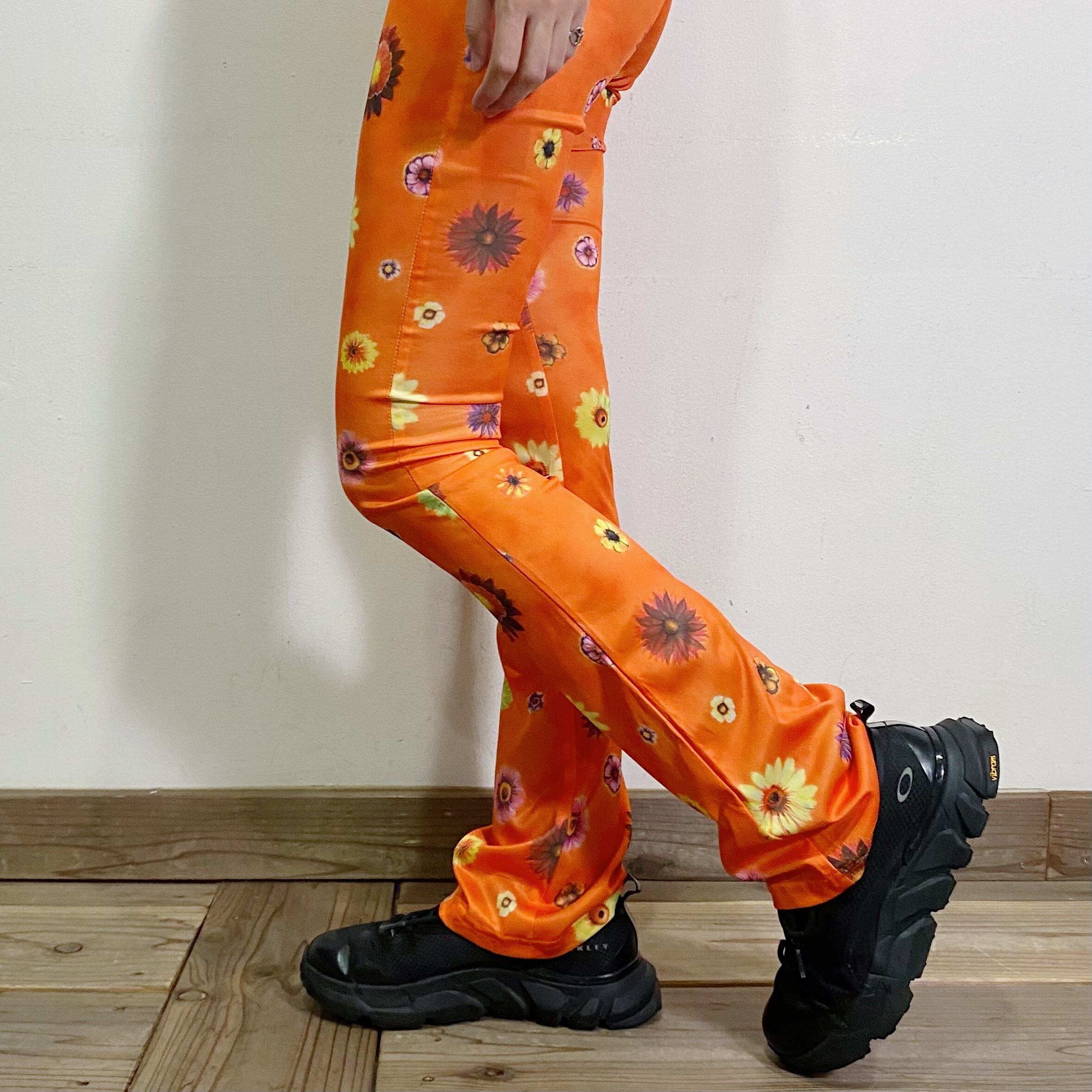 転写プリントでリアルフラワーがプリントされた、イケてる80年代のパンツです。