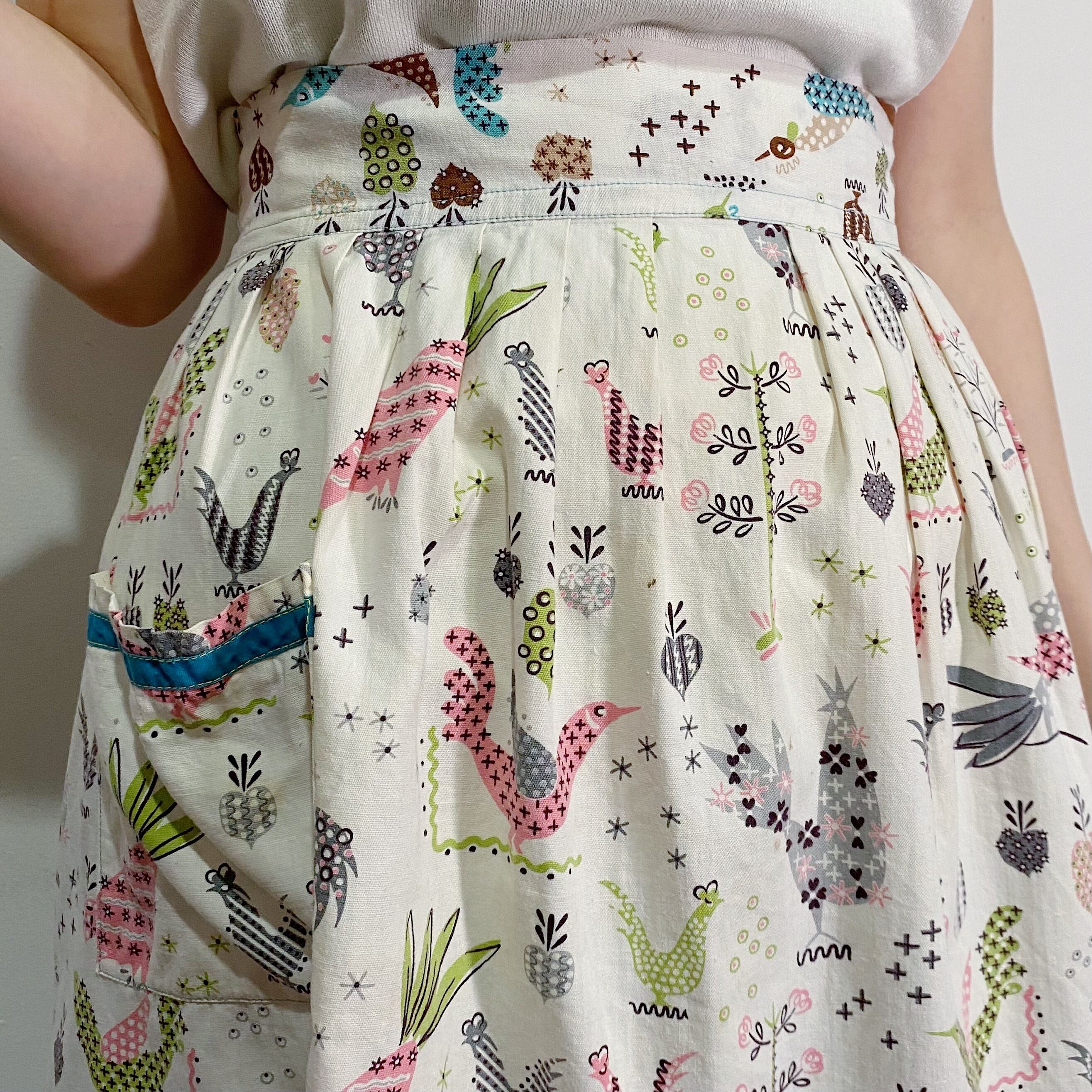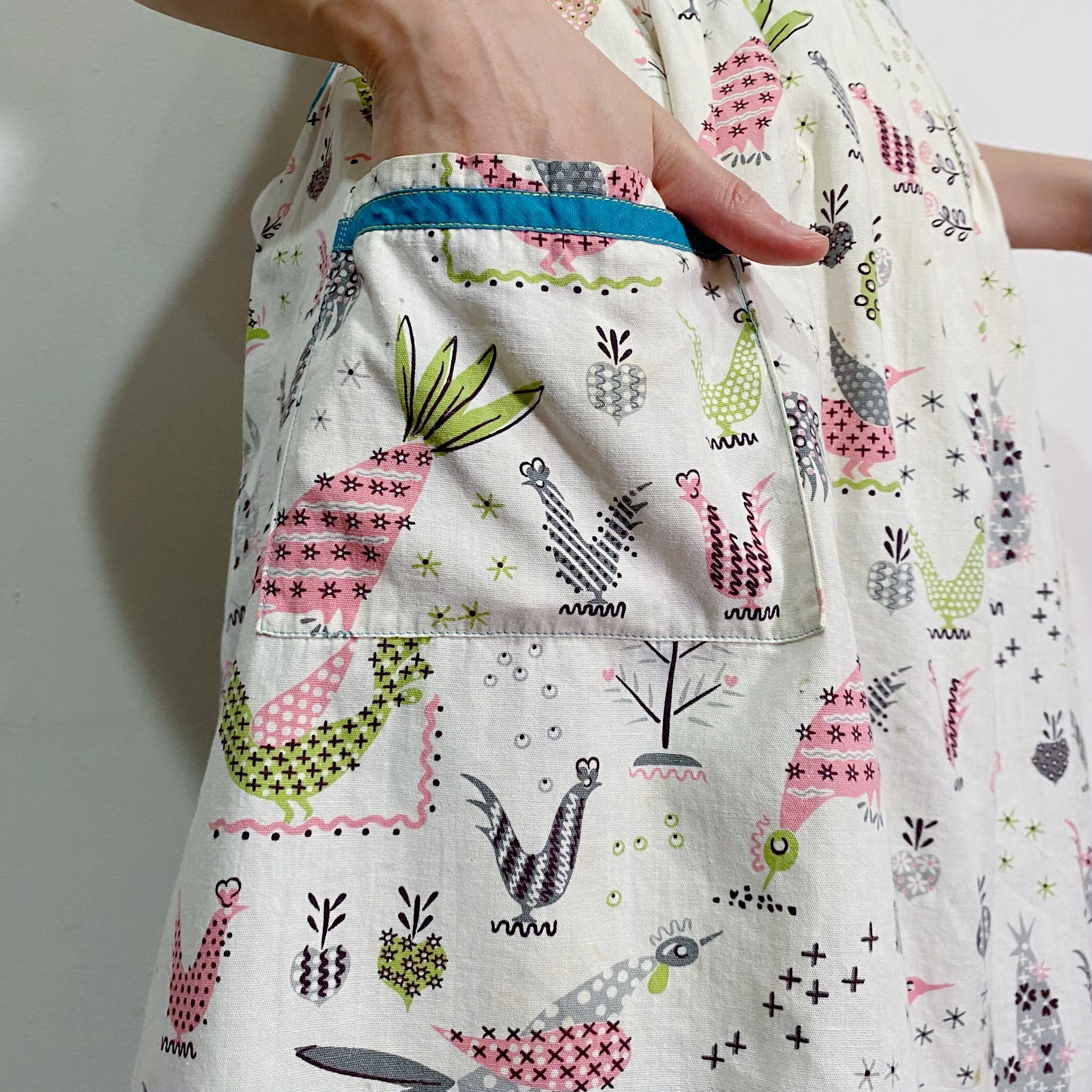 ニワトリのプリントが可愛い、50年代のハーフエプロンです。