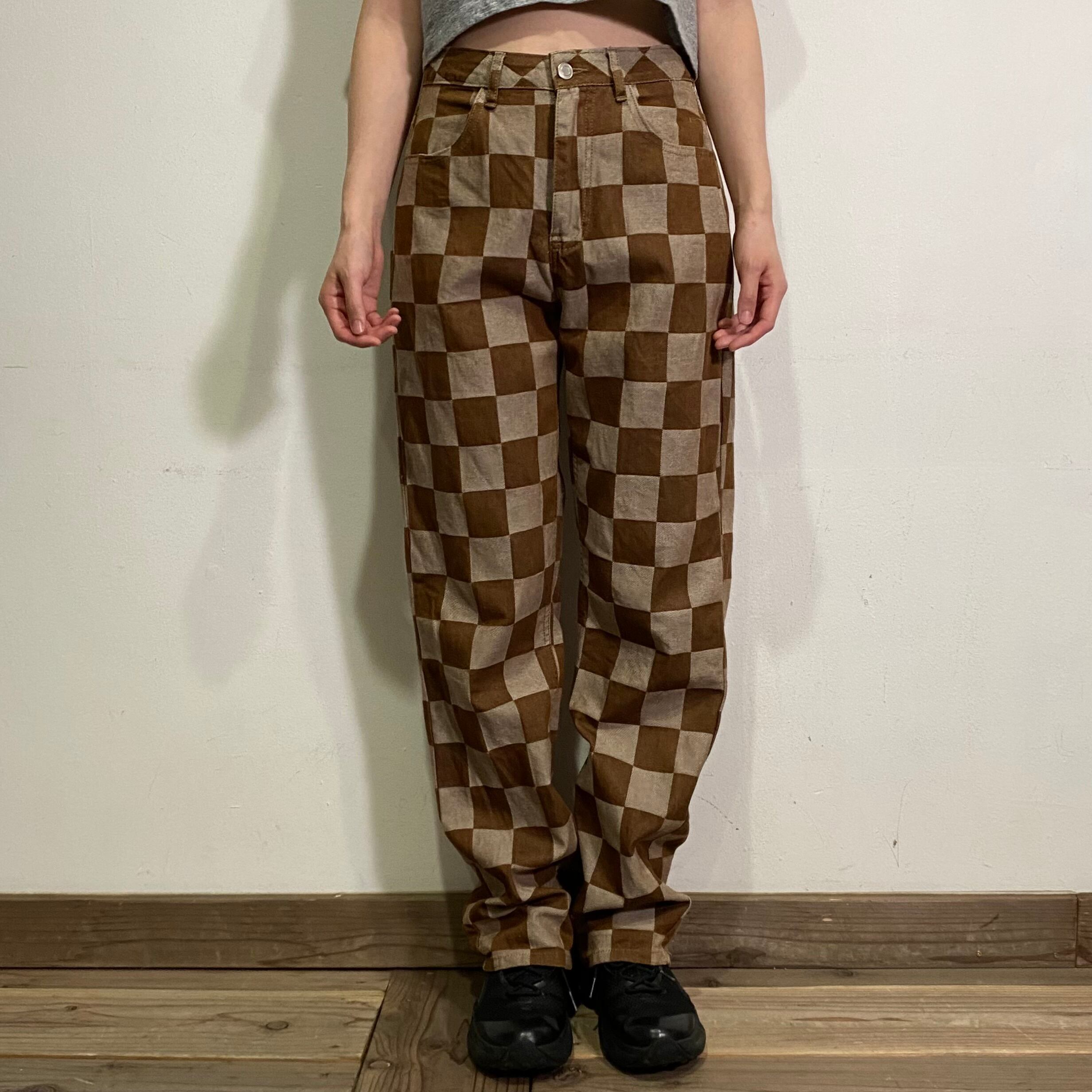 ブラウンベースのブロックチェックが可愛いコットンパンツです。