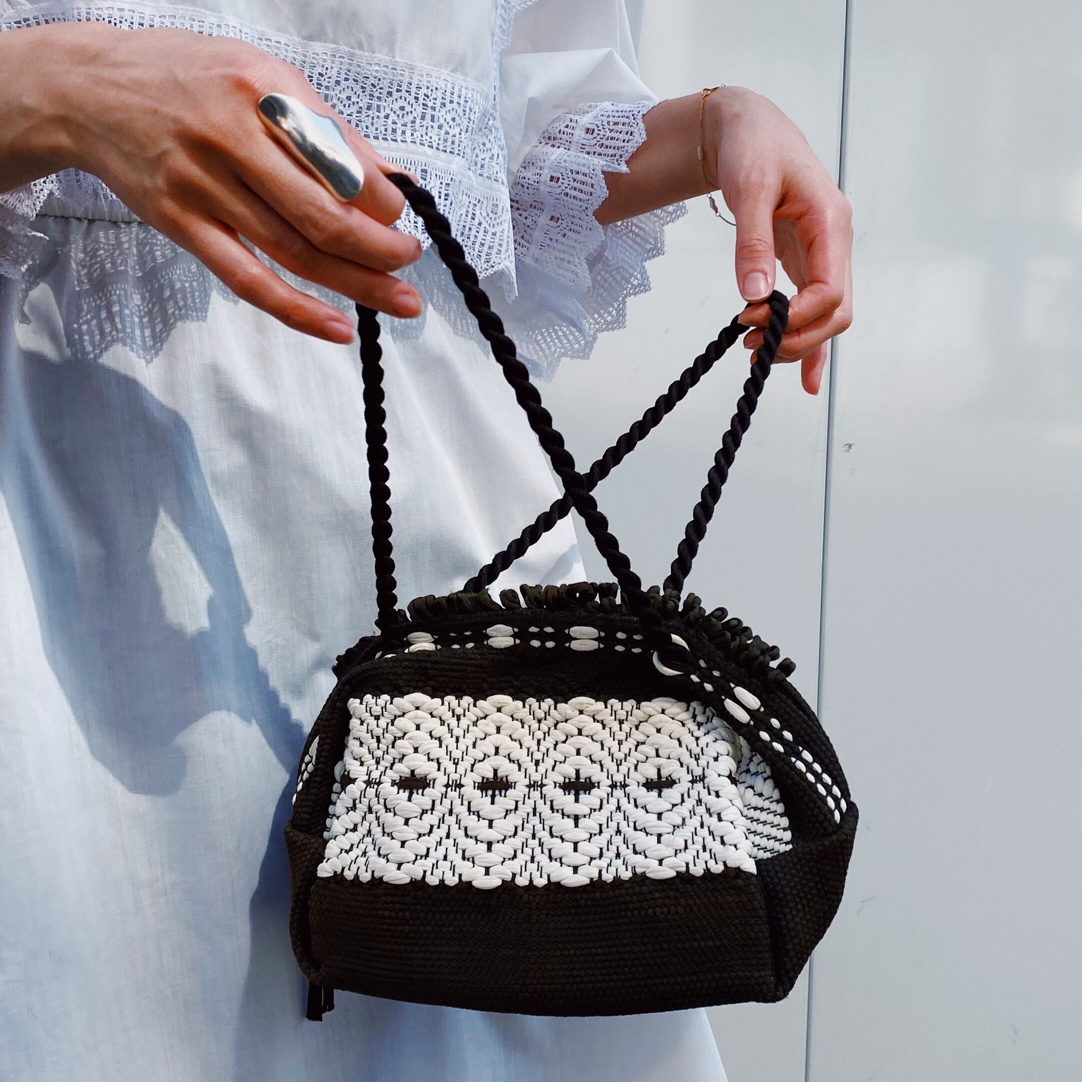40s black and white hand bag