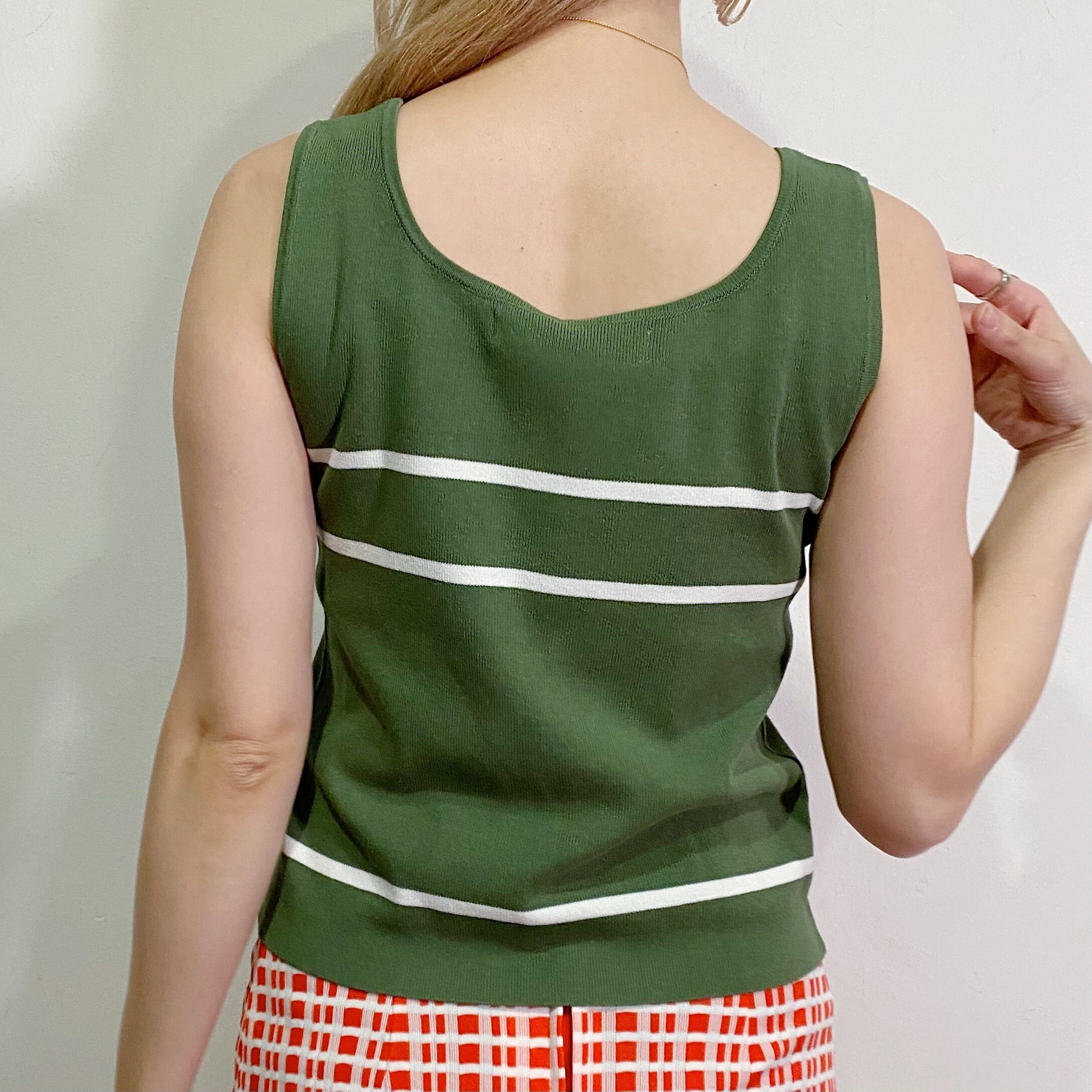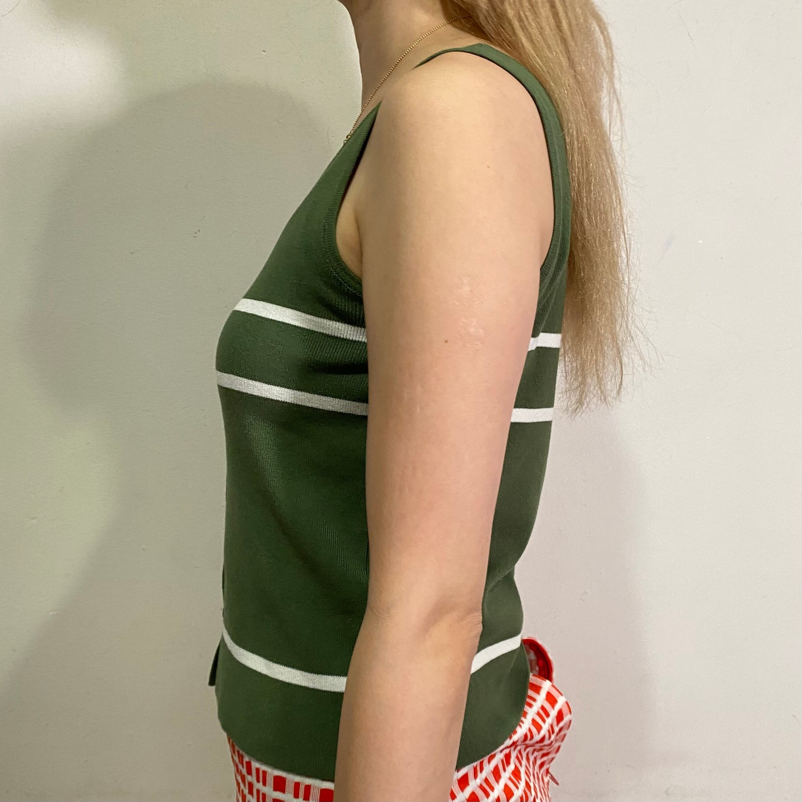 使い勝手のいいオリーブカラーにホワイトのラインが可愛い、ノースリーブトップです。