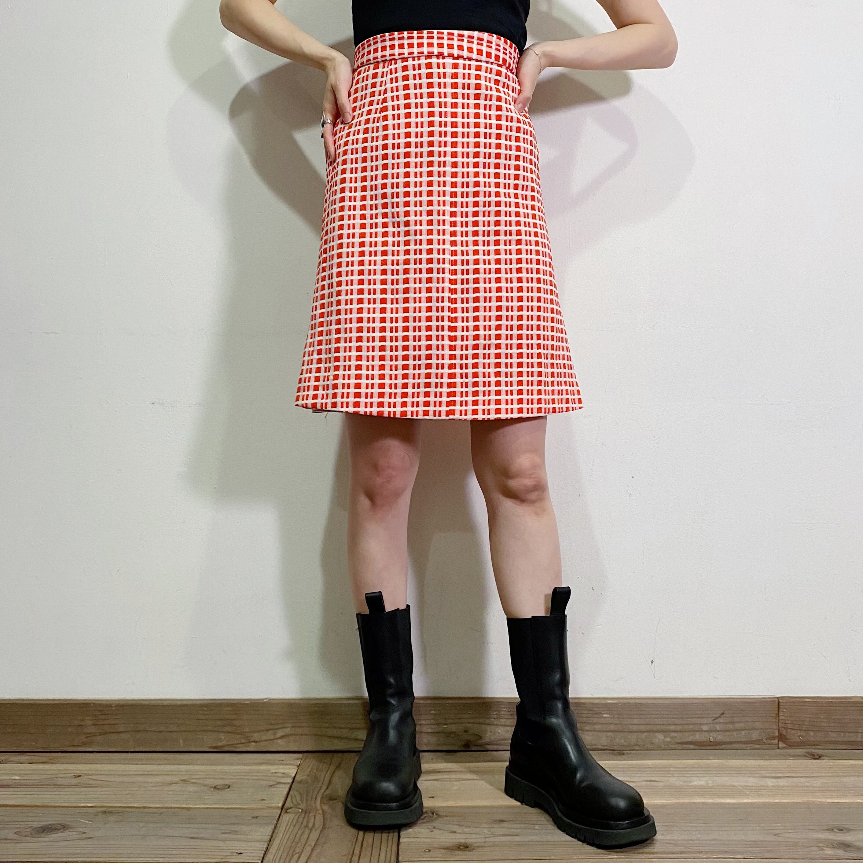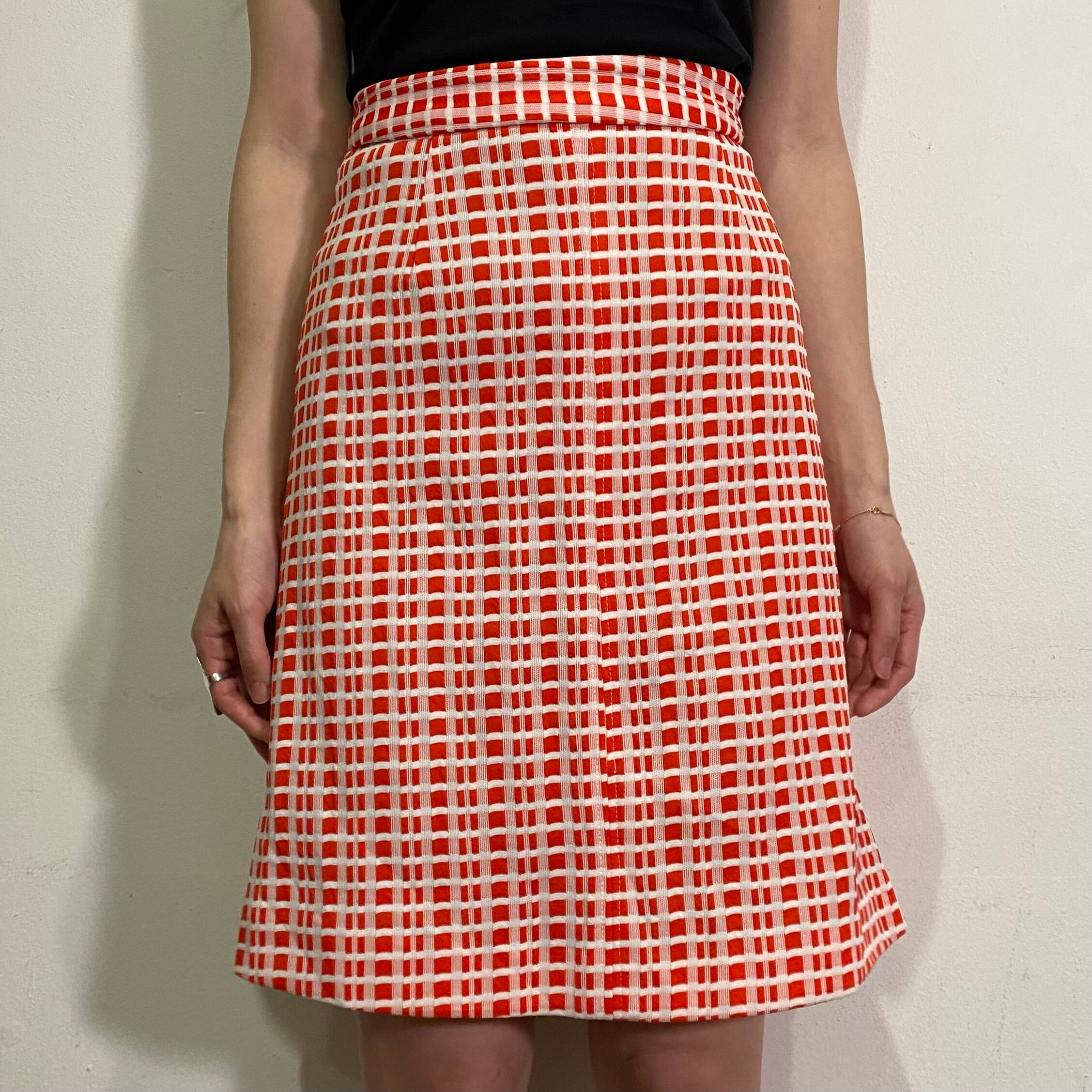 朱赤×白のチェック柄が可愛い、70年代のミニスカートです。