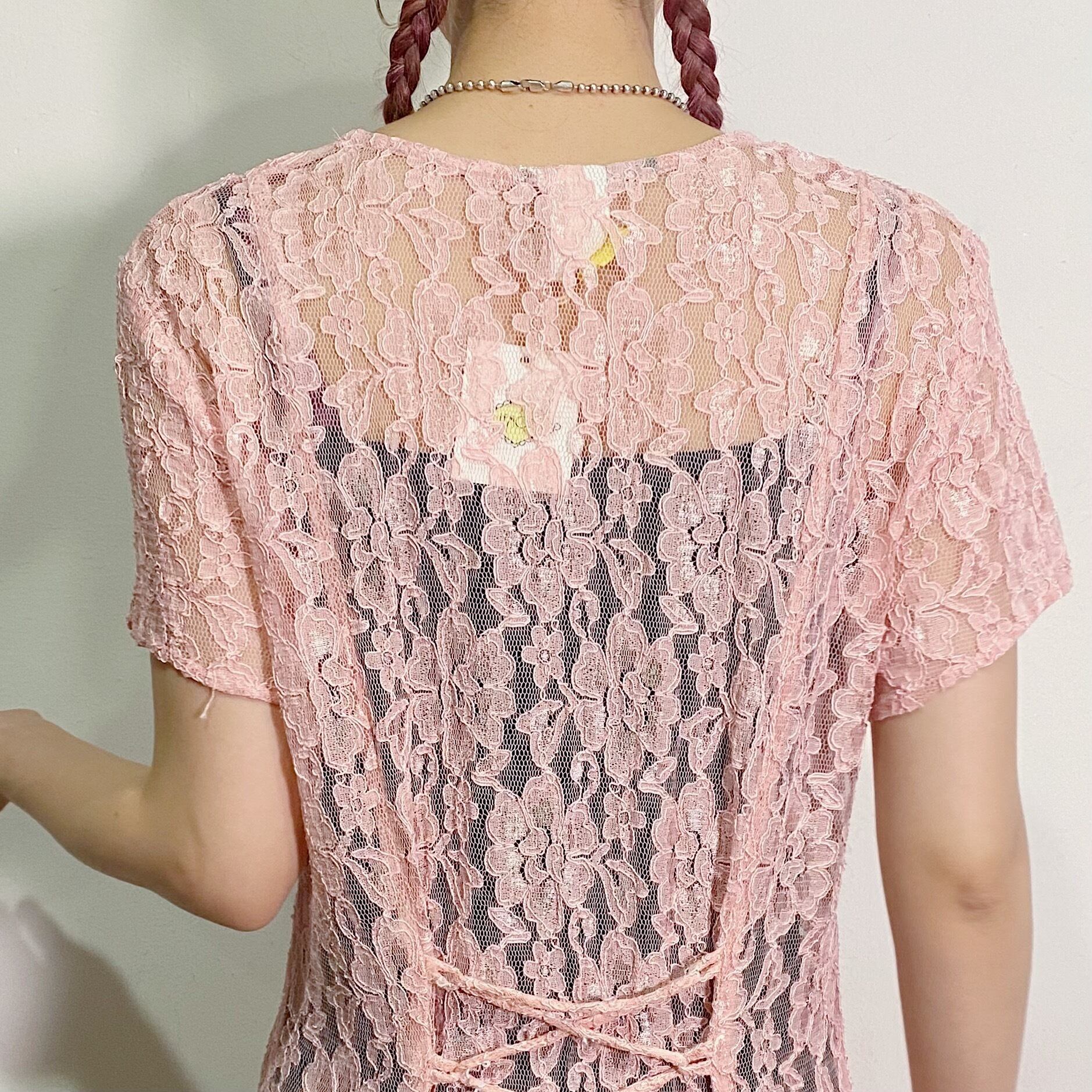 透け感のある薄ピンクの総レースが雰囲気あります。