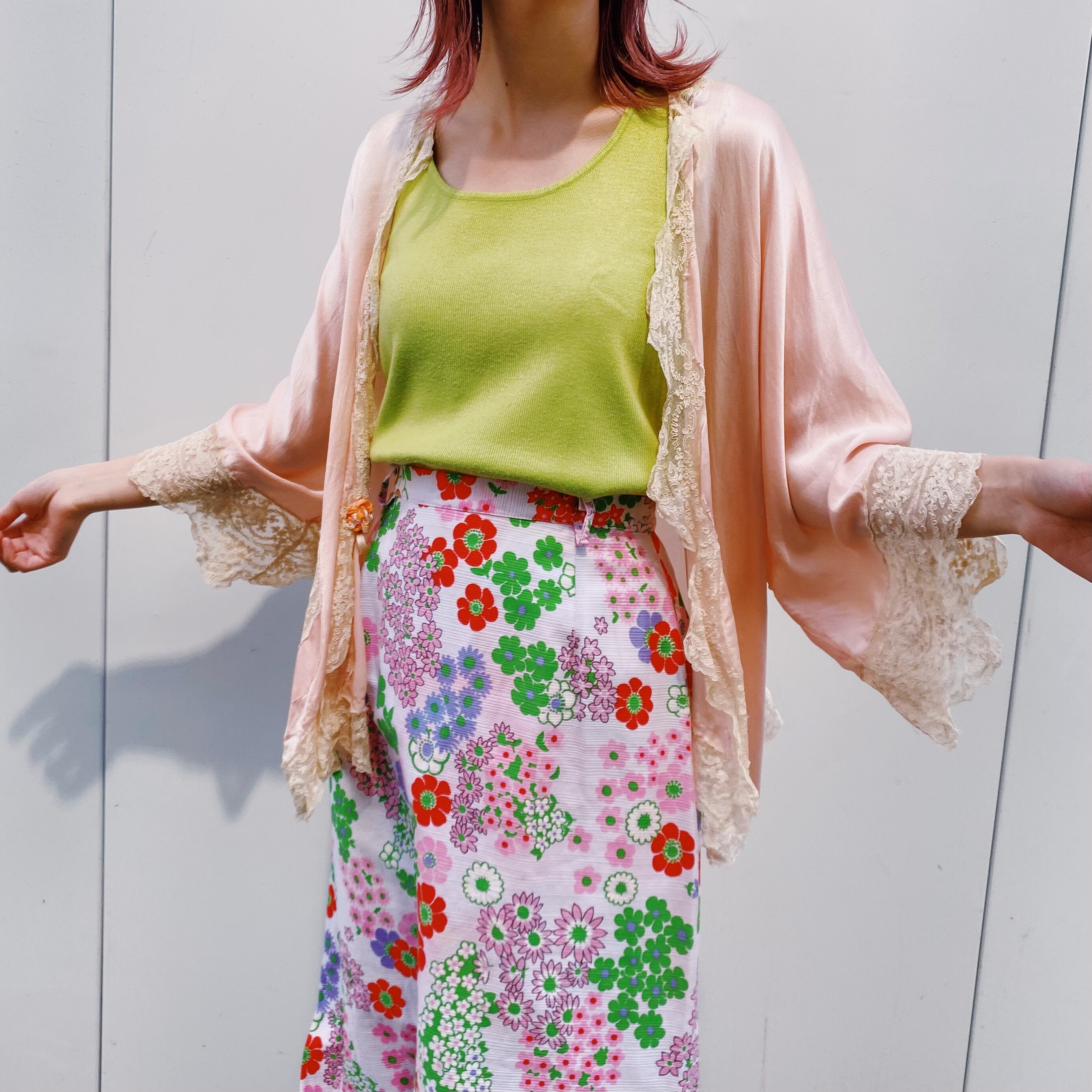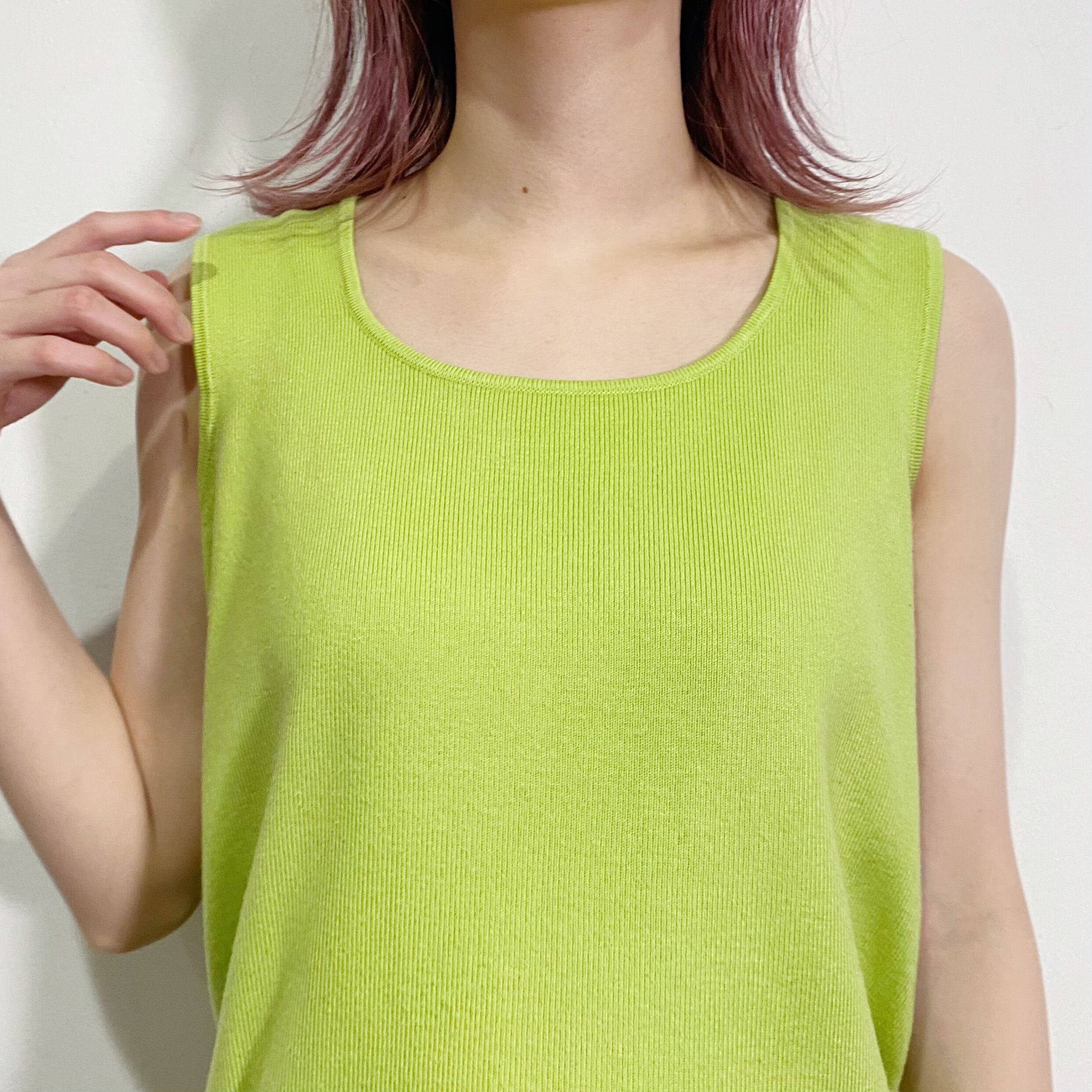 ライムグリーンの色合いが可愛い、ノースリーブトップスです。