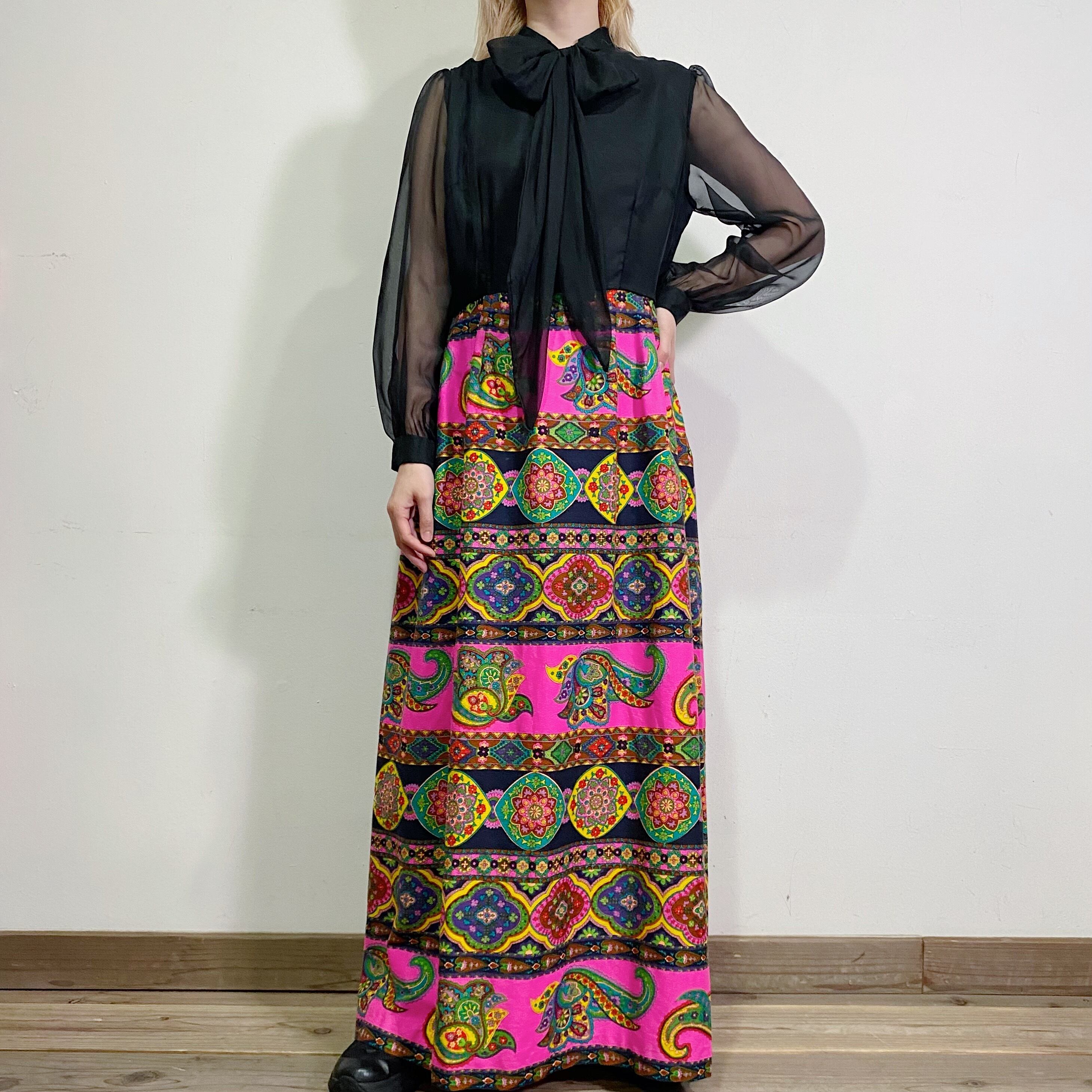 シアーな上半身とサイケな下半身の切り替えが可愛い、60年代のワンピースです。