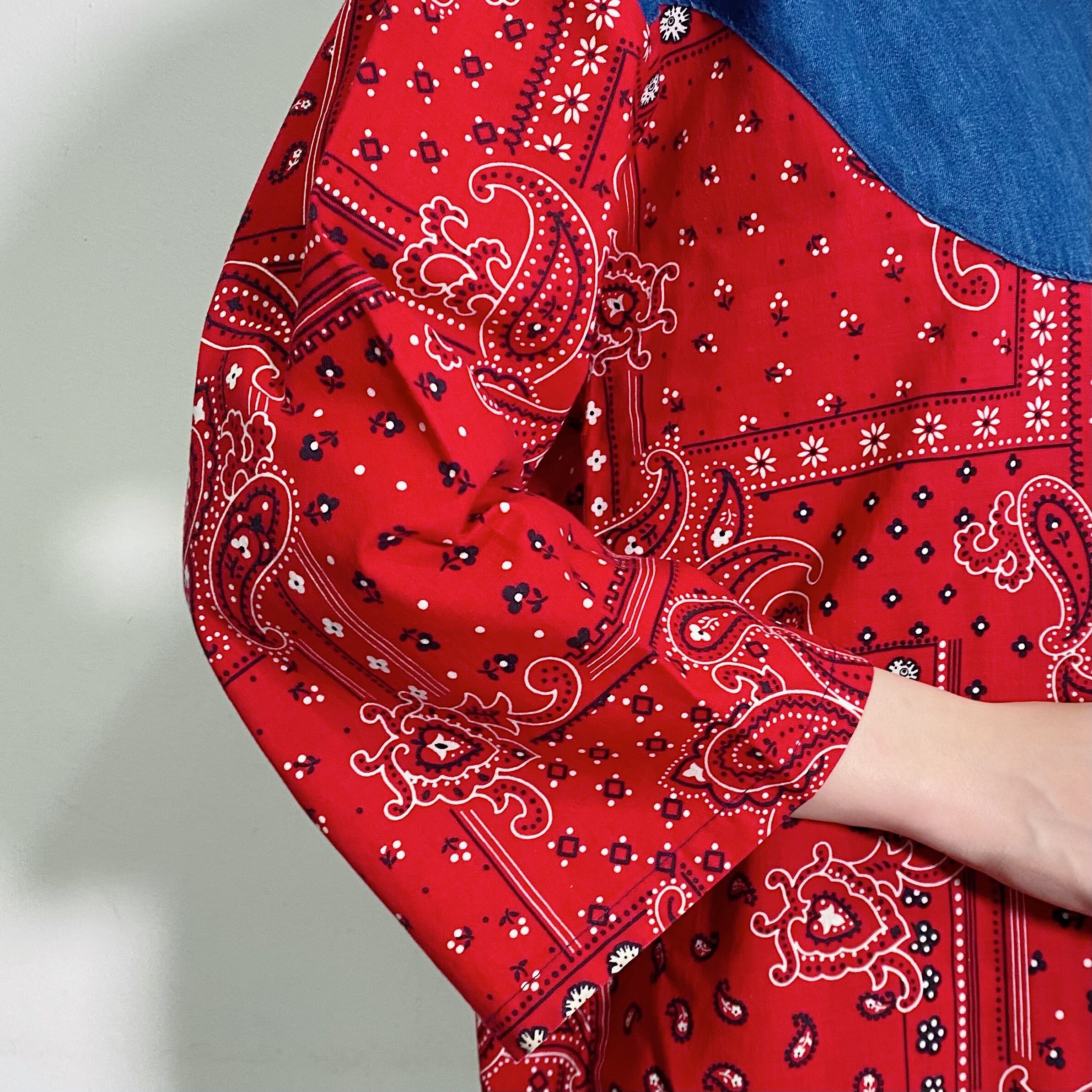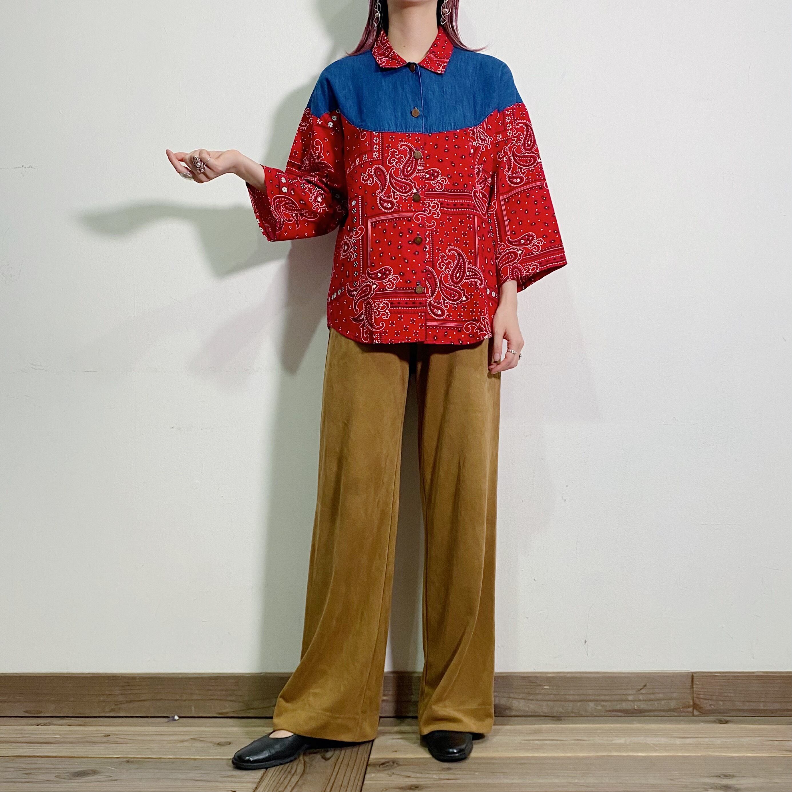 バンダナ柄とデニムの切り替えが可愛い、80~90年代の開襟シャツです。