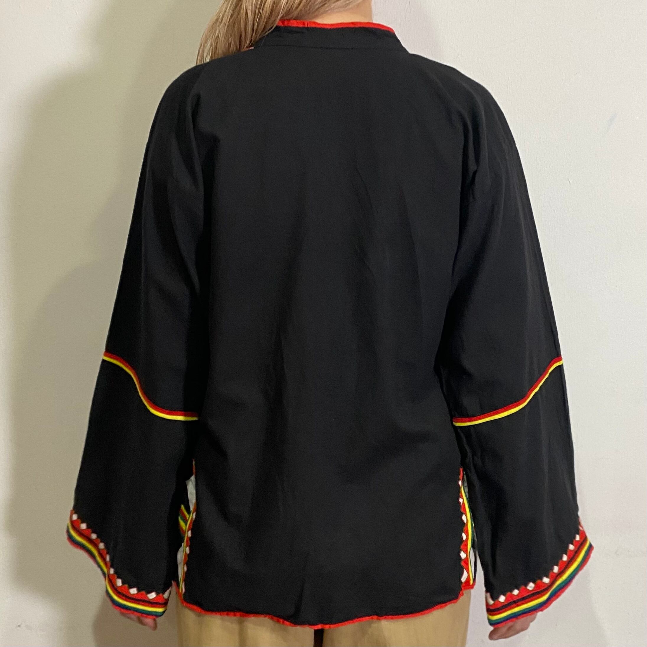 ブラックベースなのでカラフルながらも意外に着こなしやすい一枚。