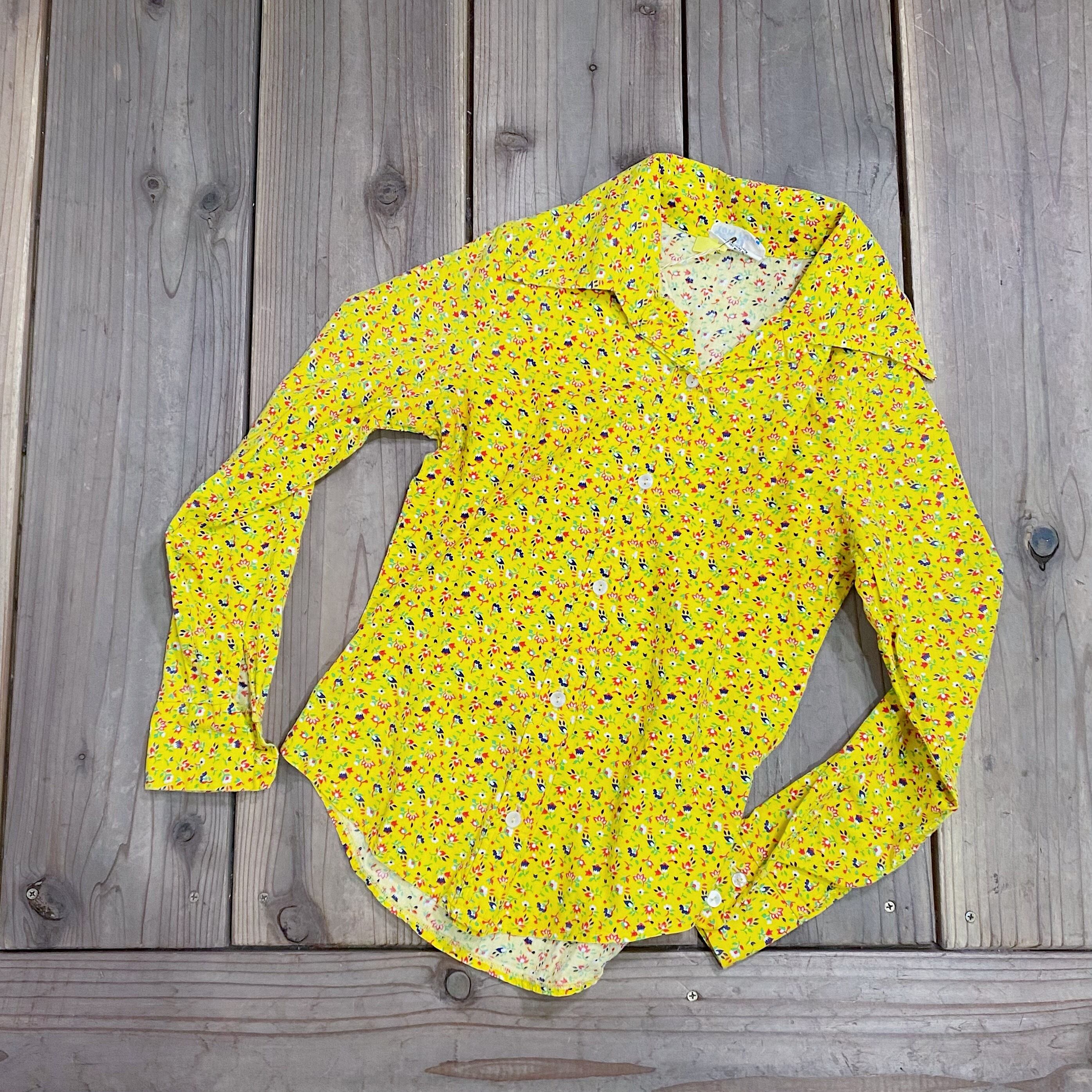 70s yellow flower printed long sleeves shirt