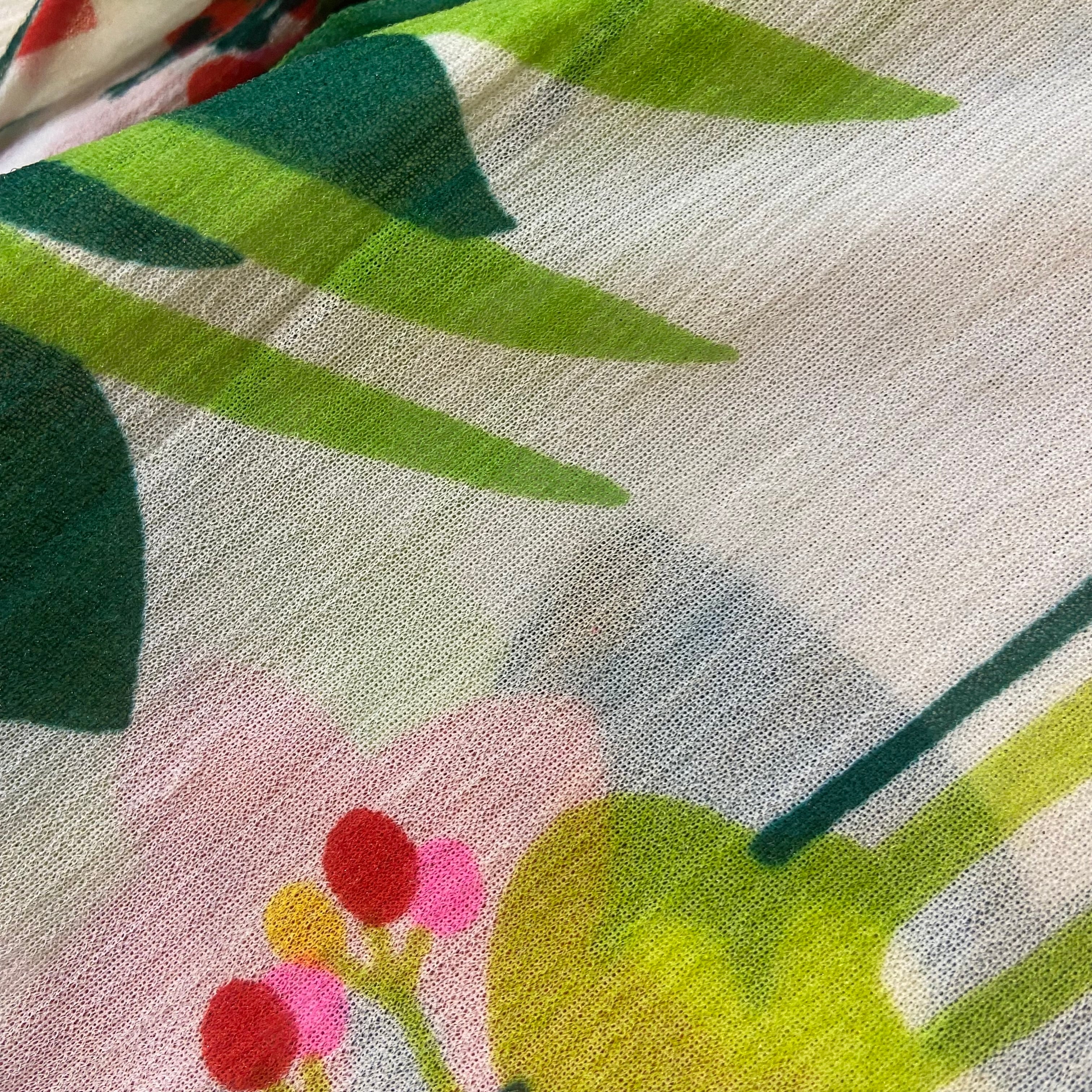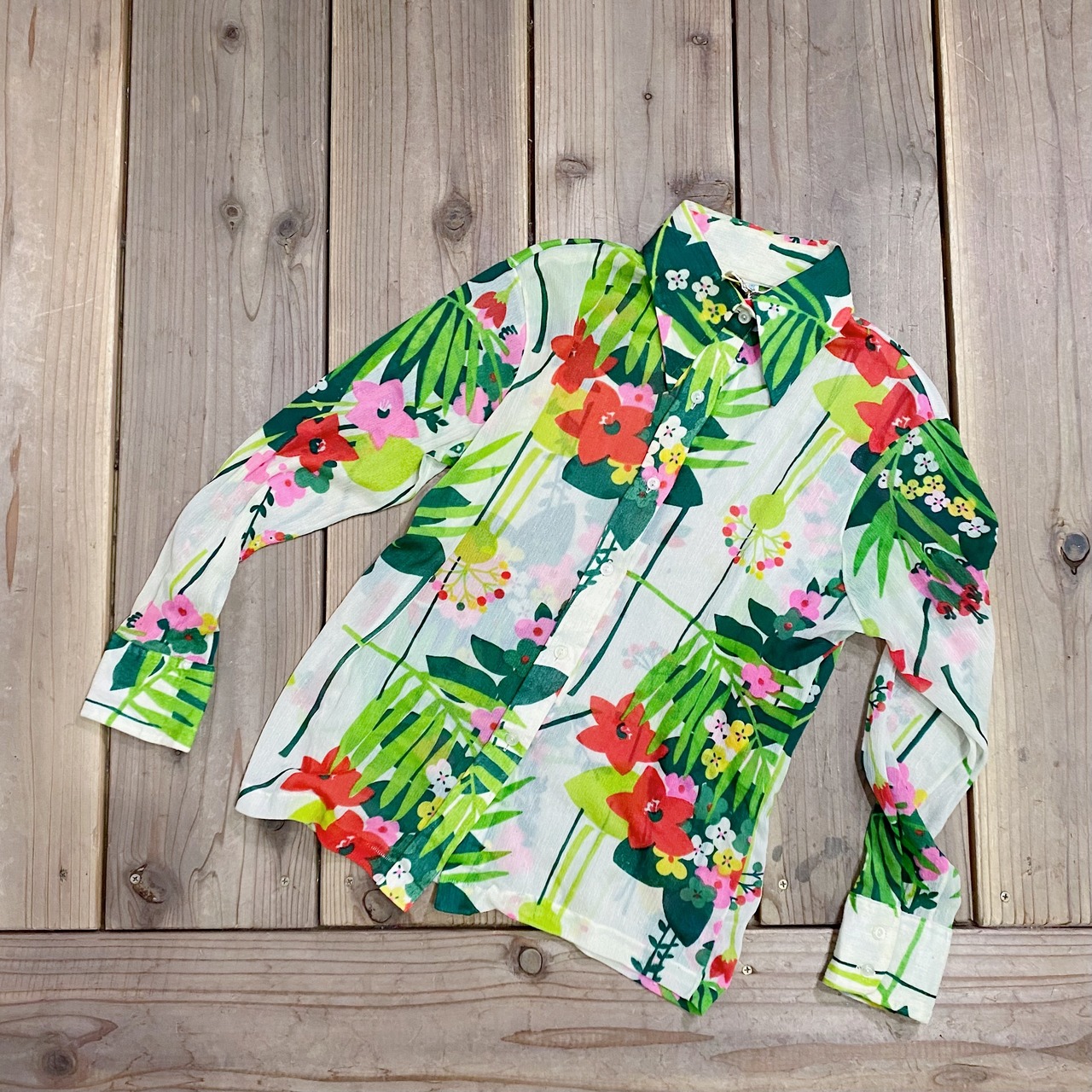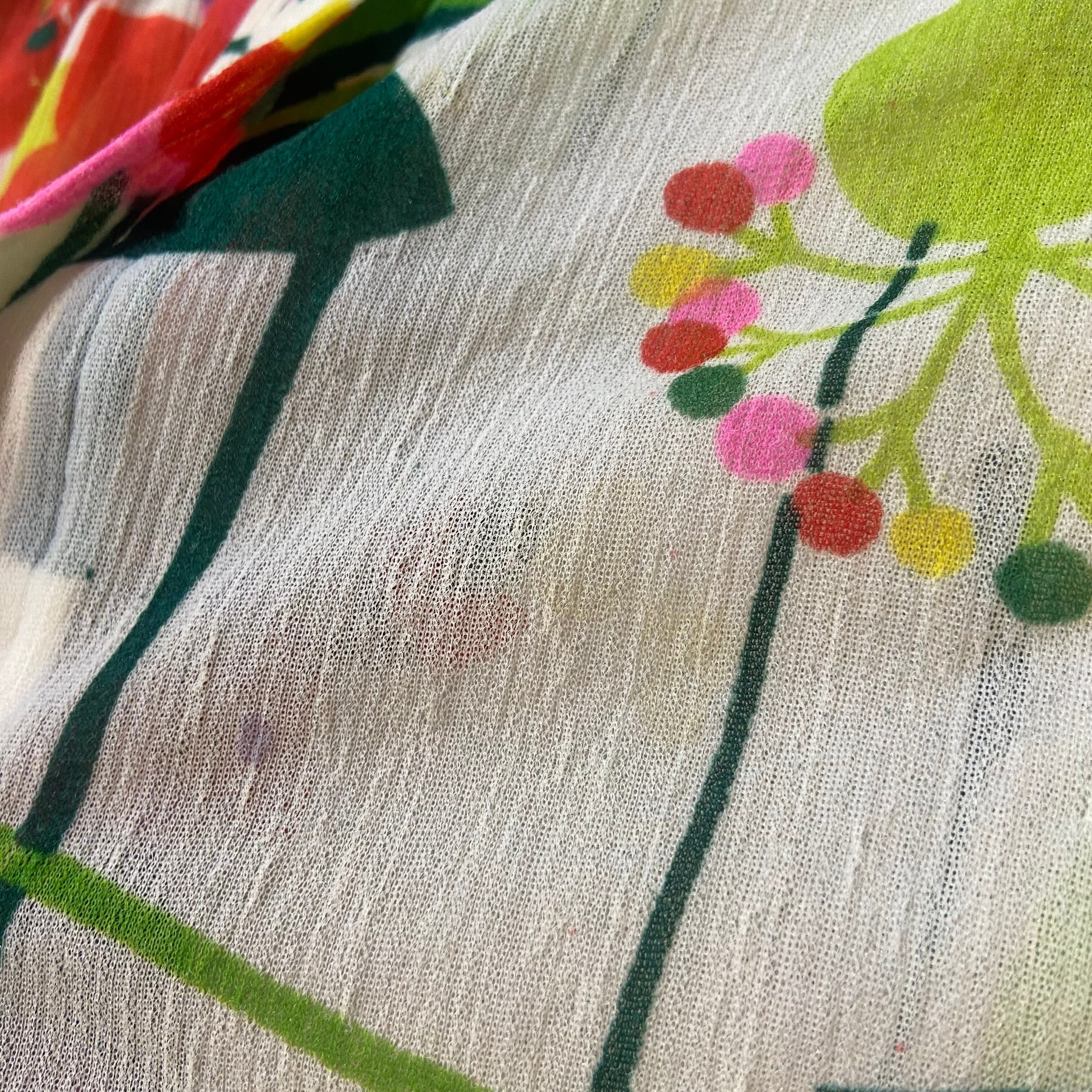 フロントにうっすらとしたシミと色移りのような跡が見受けられますが、柄に紛れてほぼ目立ちません。