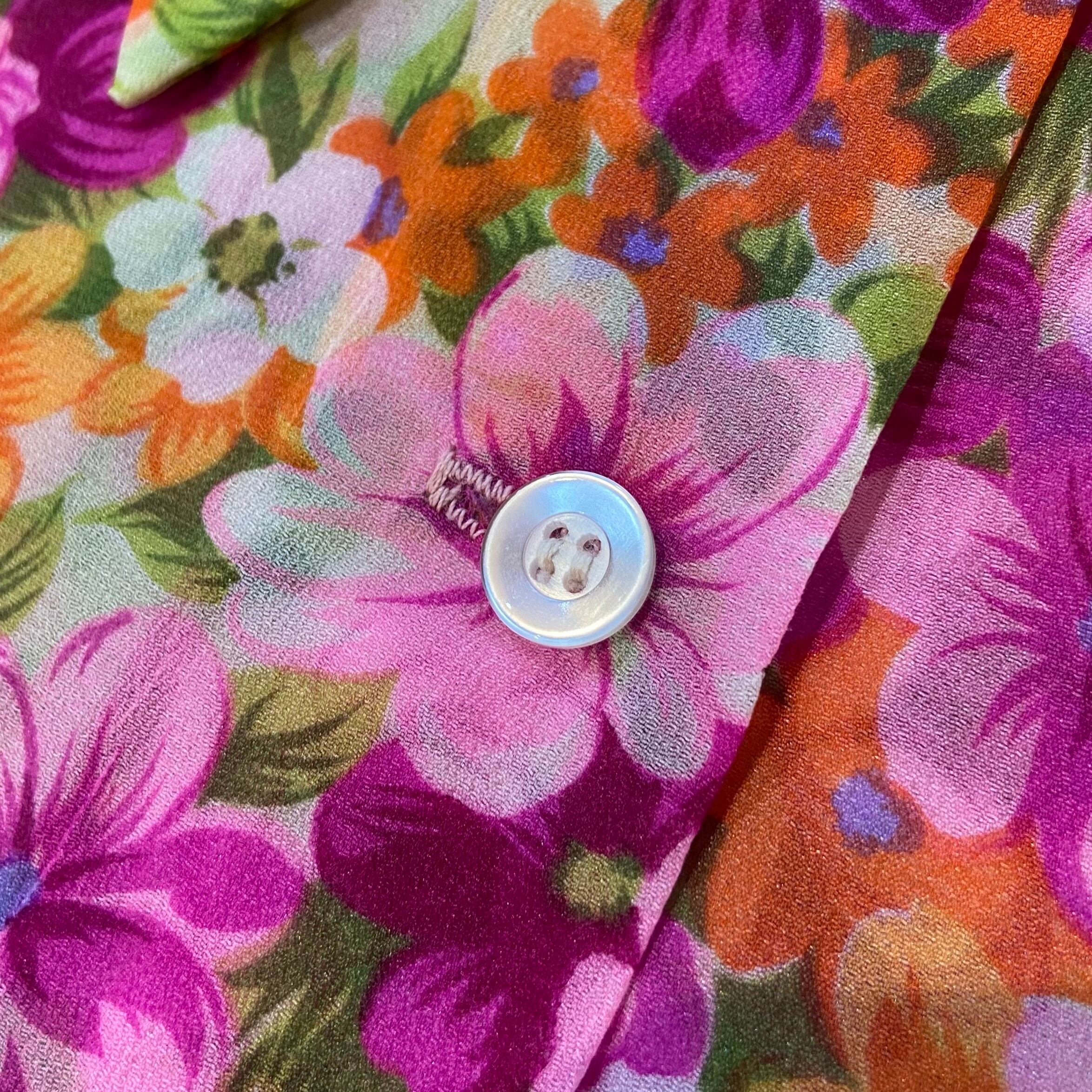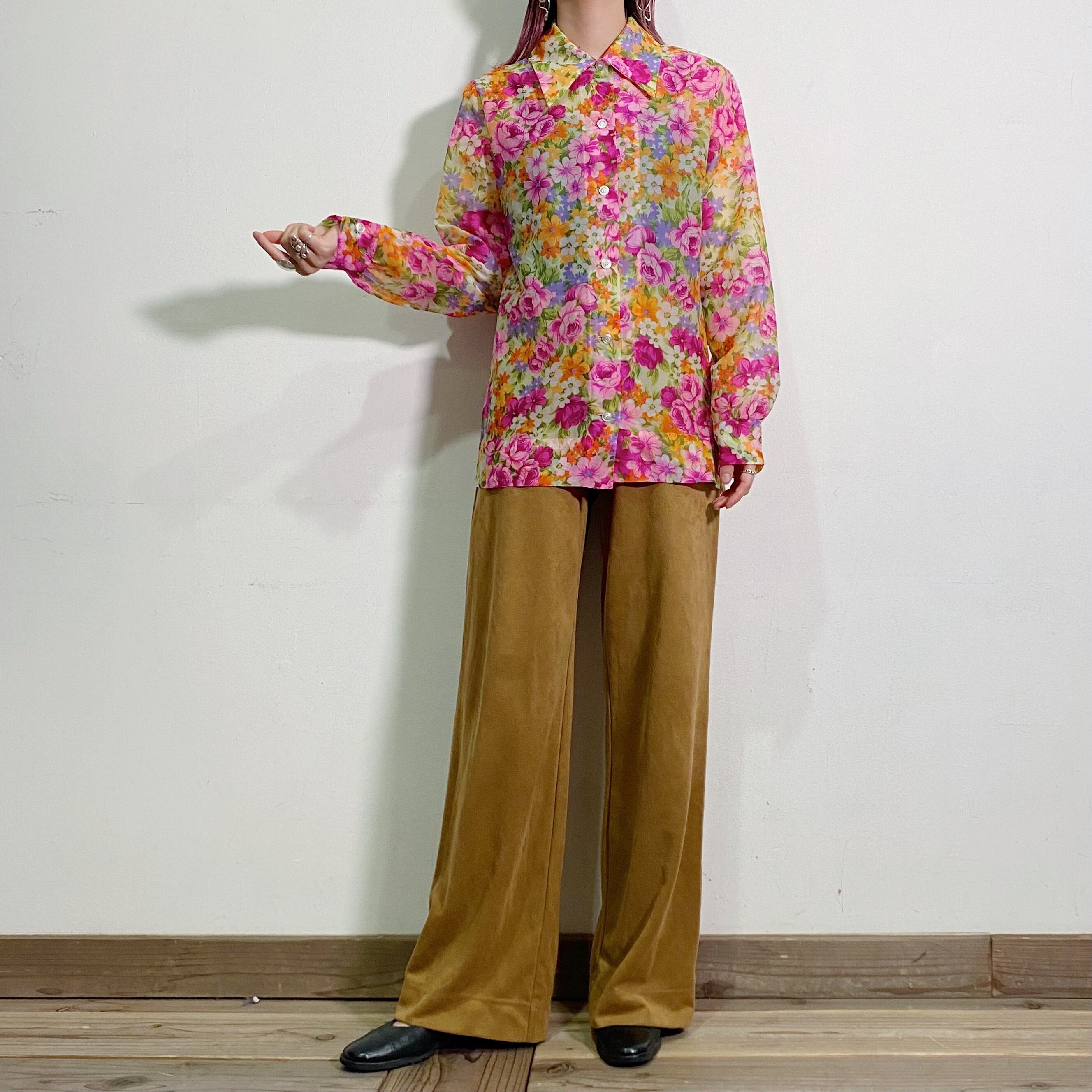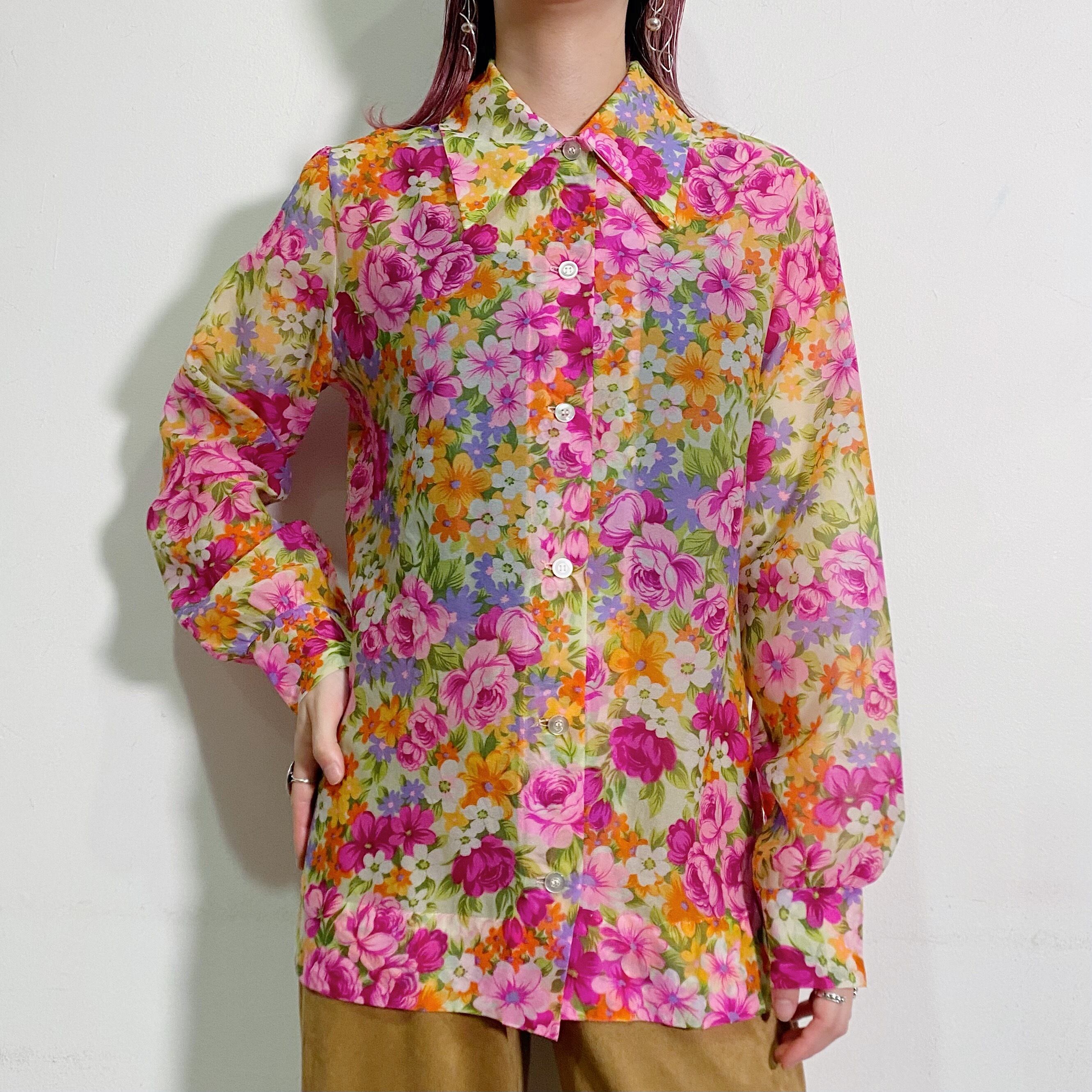 ハッピーな色合いのお花ぎっしりなプリントなのに、すけすけ素材なところが珍しくって最高!