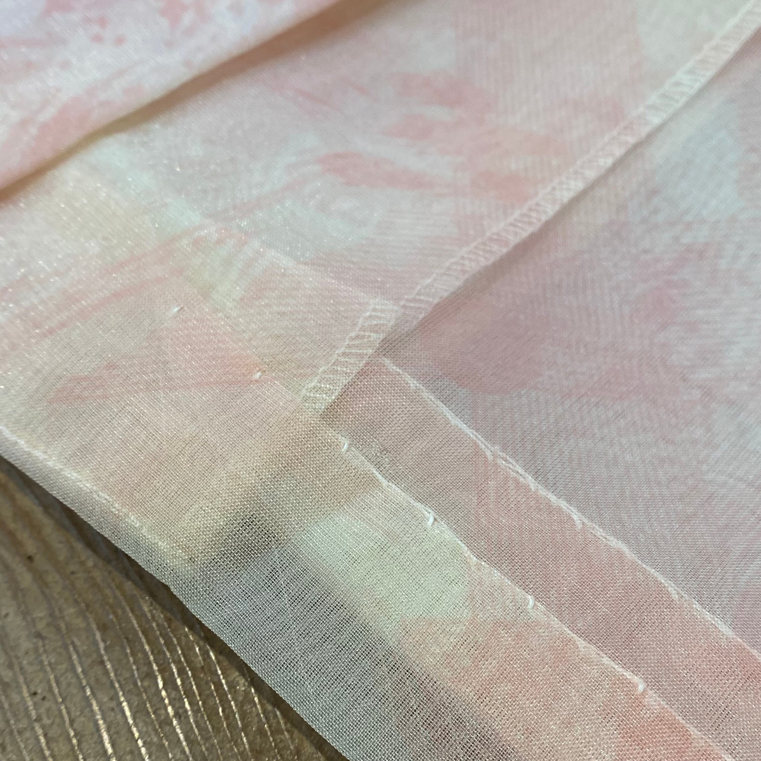 ブラシを走らせたような抽象的なプリントの、サーモンカラーがかわいいシアーシャツです。