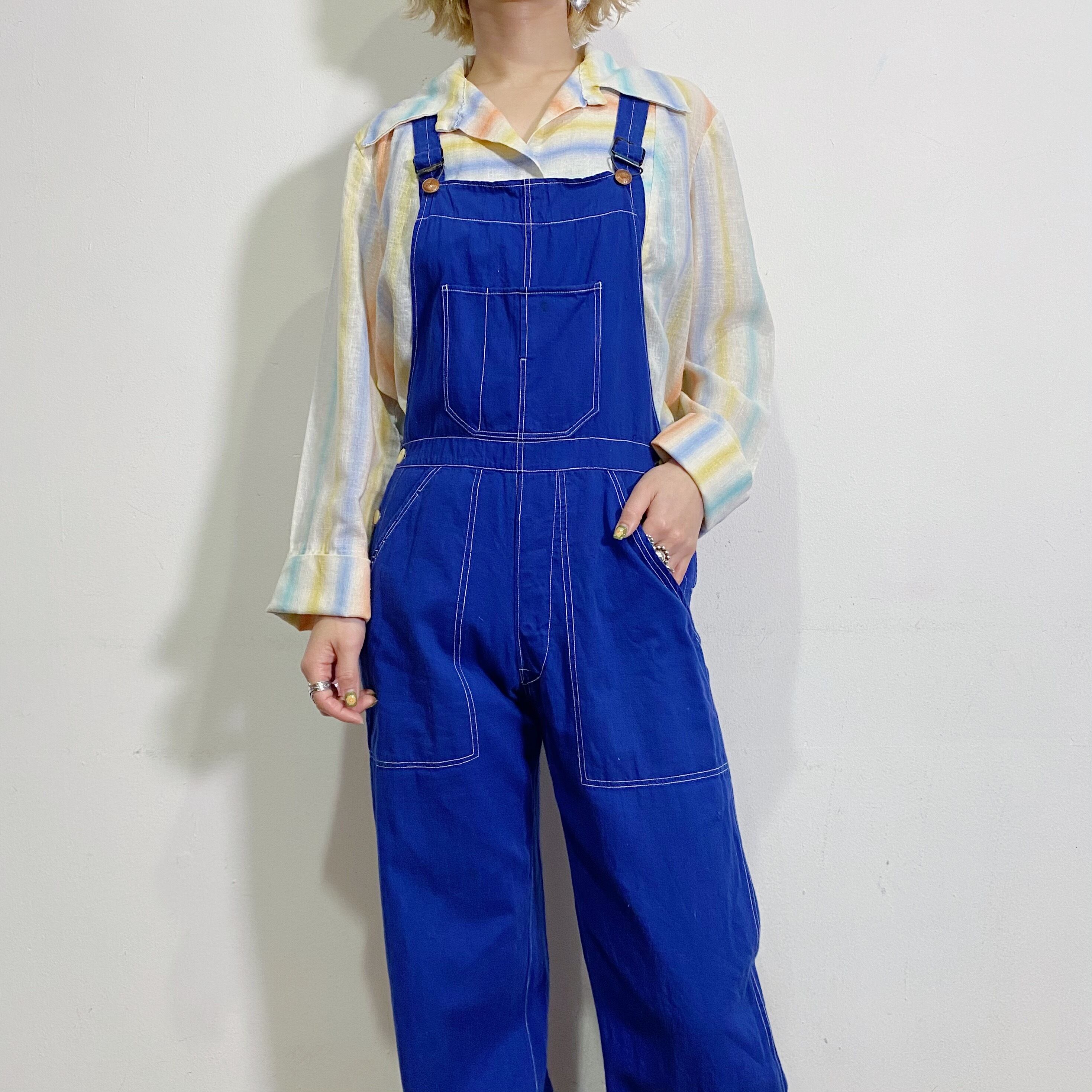 ブルーカラーにホワイトステッチが可愛い70年代のオーバーオールです。
