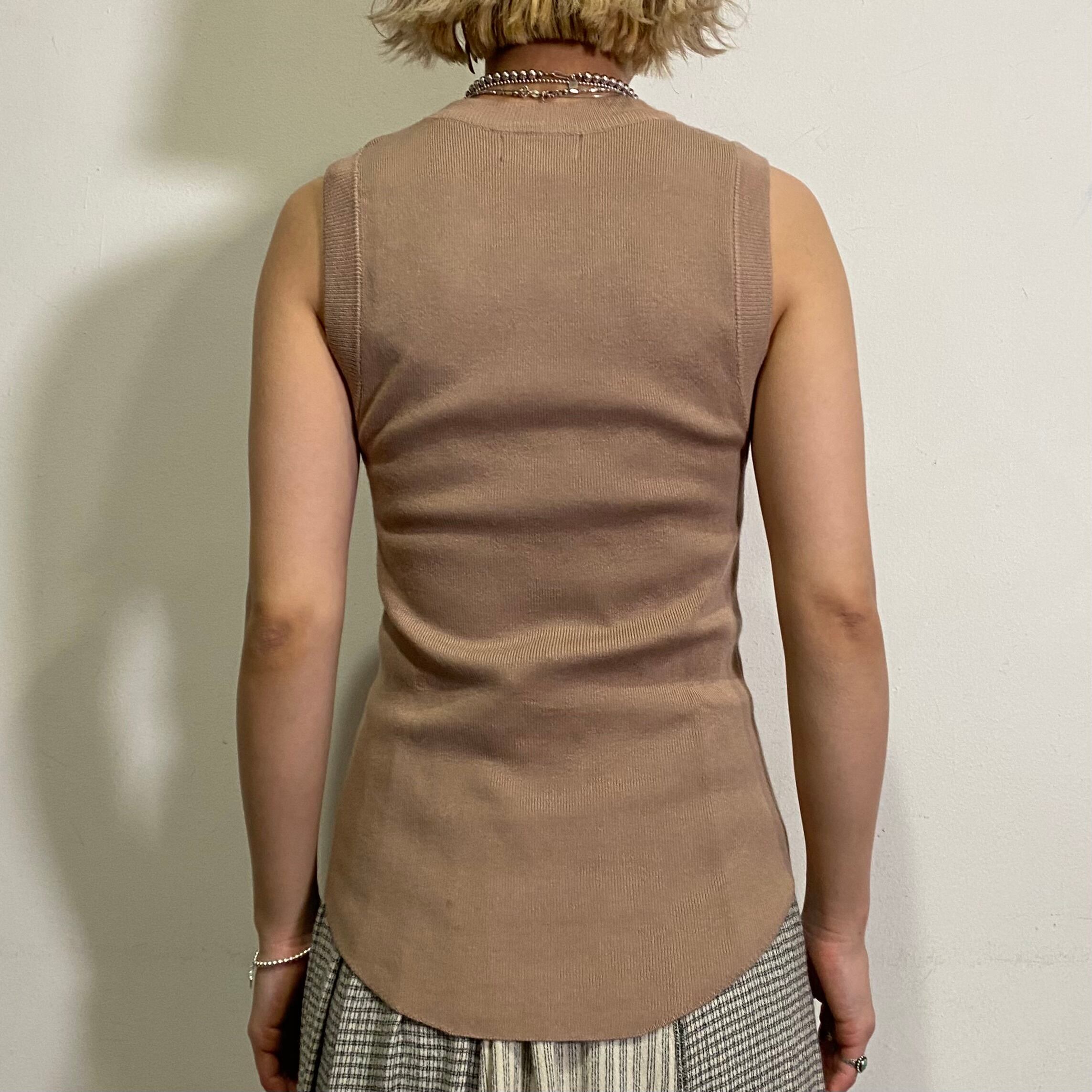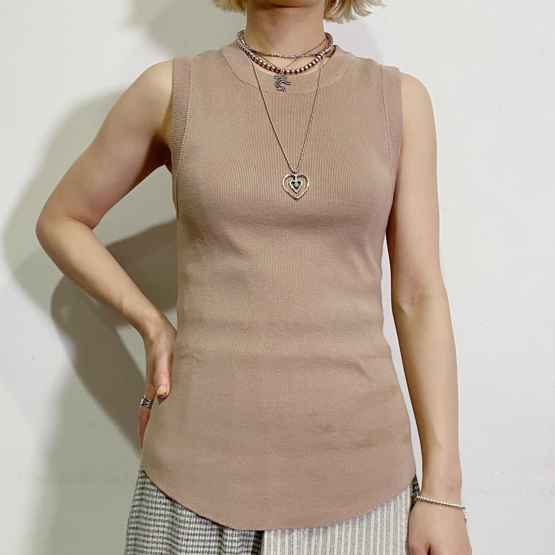ベージュカラーで大変使い勝手のいい、ノースリーブトップスです。