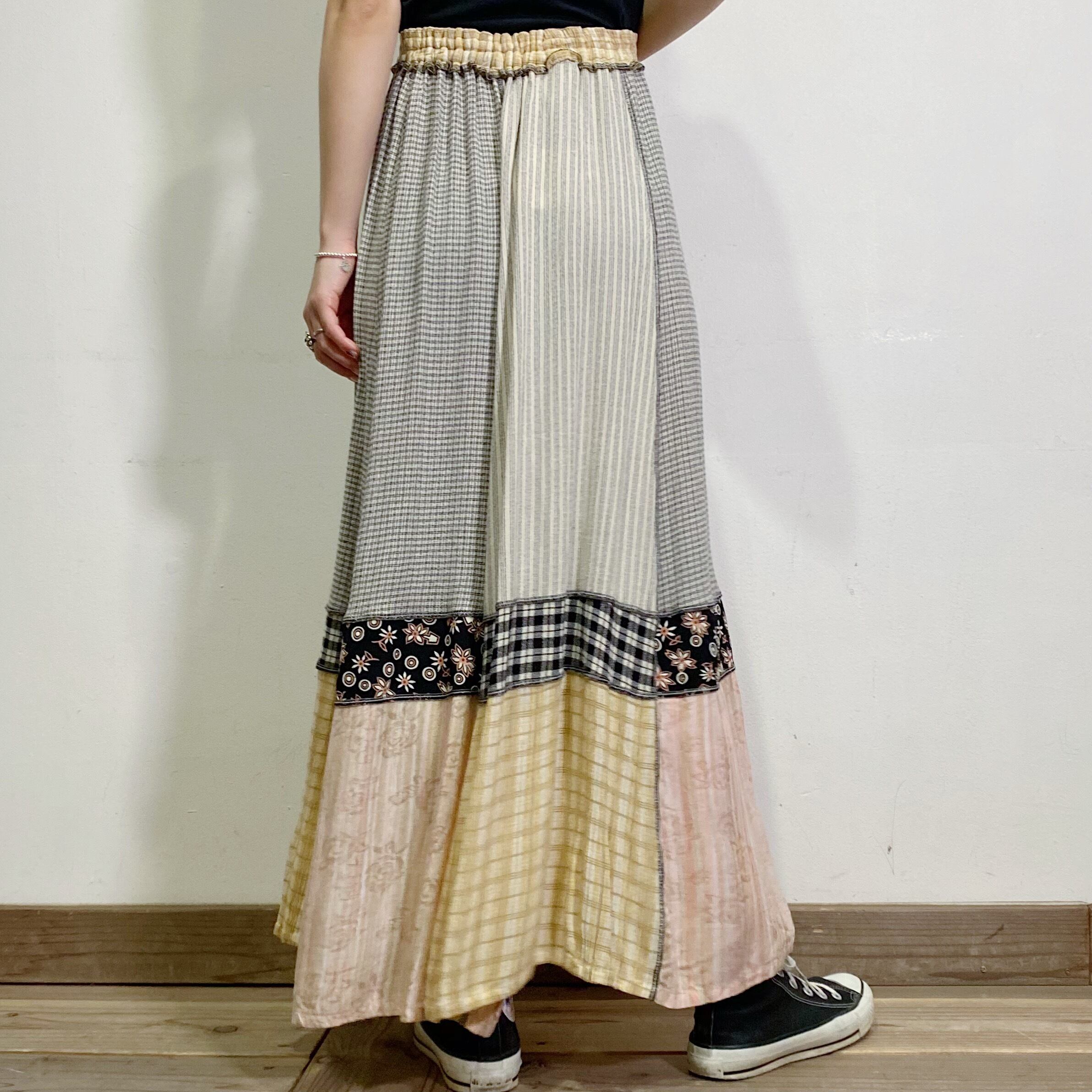 いろんな柄のリアルパッチワークが可愛い、90年代のロングスカートです。