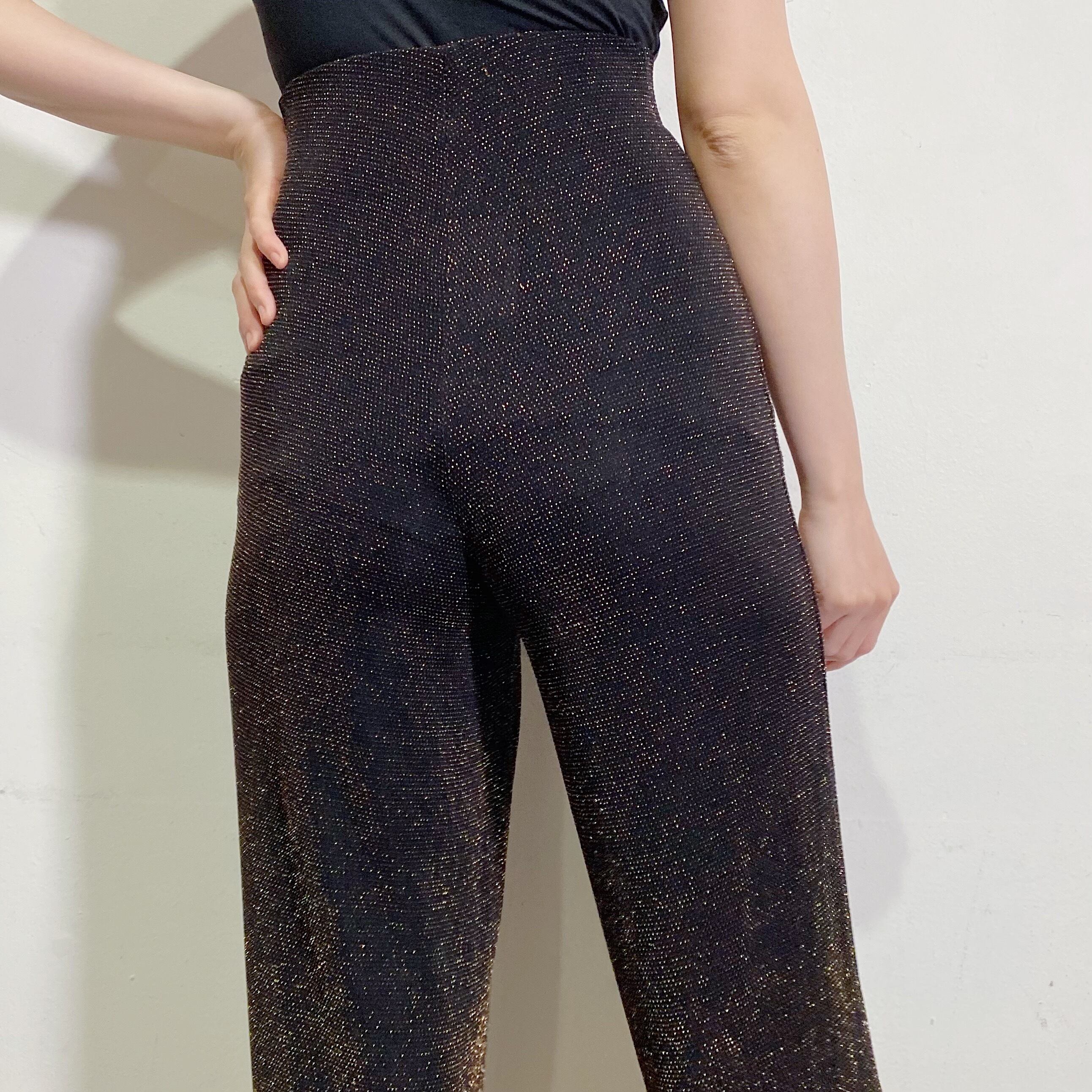 さりげなくキラッと光るゴールドのラメ糸が可愛い、ワイドパンツです。