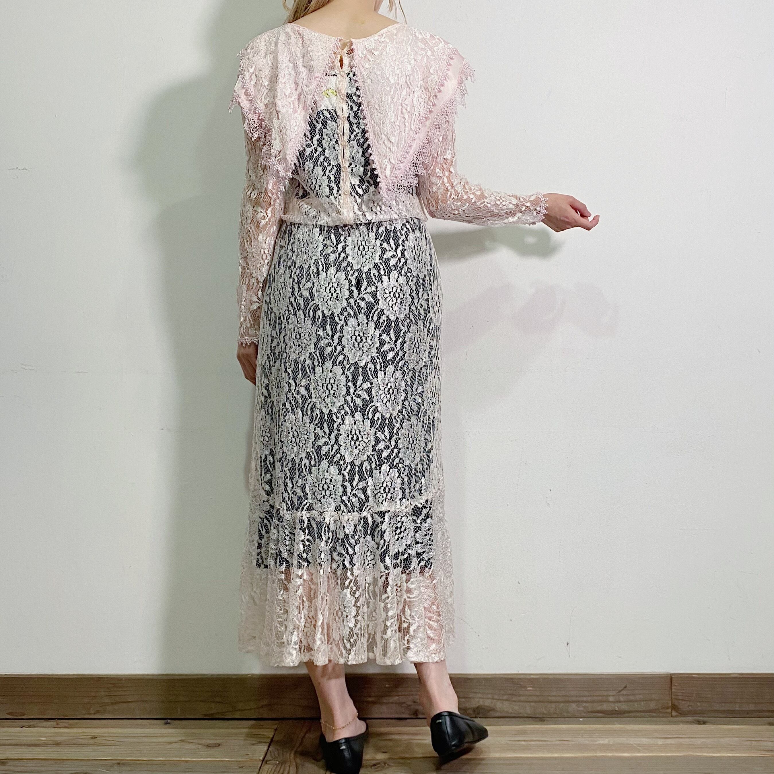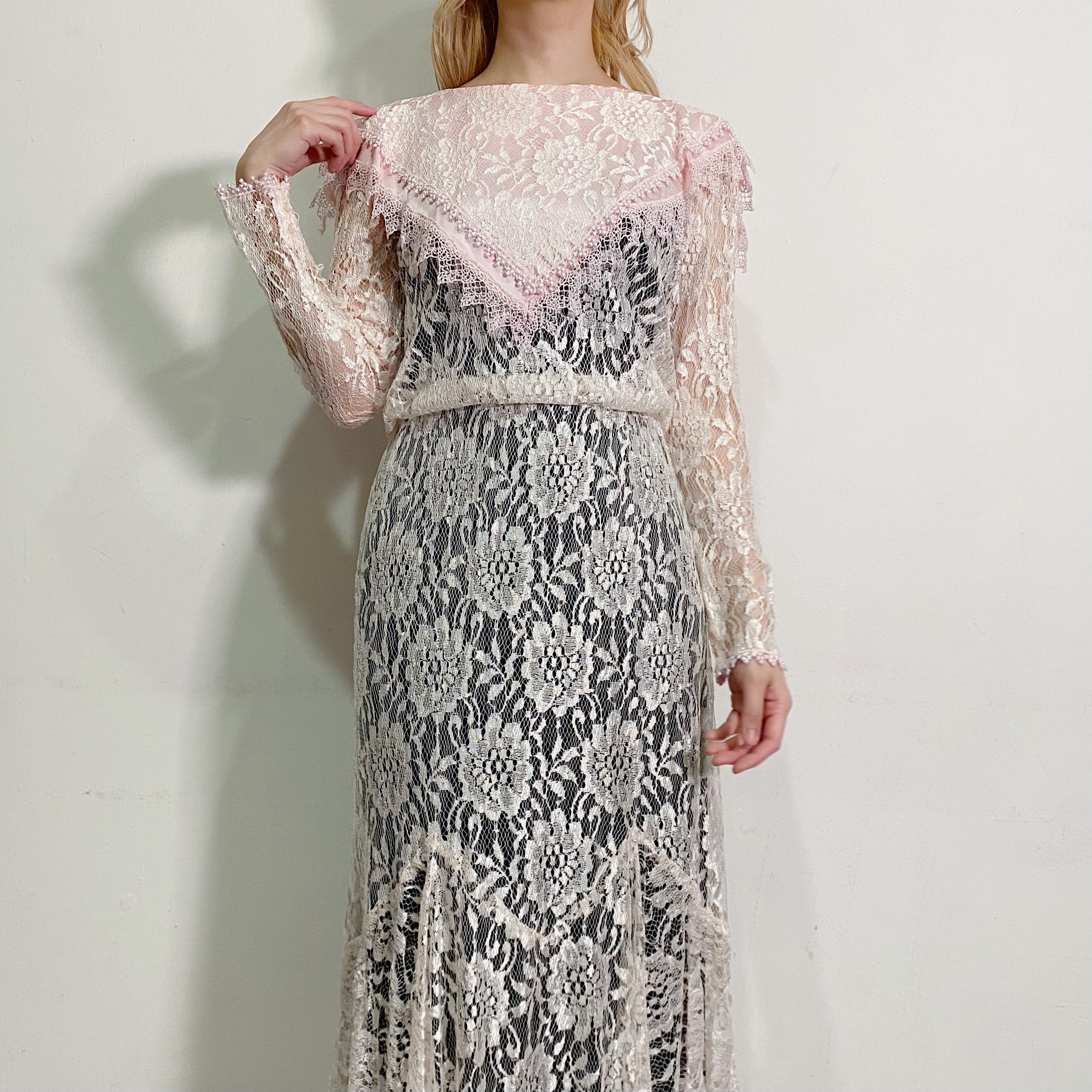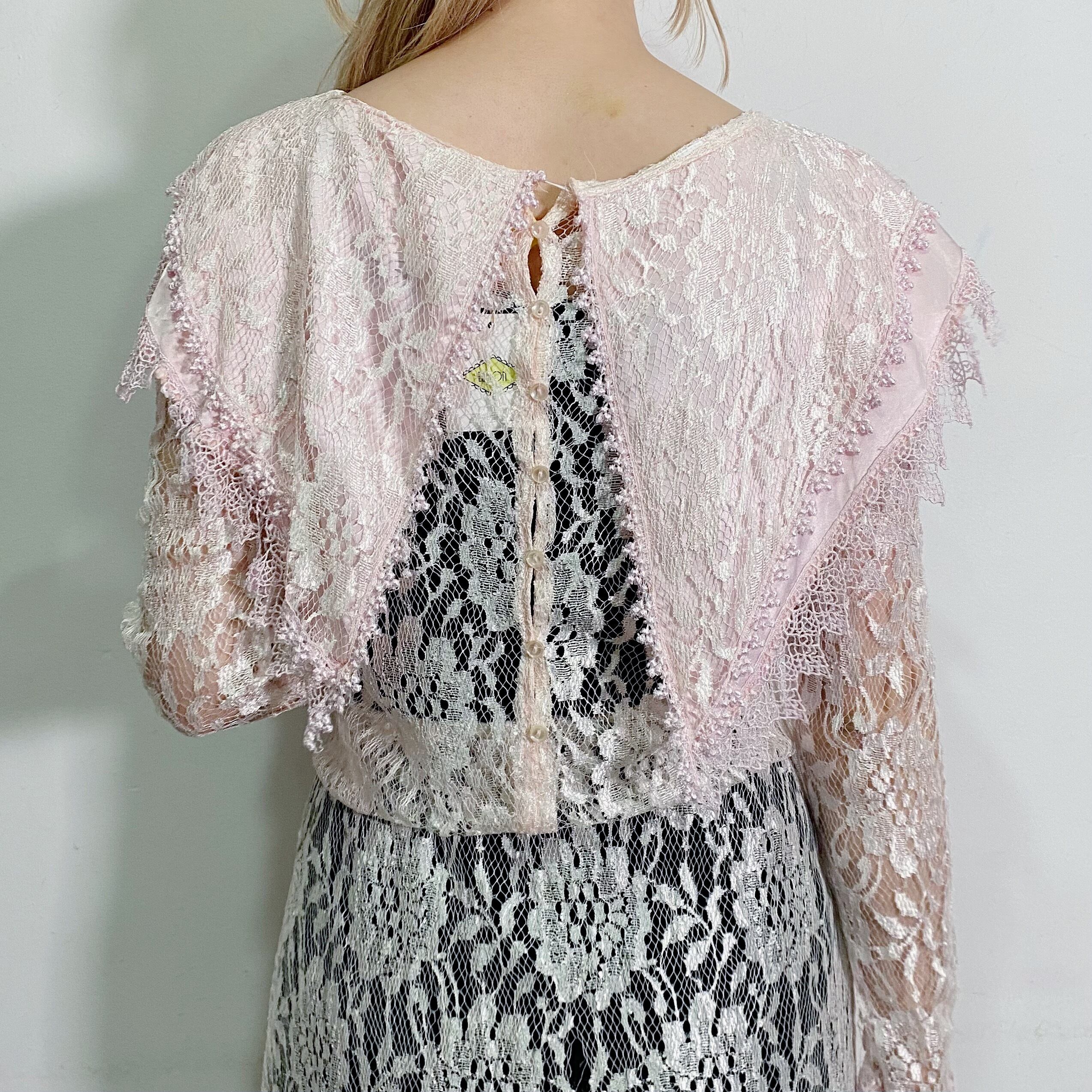 大きな襟にレースの透け感がとってもかわいい、80年代のワンピースです。