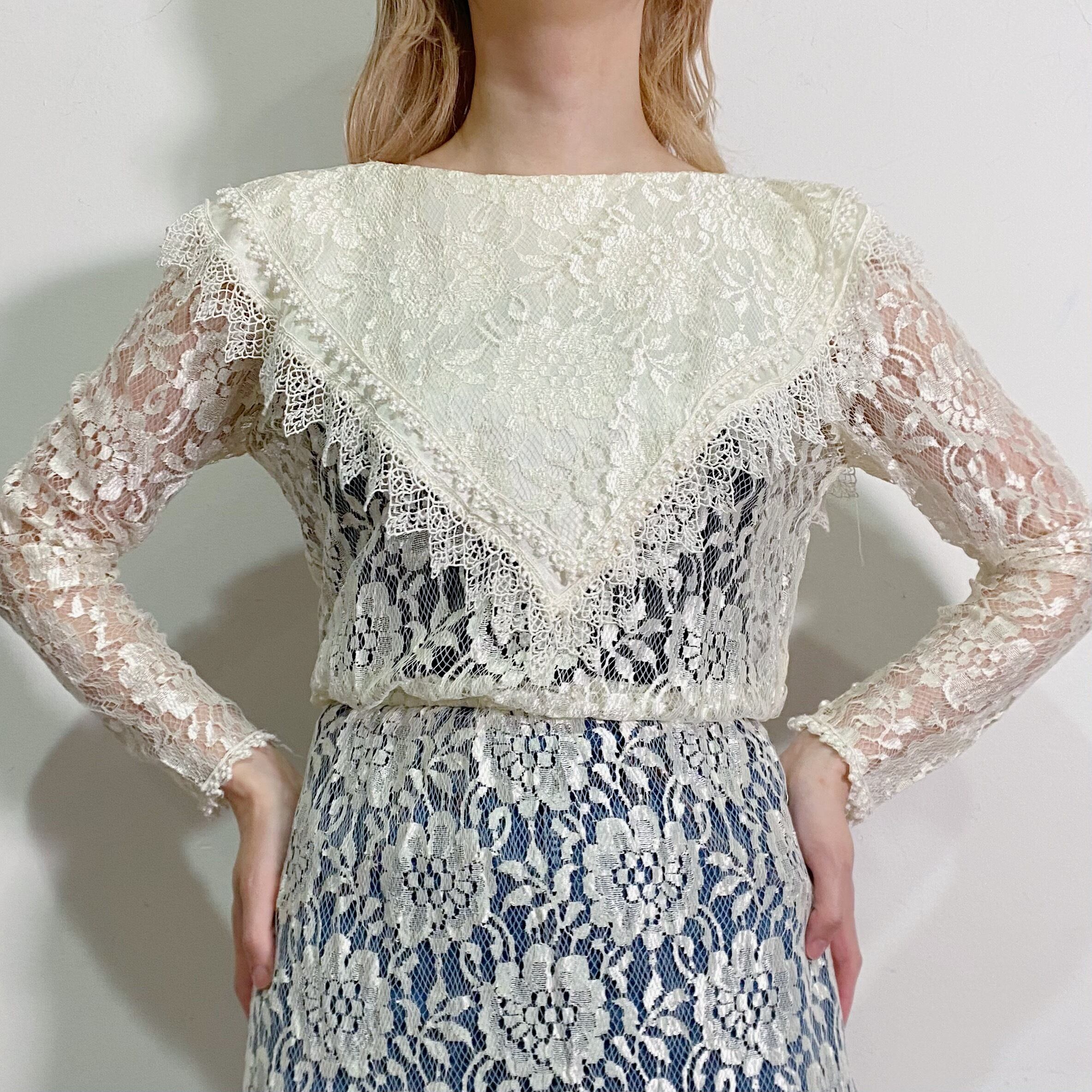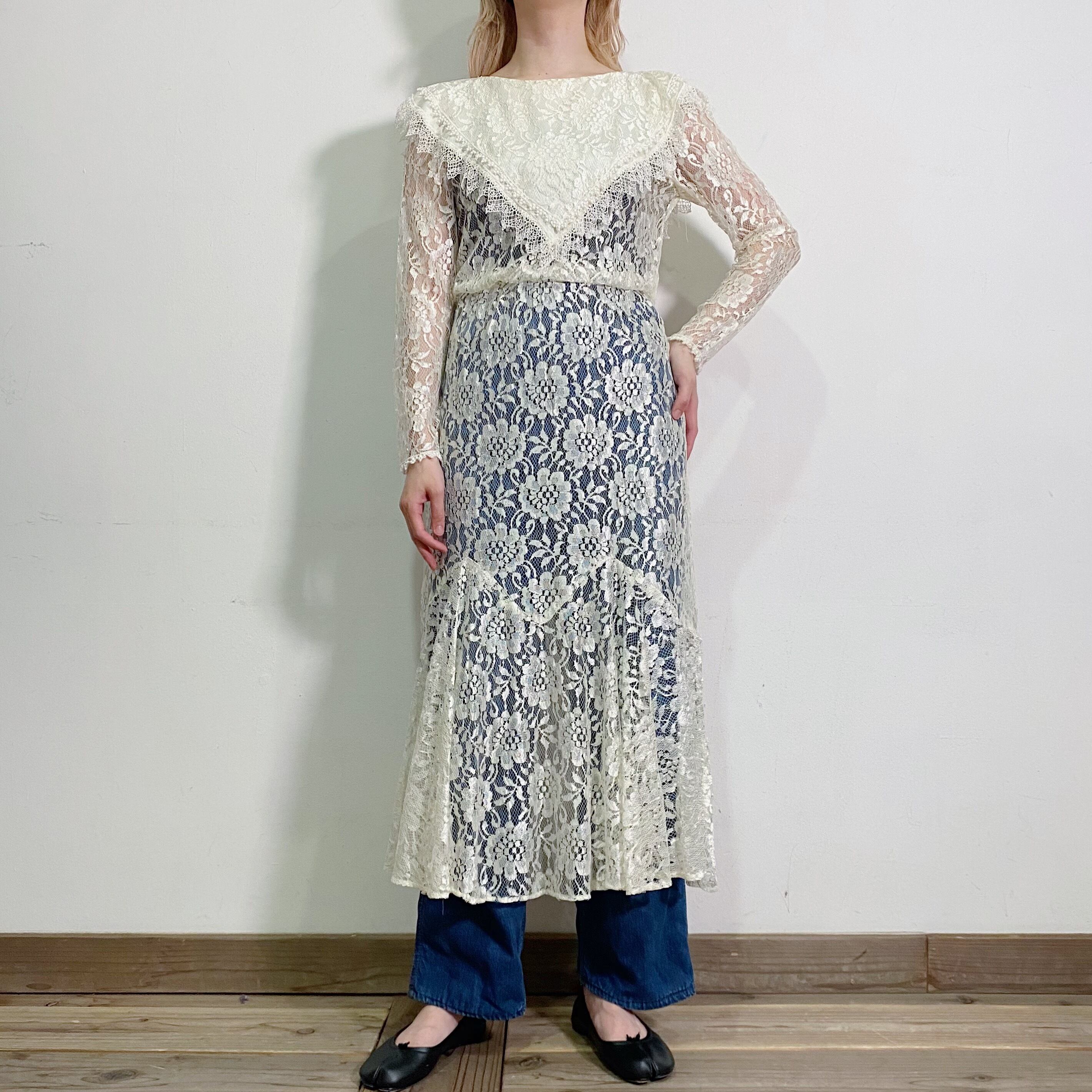 大きな襟にレースの透け感がとってもかわいい、80年代のワンピースです。