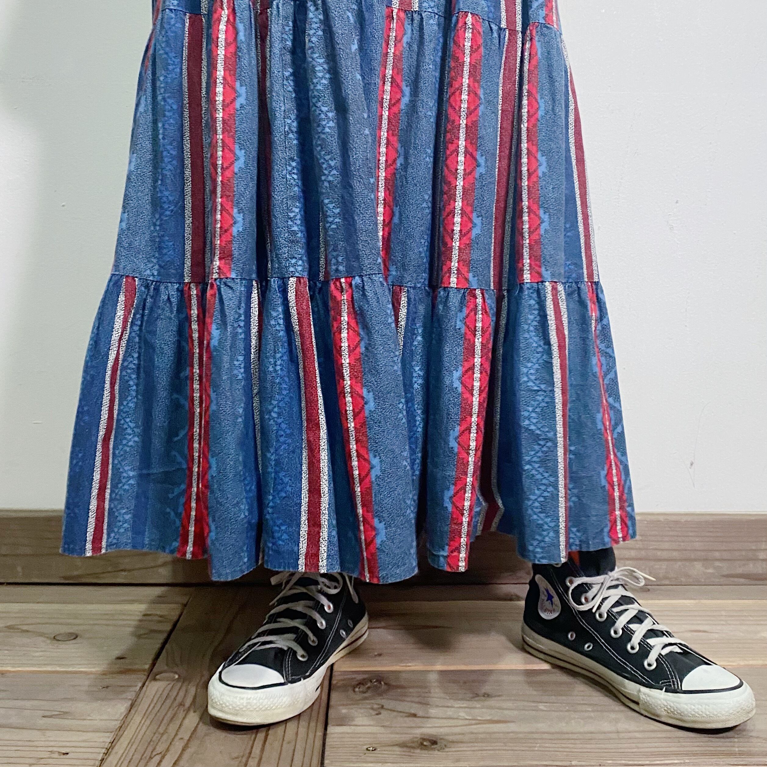 ネイビーとレッドの組み合わせが可愛い、ネイティブ柄のスカートです。