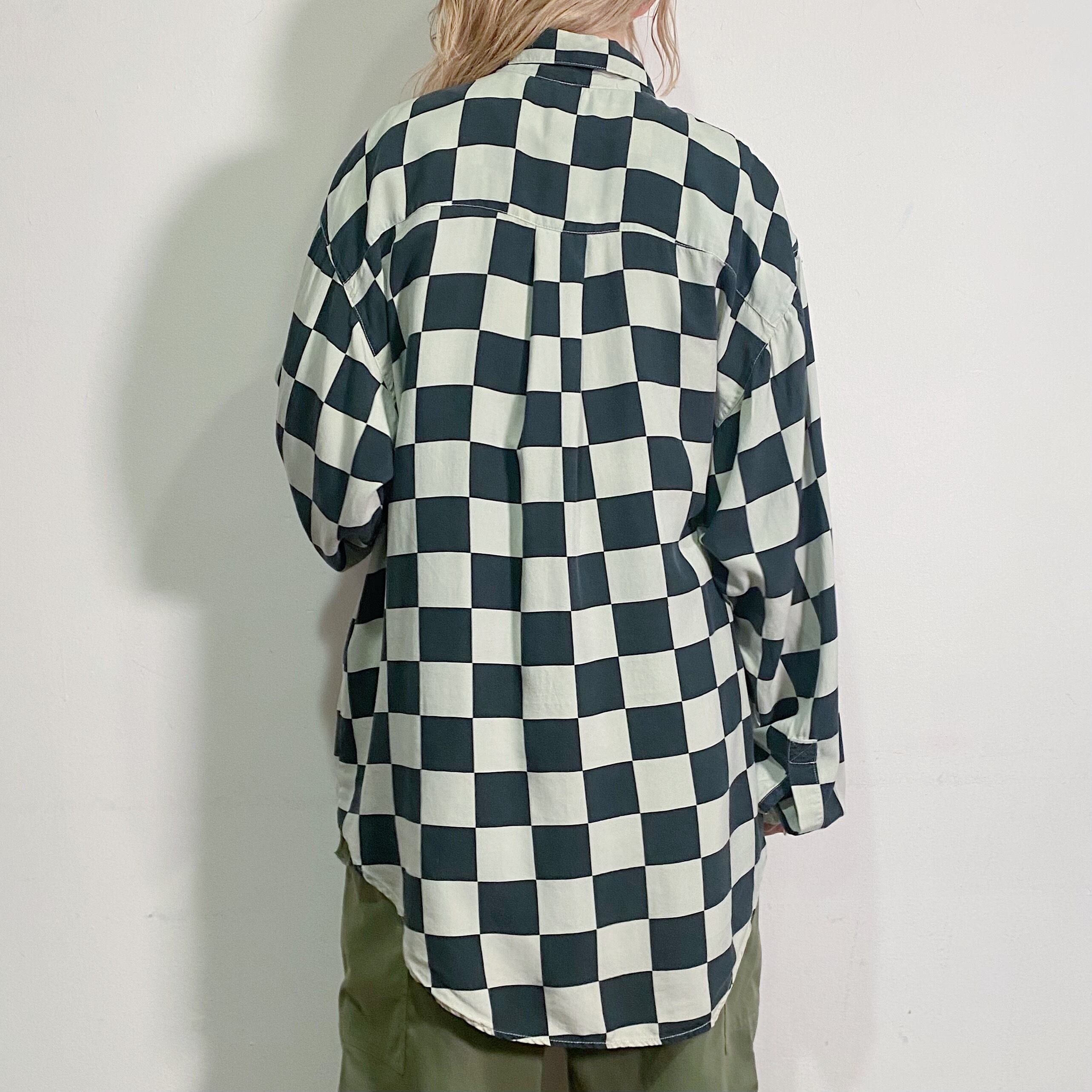 Block check silk shirt