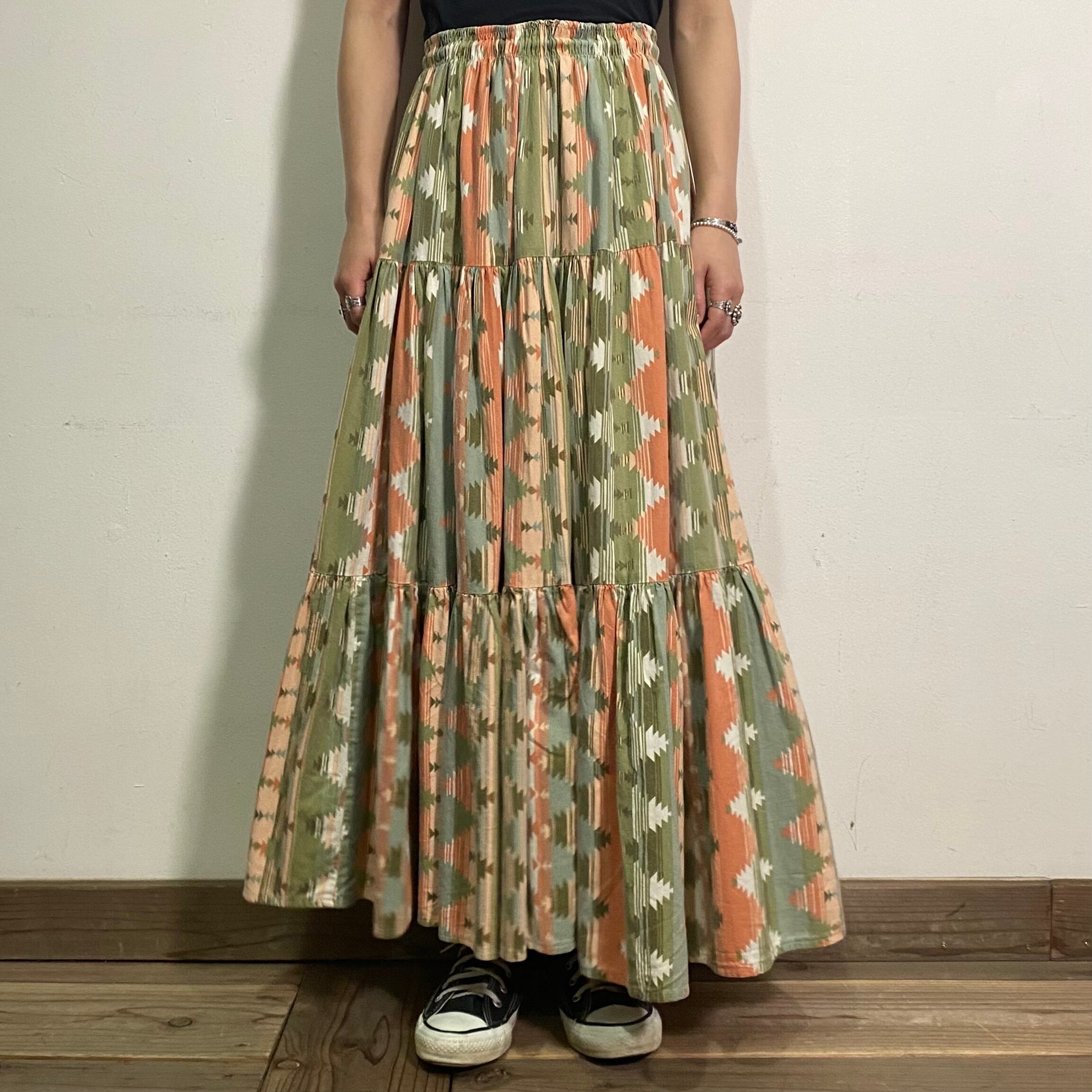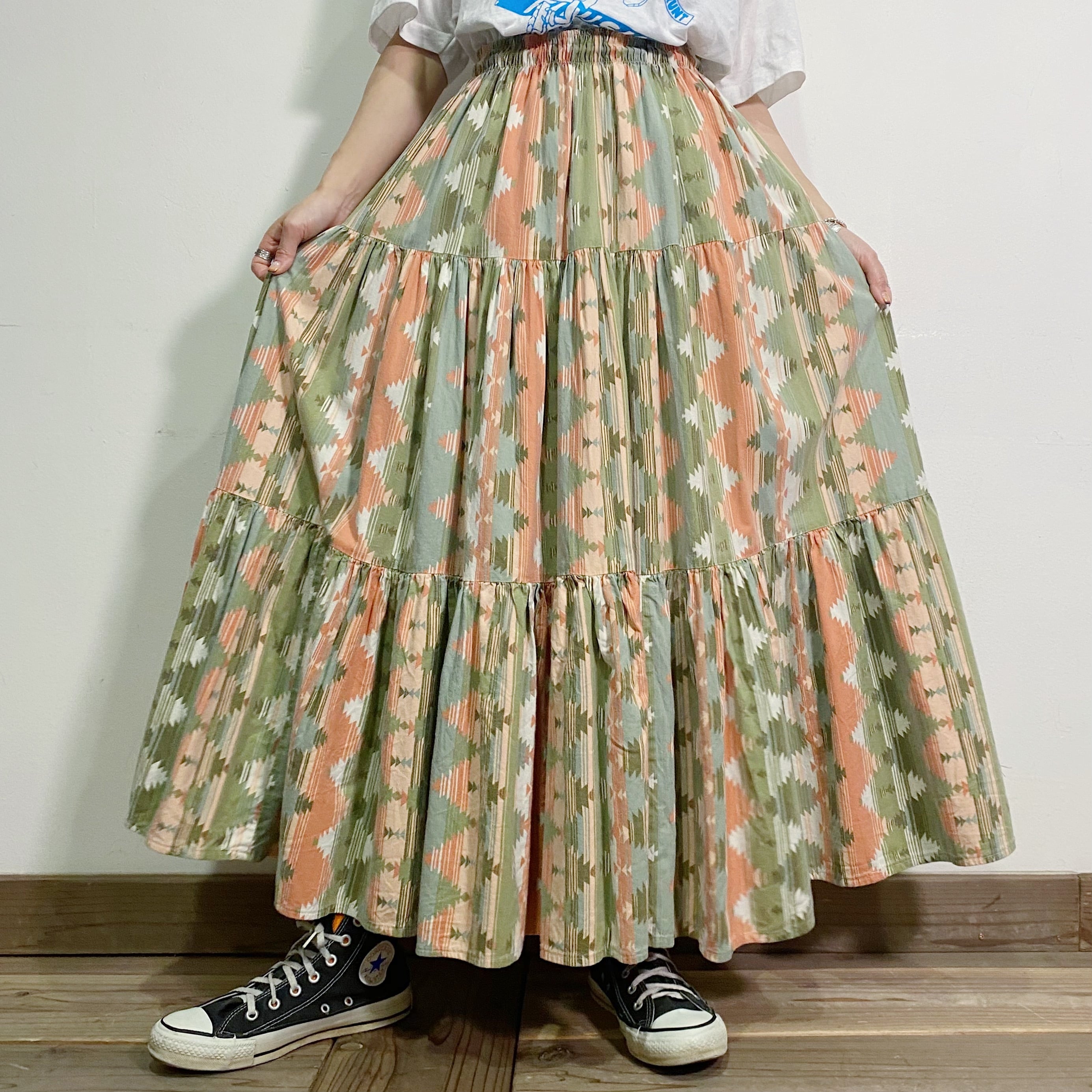 ネイティブ柄が可愛い90年代のロングスカートです。