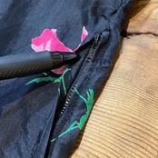 軽度のキズやダメージを裏から接着芯で塞いだ跡が見受けられます。