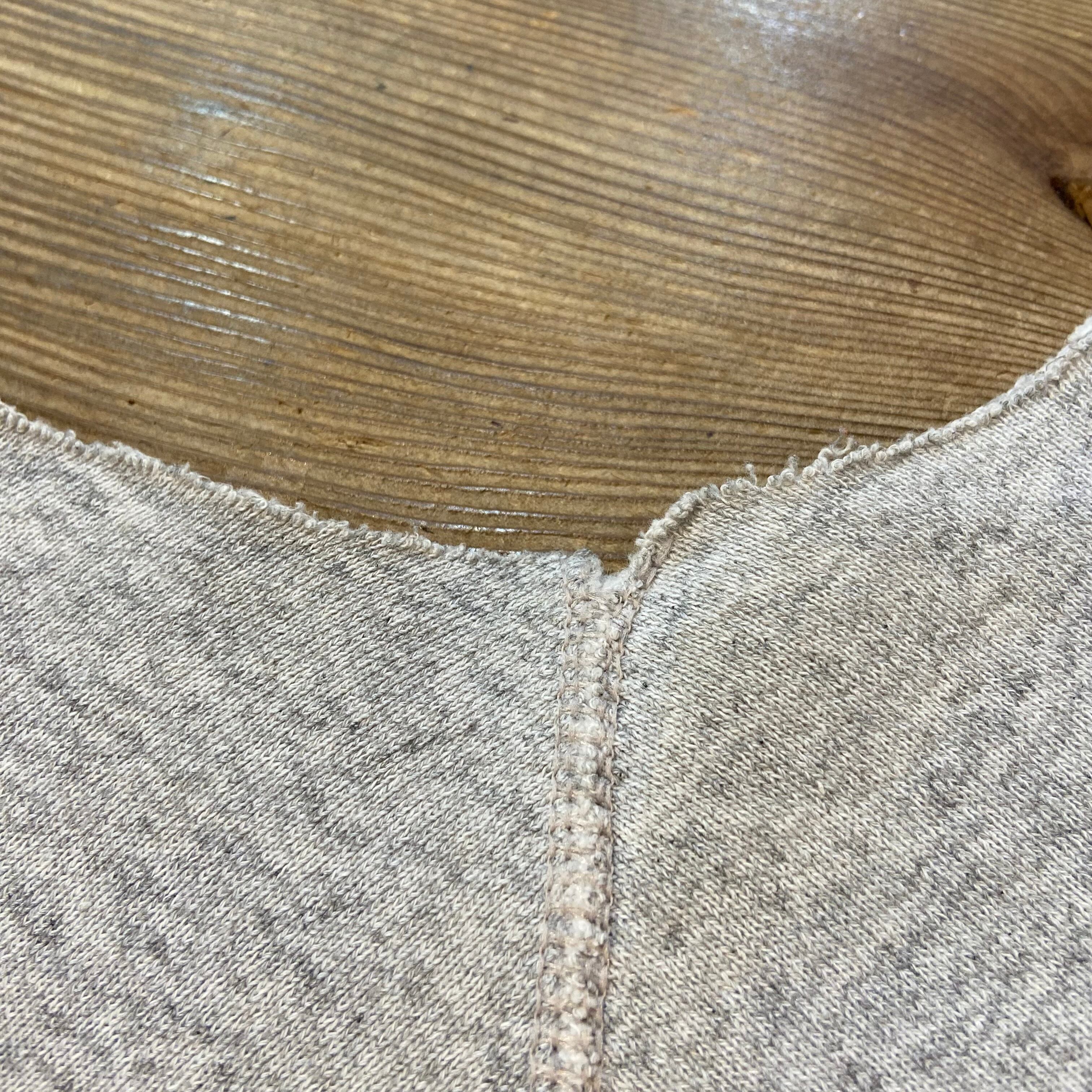 短めの着丈に大き目にカットされた首回りで重ね着にぴったりな一枚。