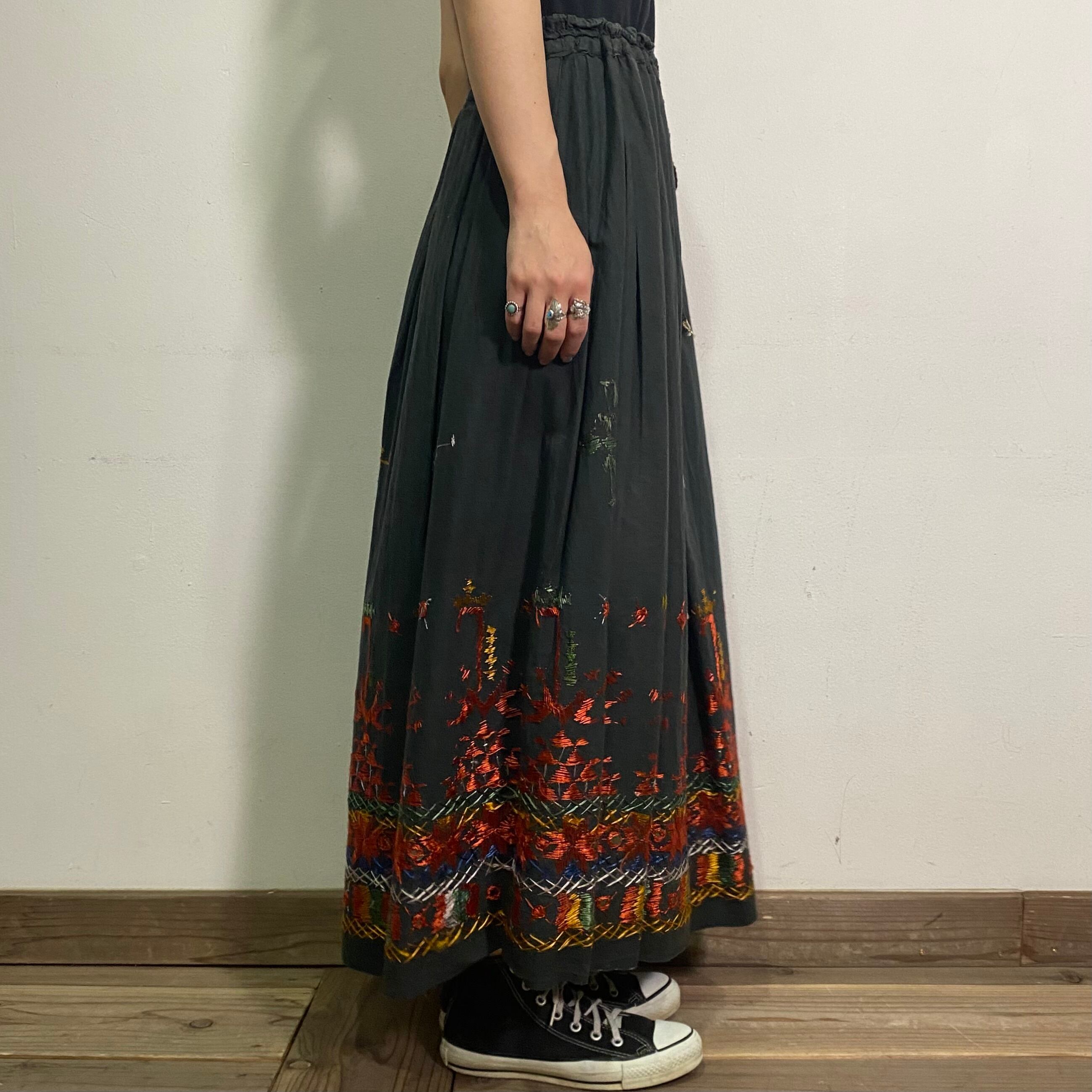 ブラックベースにカラフルな刺繍が映える、コットン地のスカートです。