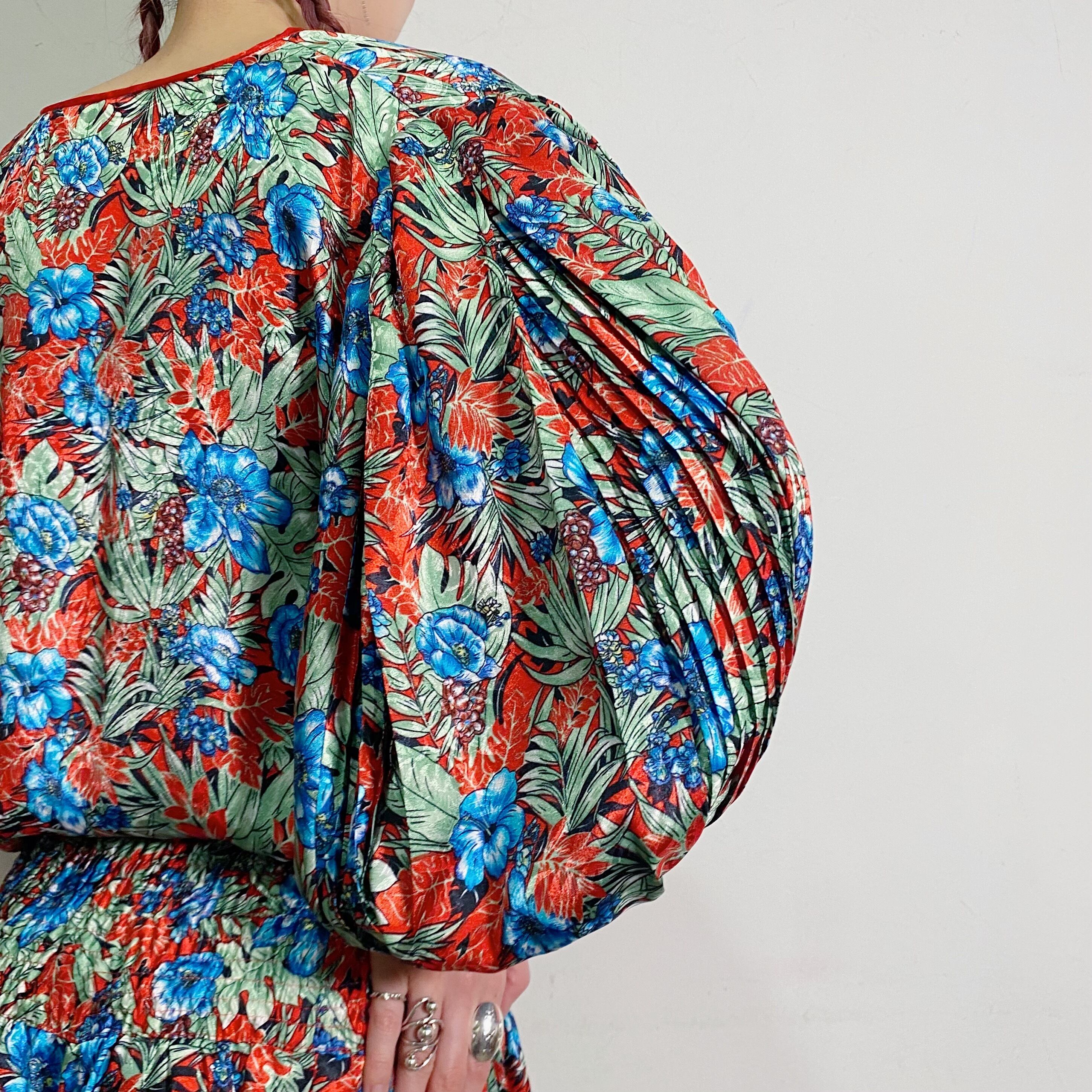 ボタニカルなテキスタイルに、プリーツの入ったぽわんとしたお袖がとってもキュート。