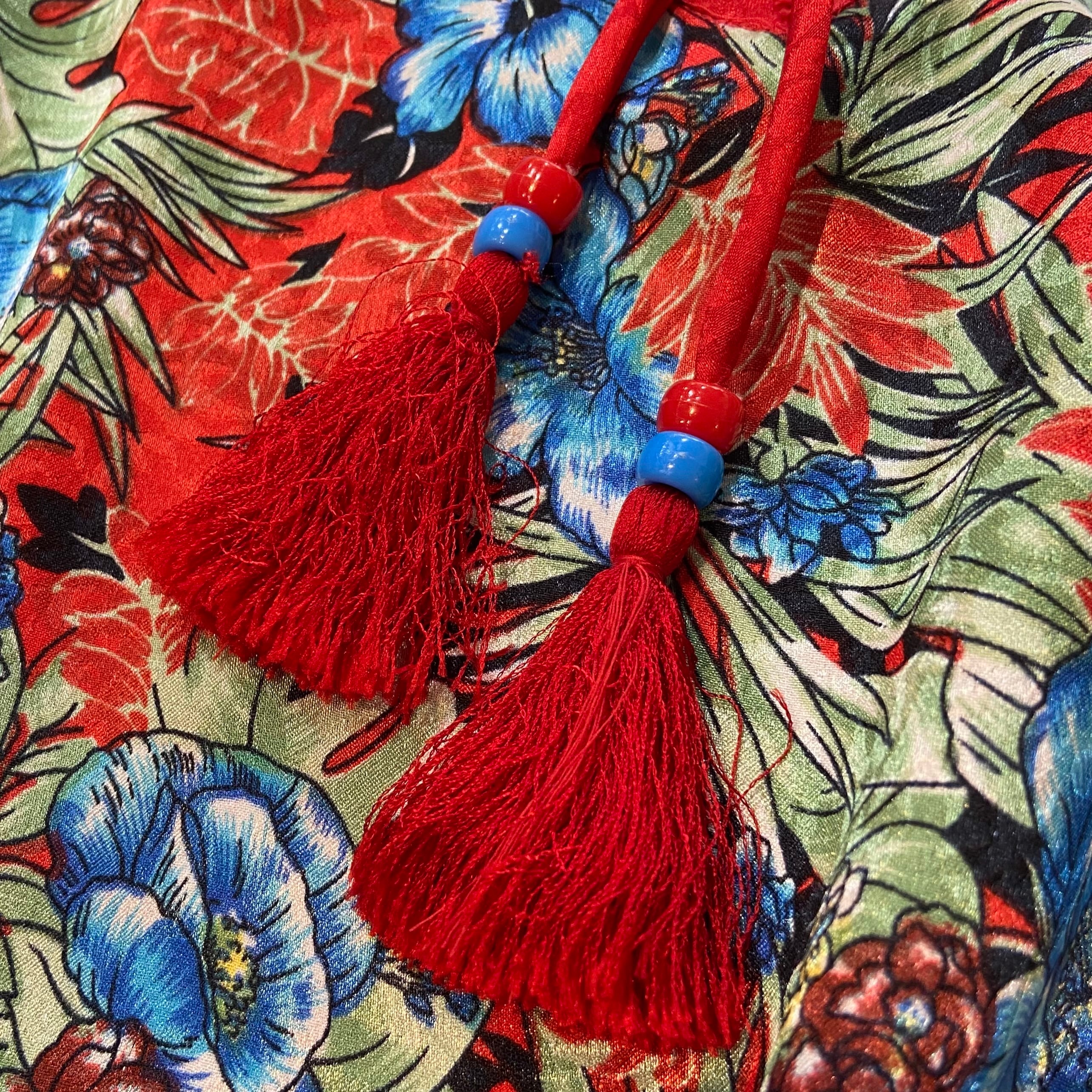 レッド×グリーン×ブルーの組み合わせが可愛い、80年代の“Diane Freis”のワンピースです。