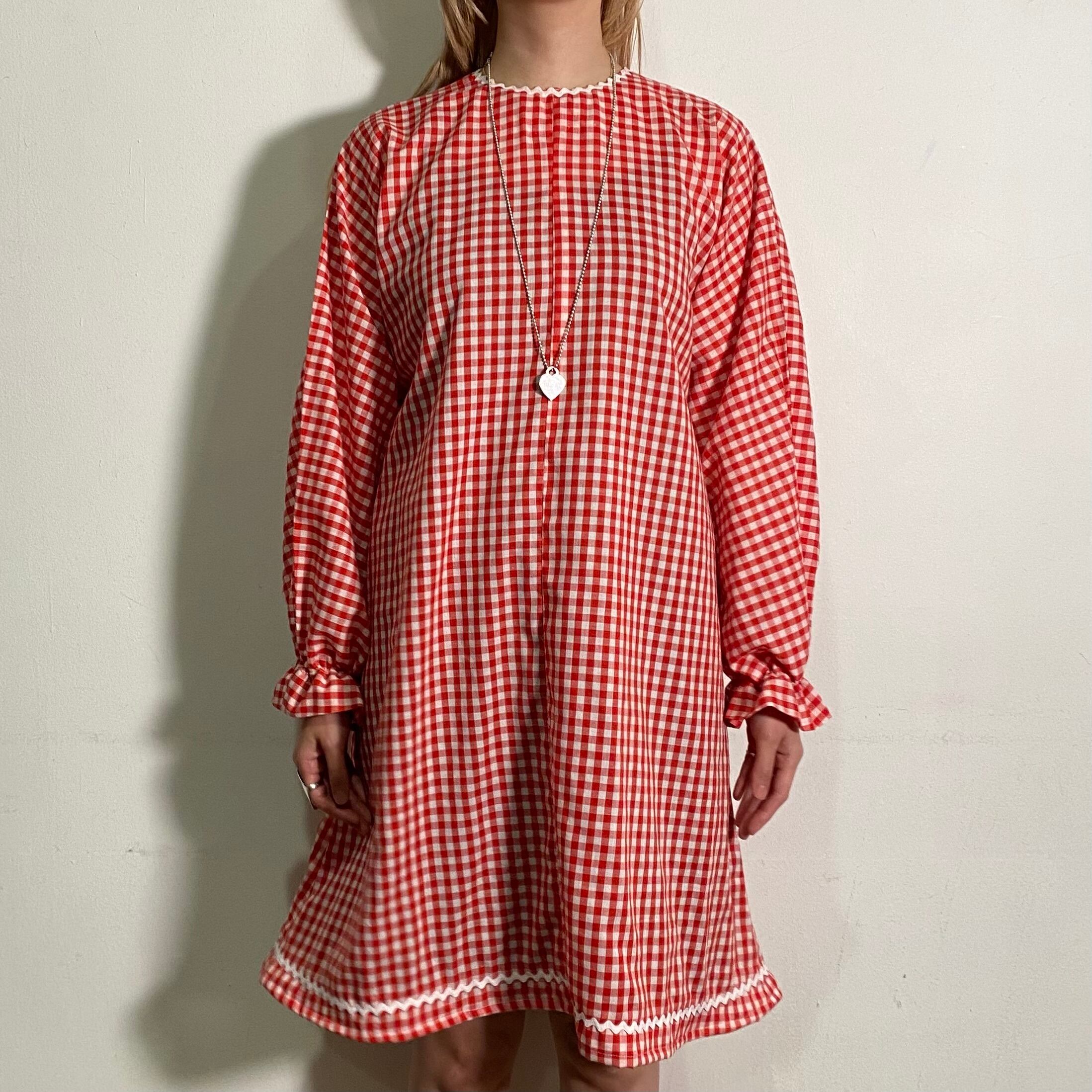 赤白ギンガムが可愛い、70年代のワンピースです。
