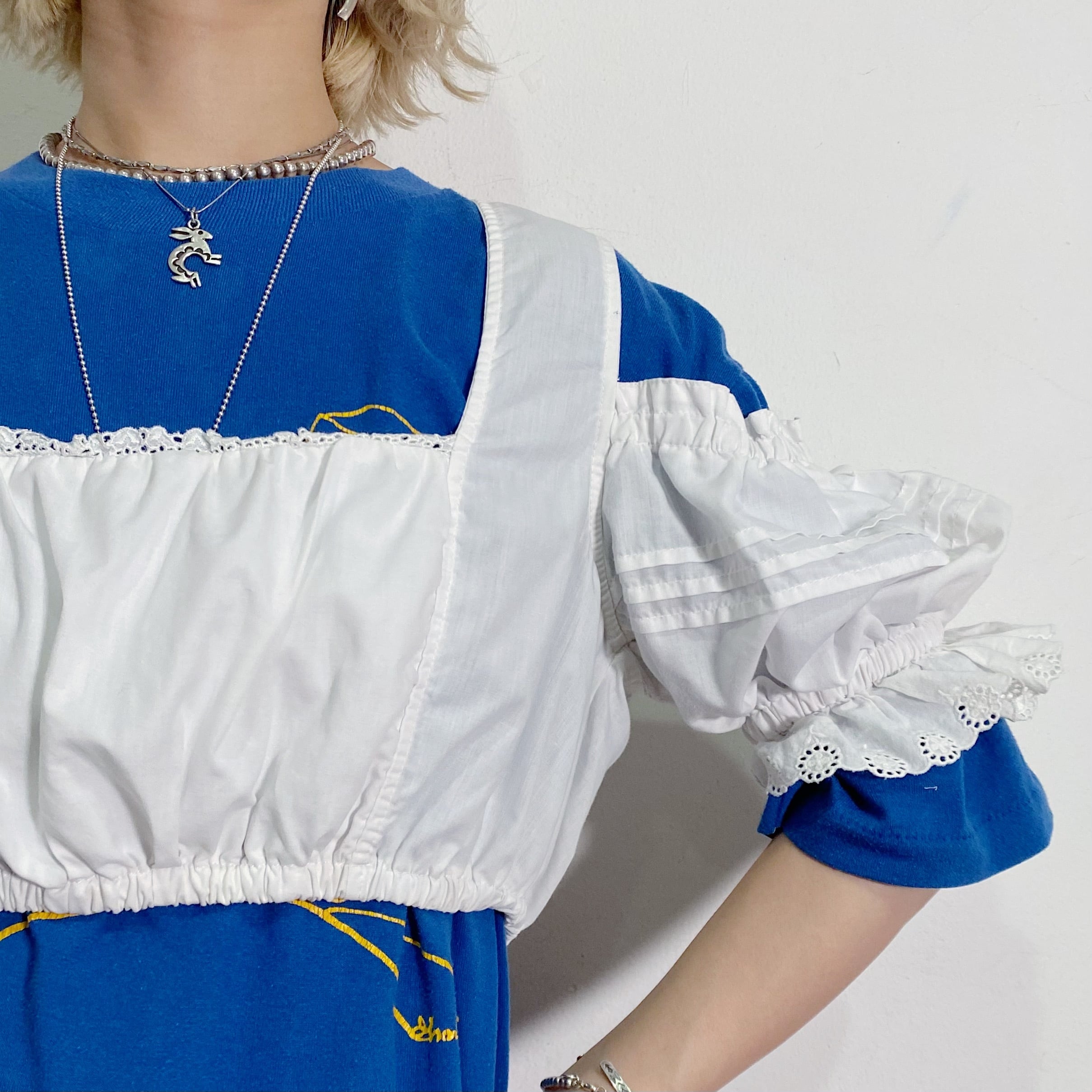 レース使いやぽわんとしたお袖、ショート丈なところなど可愛いポイントの多い一枚。